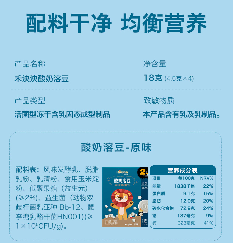 禾泱泱酸奶溶豆 高钙益生菌酸奶溶豆宝宝零食水果味宝宝冻干溶豆