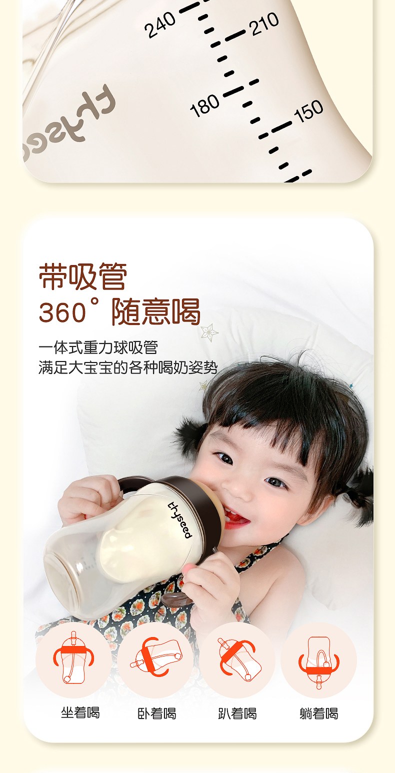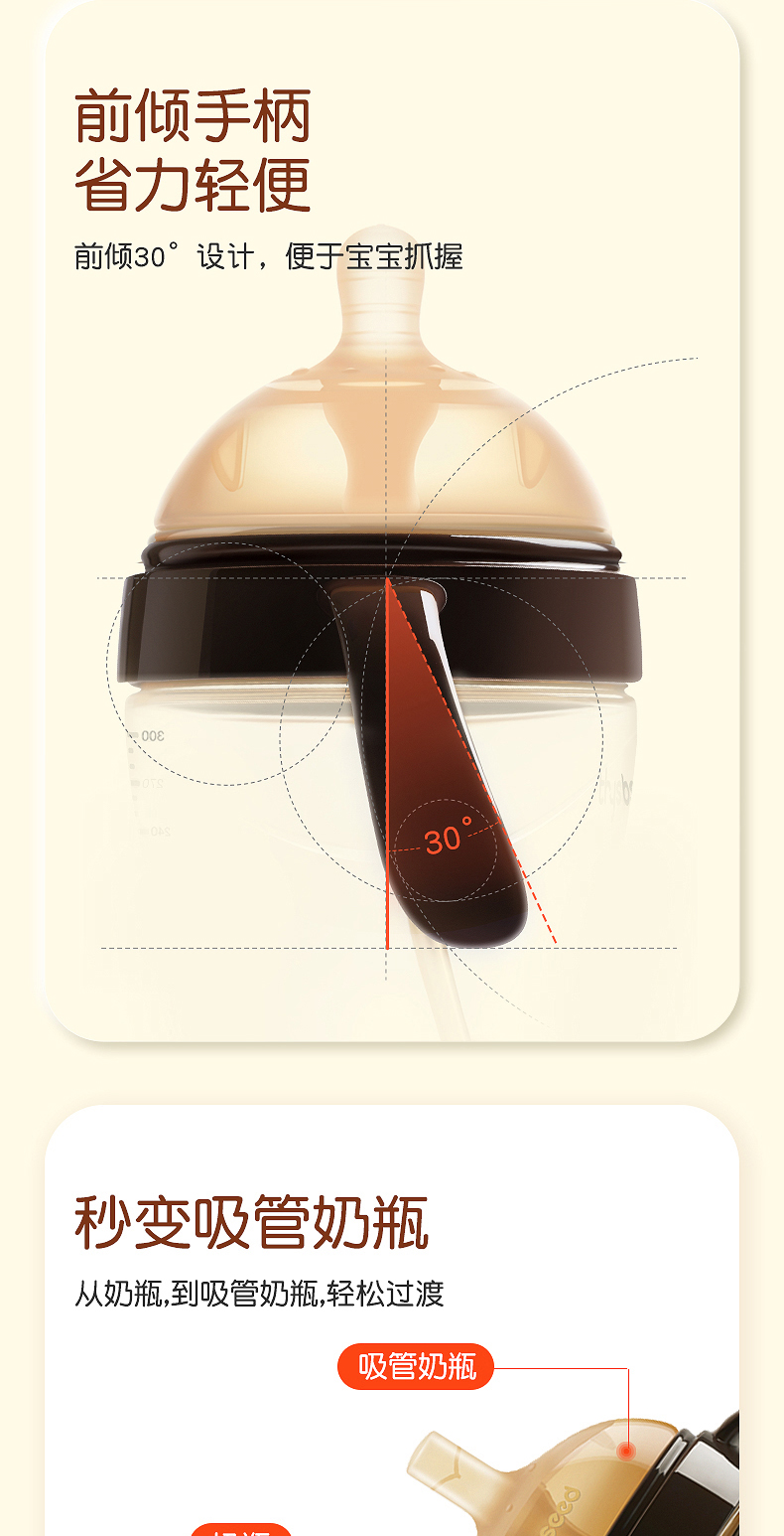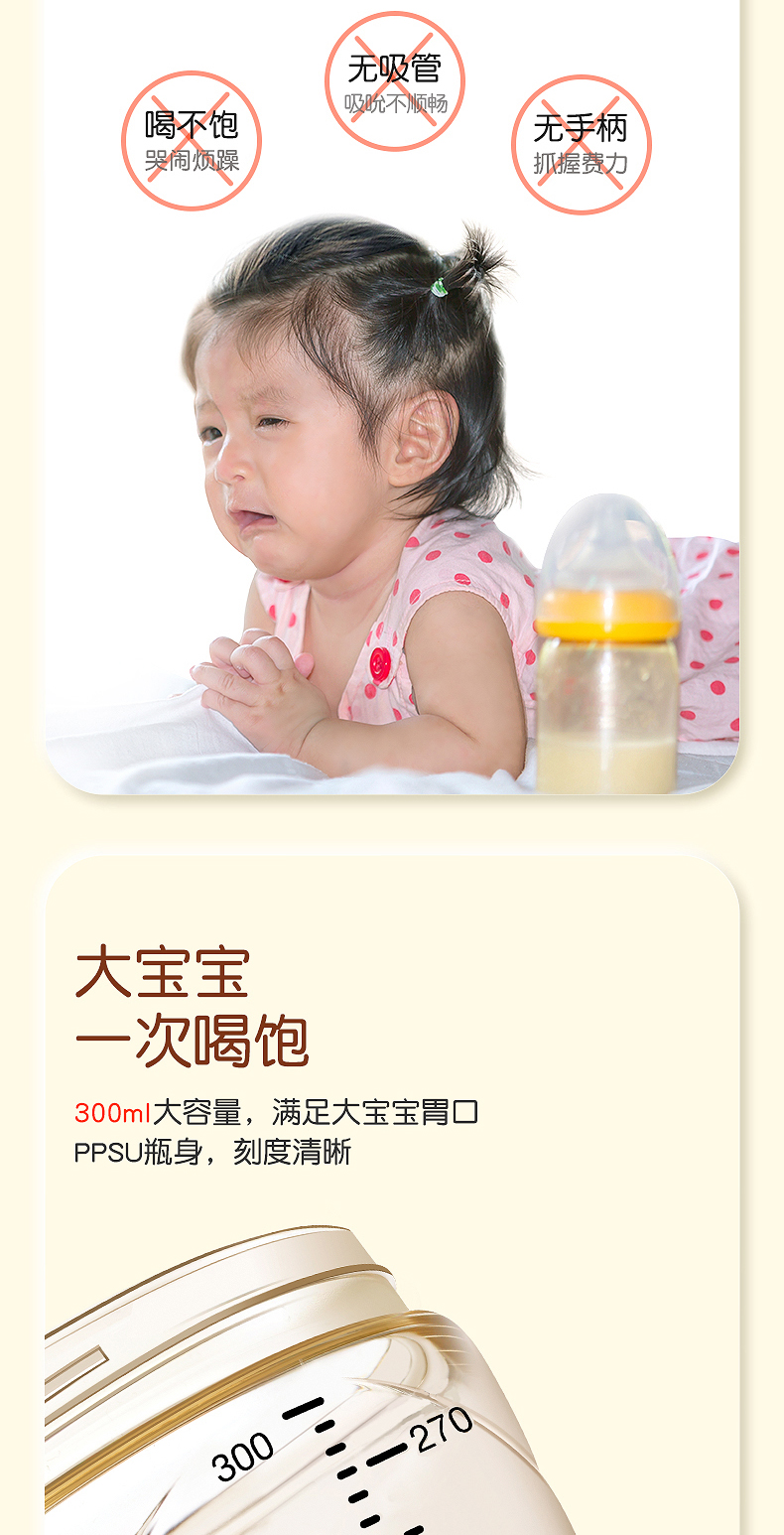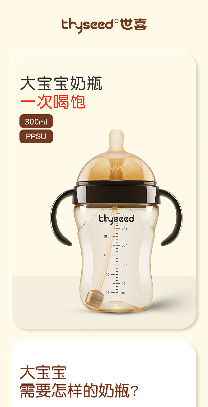 世喜吸管奶瓶大宝宝1岁2岁以上PPSU耐摔杯新生婴儿断奶神器仿母乳300ml毫升