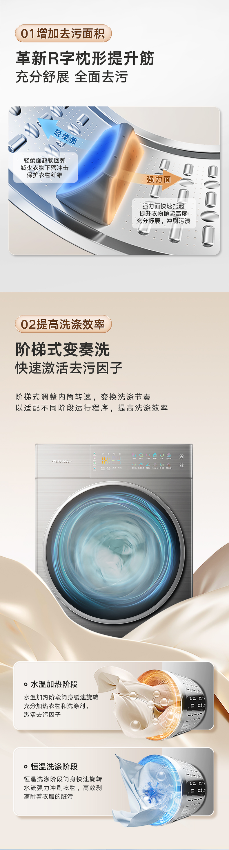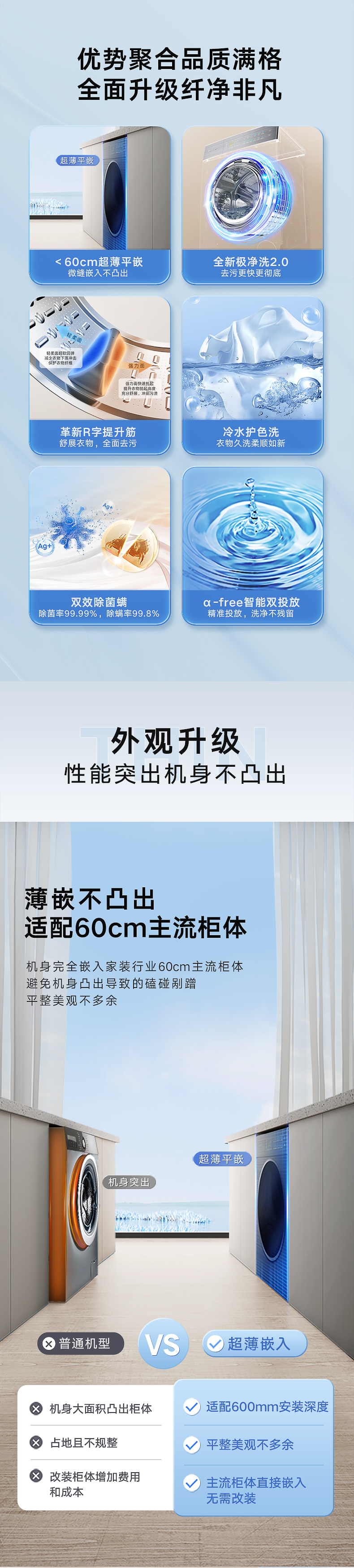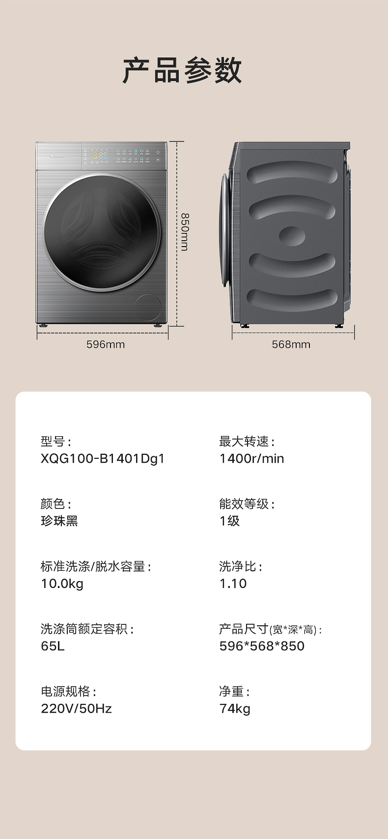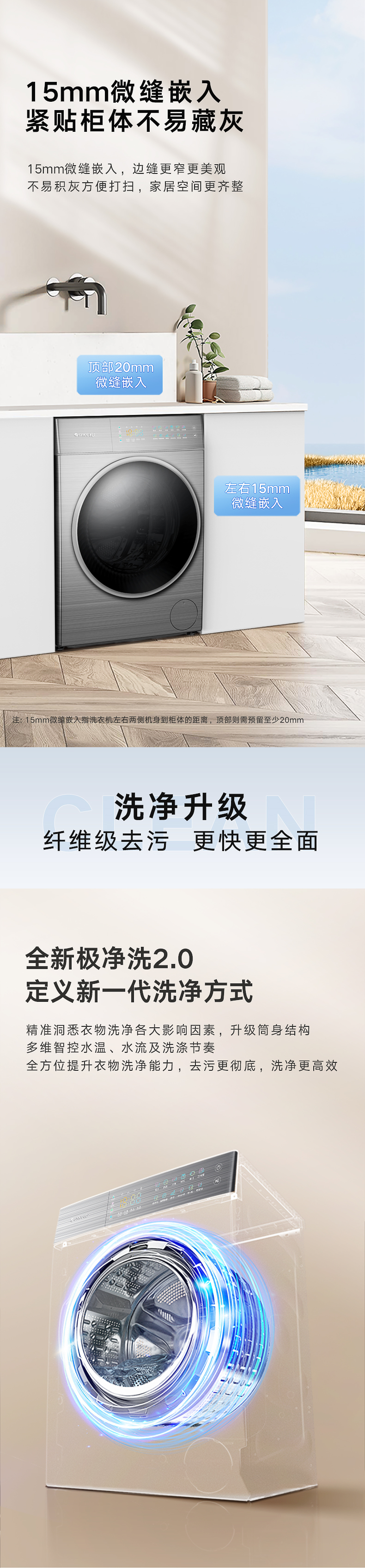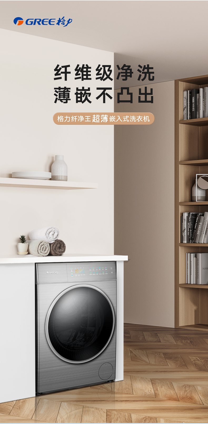格力纤净王超薄嵌入式洗衣机 10kg XQG100-B1401Dg1(珍珠黑)
