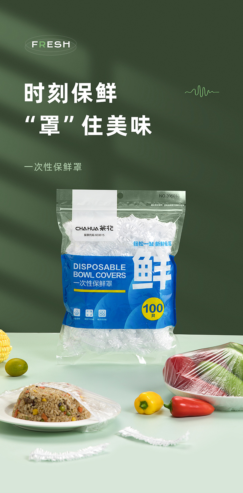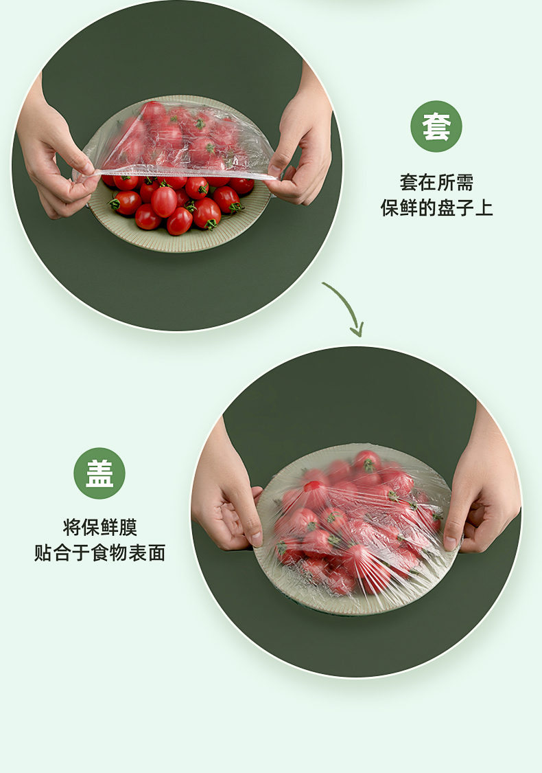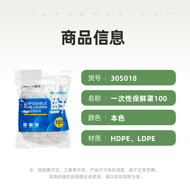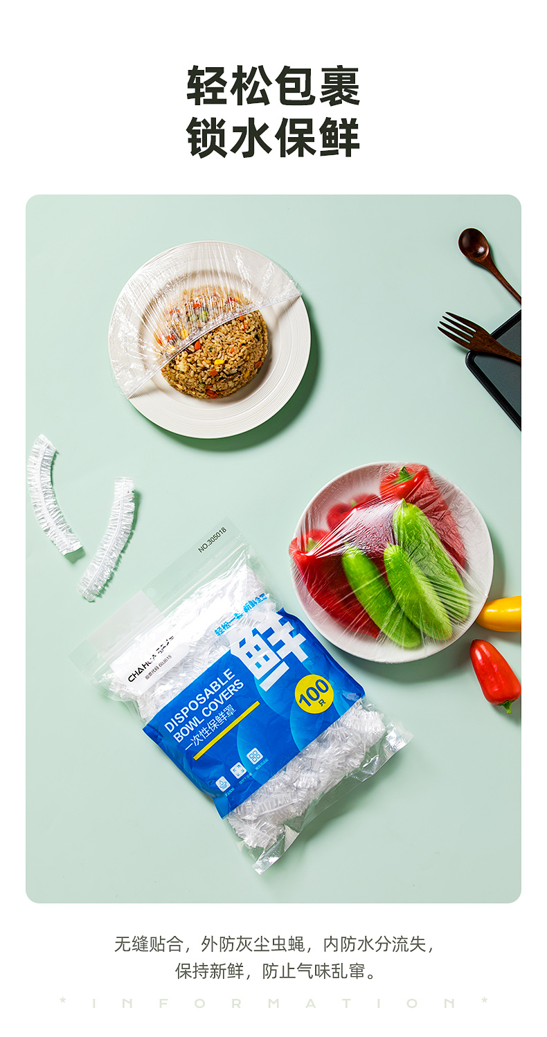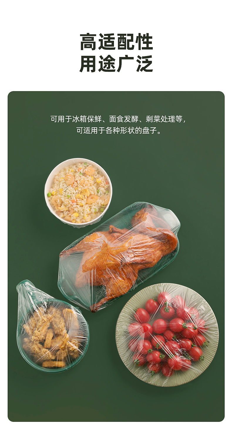 茶花 保鲜膜套 食品级PE松紧口保鲜罩自封口冰箱保鲜袋套共200只*2