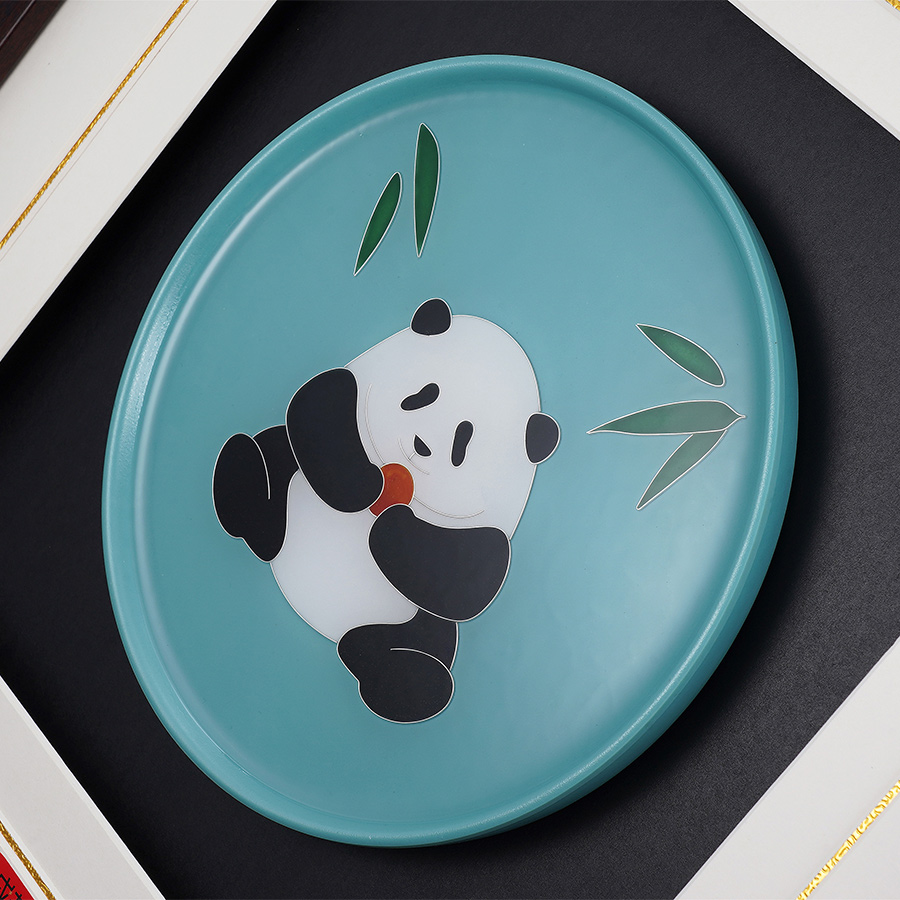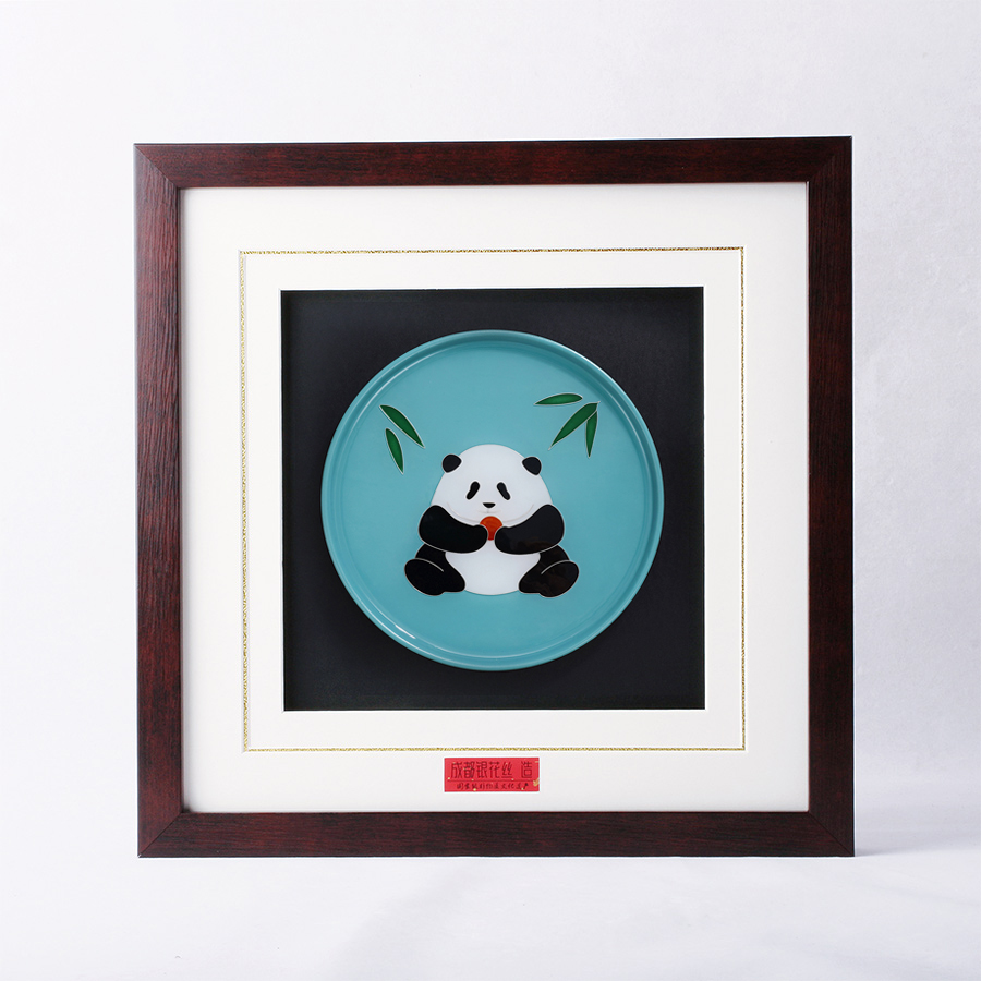 子佩集纯手工制作熊猫系列银花丝珐琅掐丝挂画(含框 手工定制预售 20天出货)大师工坊原创设计2403