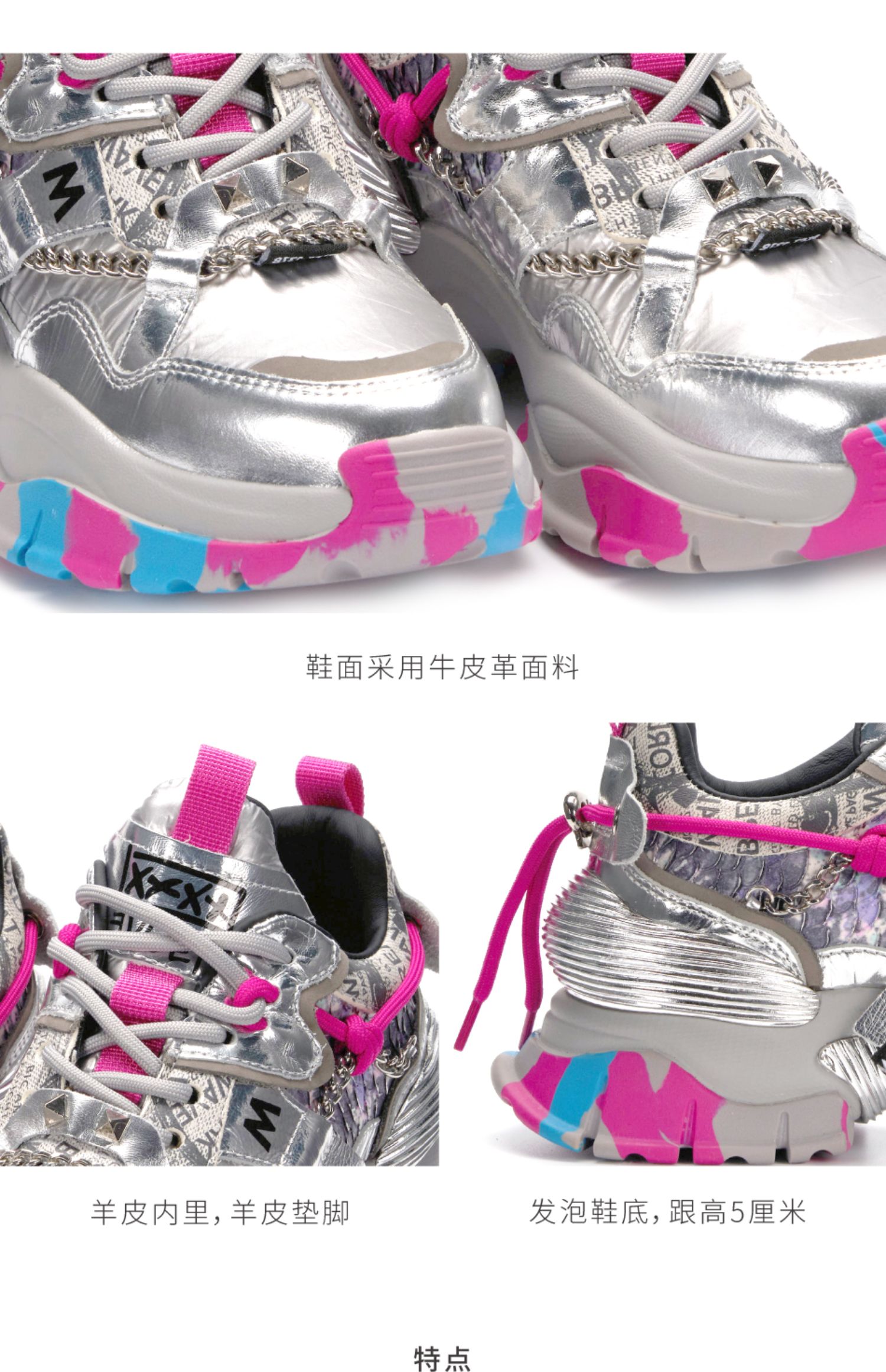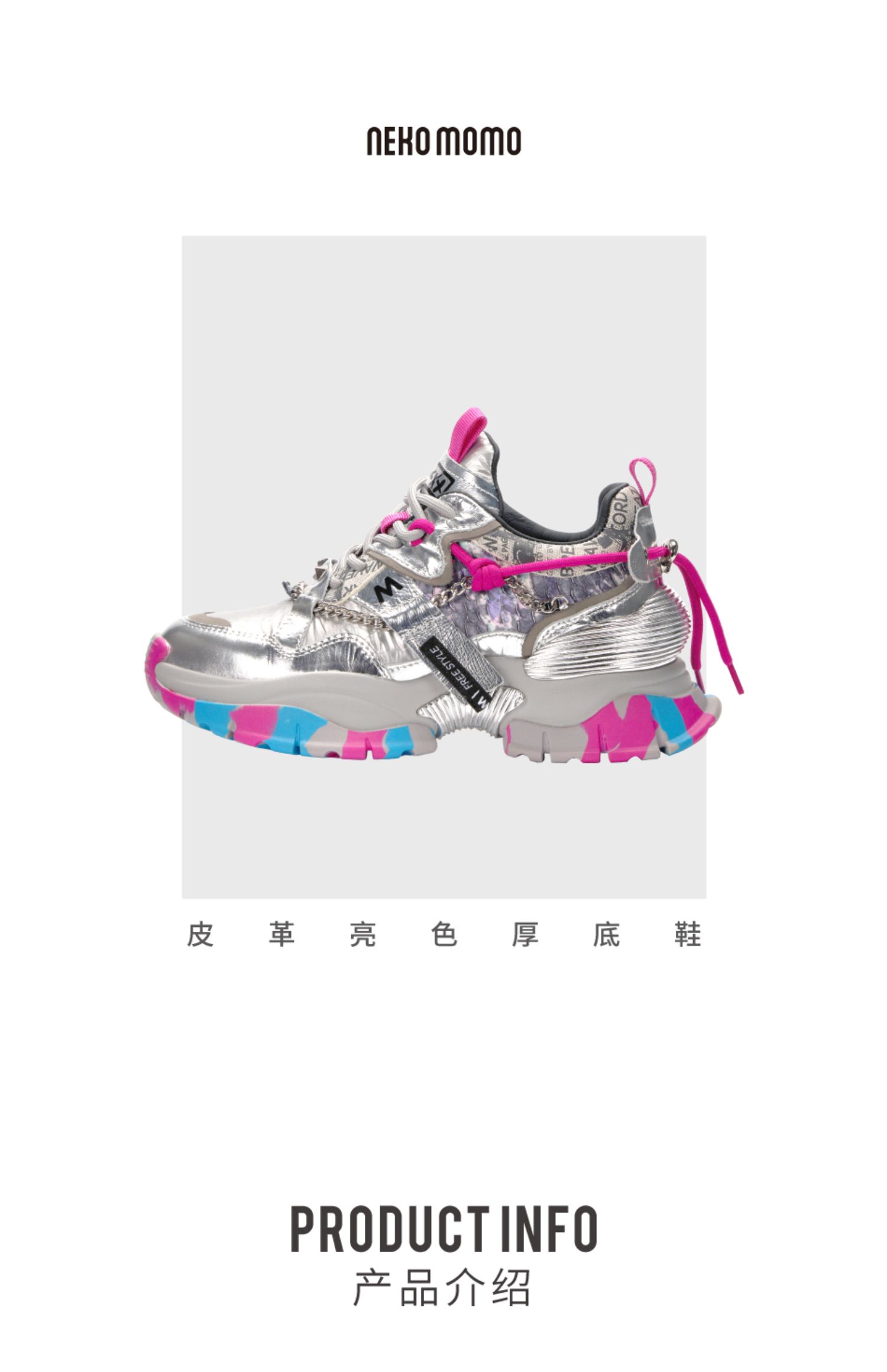 nekomomo2022年秋冬新款商场同款头层牛皮迷彩纹超轻厚底老爹鞋M21CM35901女