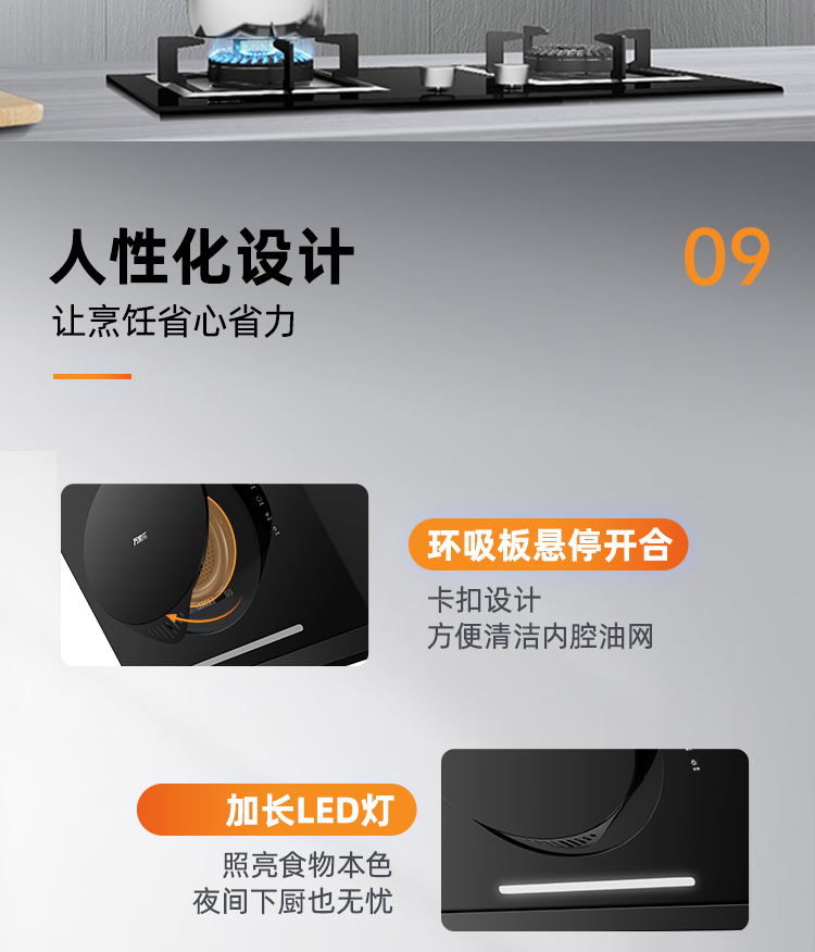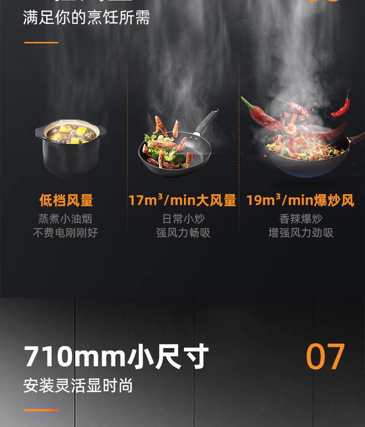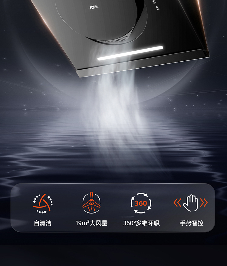 万和(Vanward)爆炒风量23立方 7字形 热干洗 顶侧双吸油烟CXW-310-L08SE