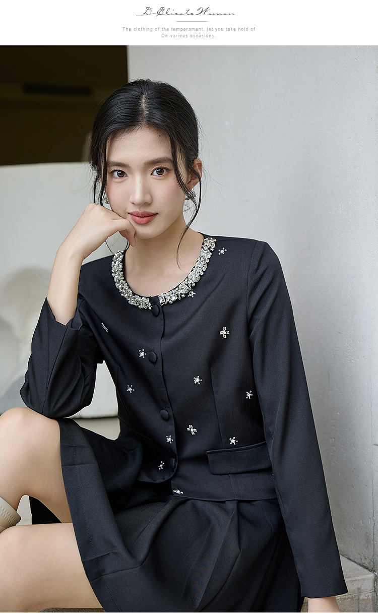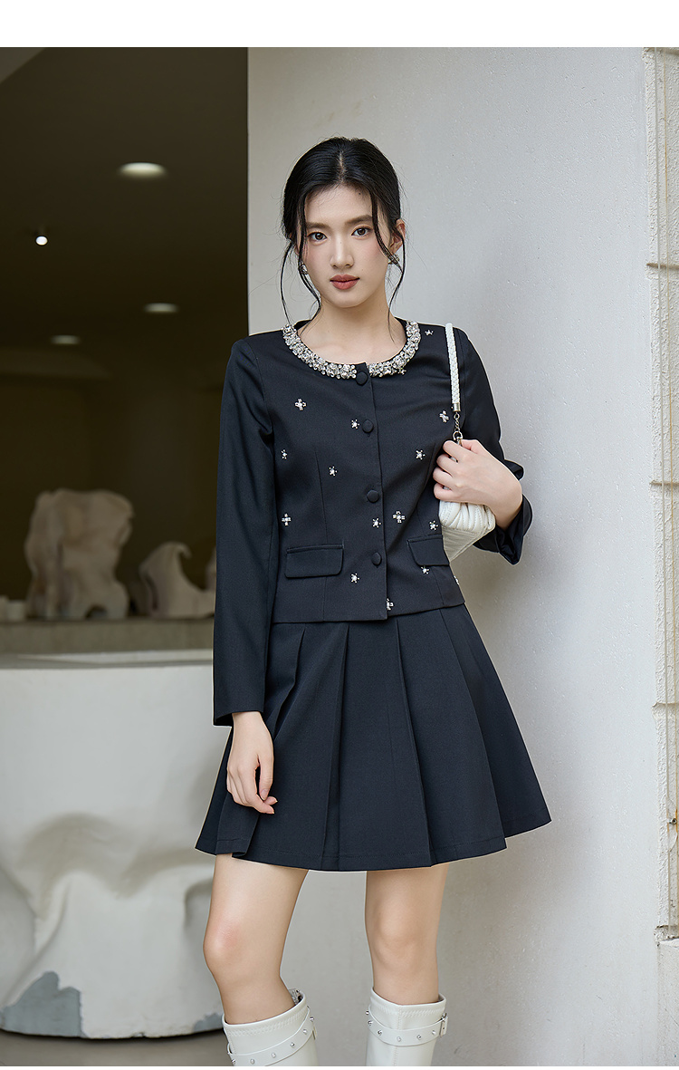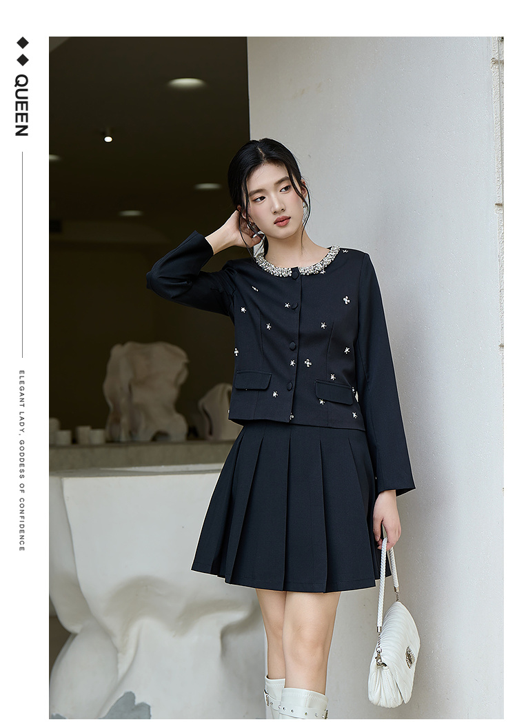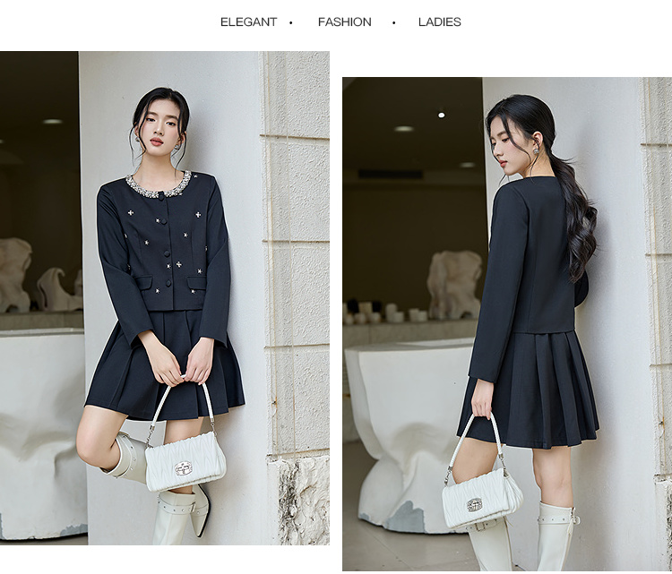 奢姿大码女装2025秋季减龄钉珠时尚两件套胖妹妹半松紧百褶套装9953953621AB