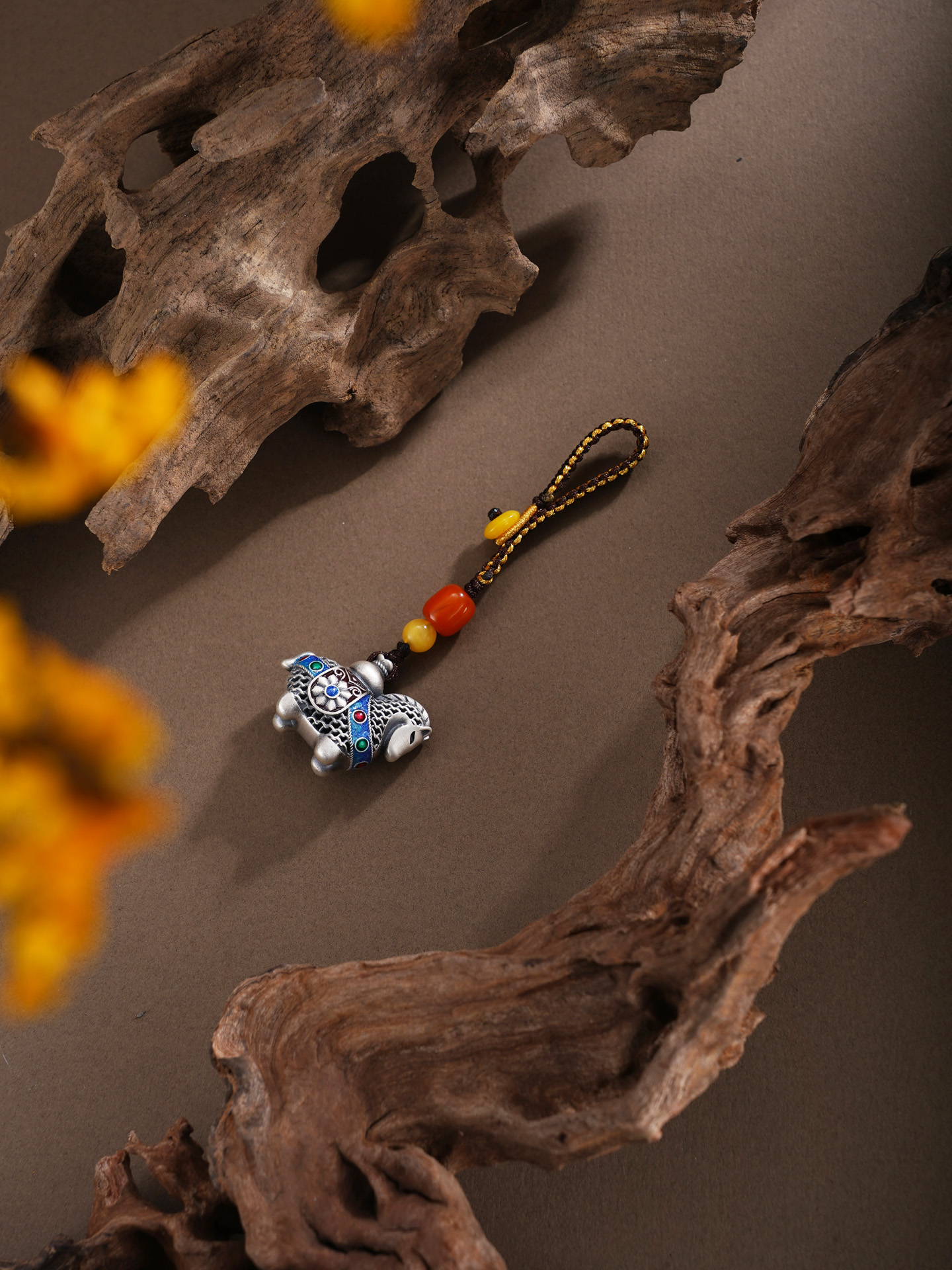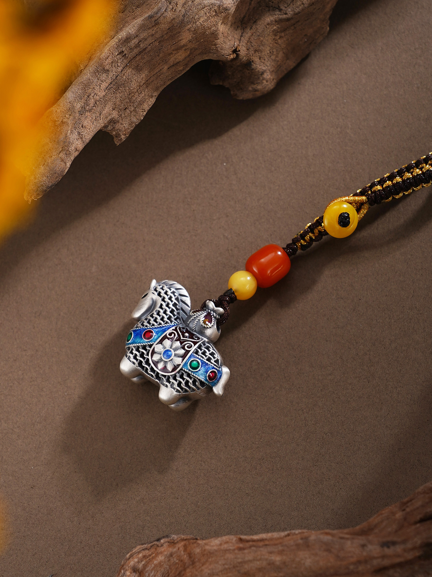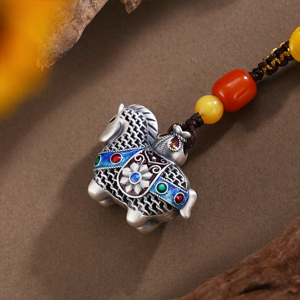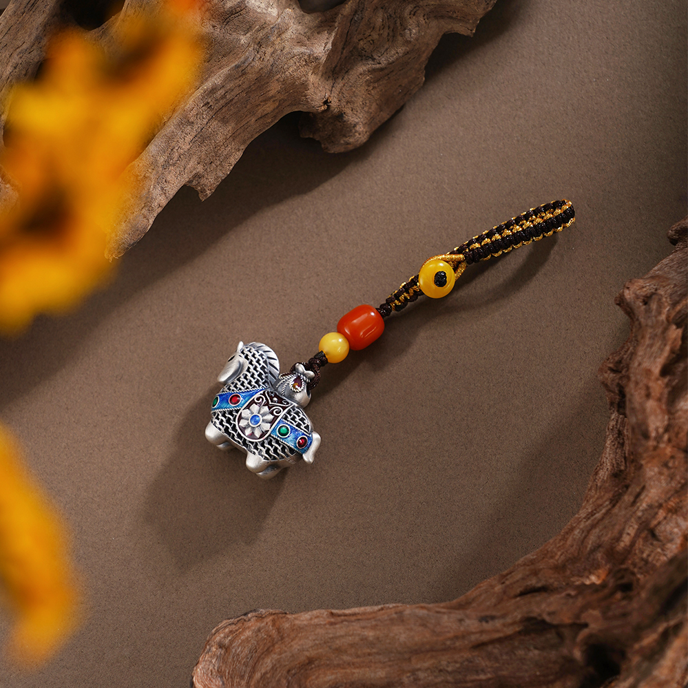 【寓意】:以纯银花丝工艺编织小马钥匙扣,马身缀以花朵纹样,取“马到功成”之吉兆,融“花开富贵”之祥瑞。寓事业如骏马奔腾,人生如繁花绽放。