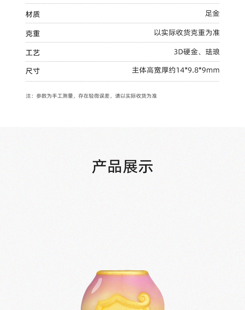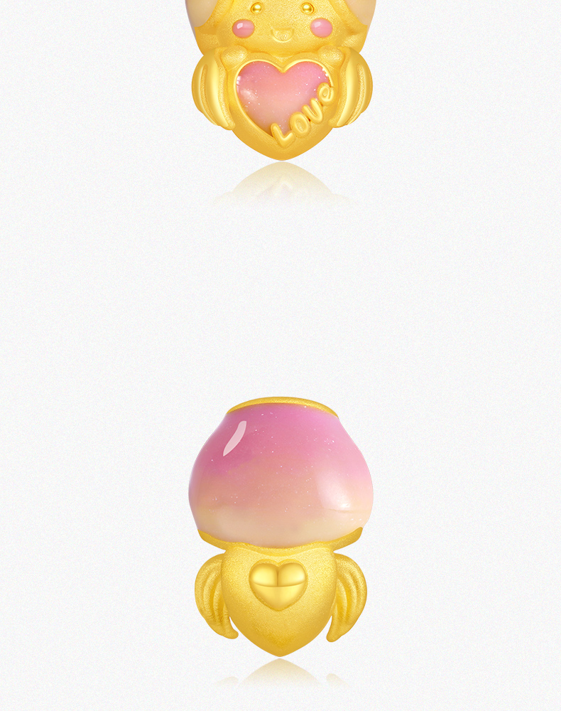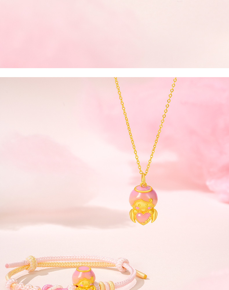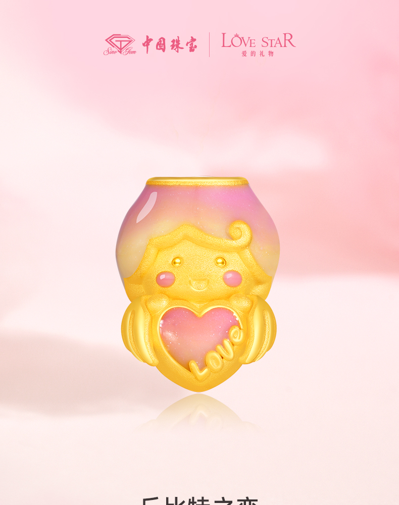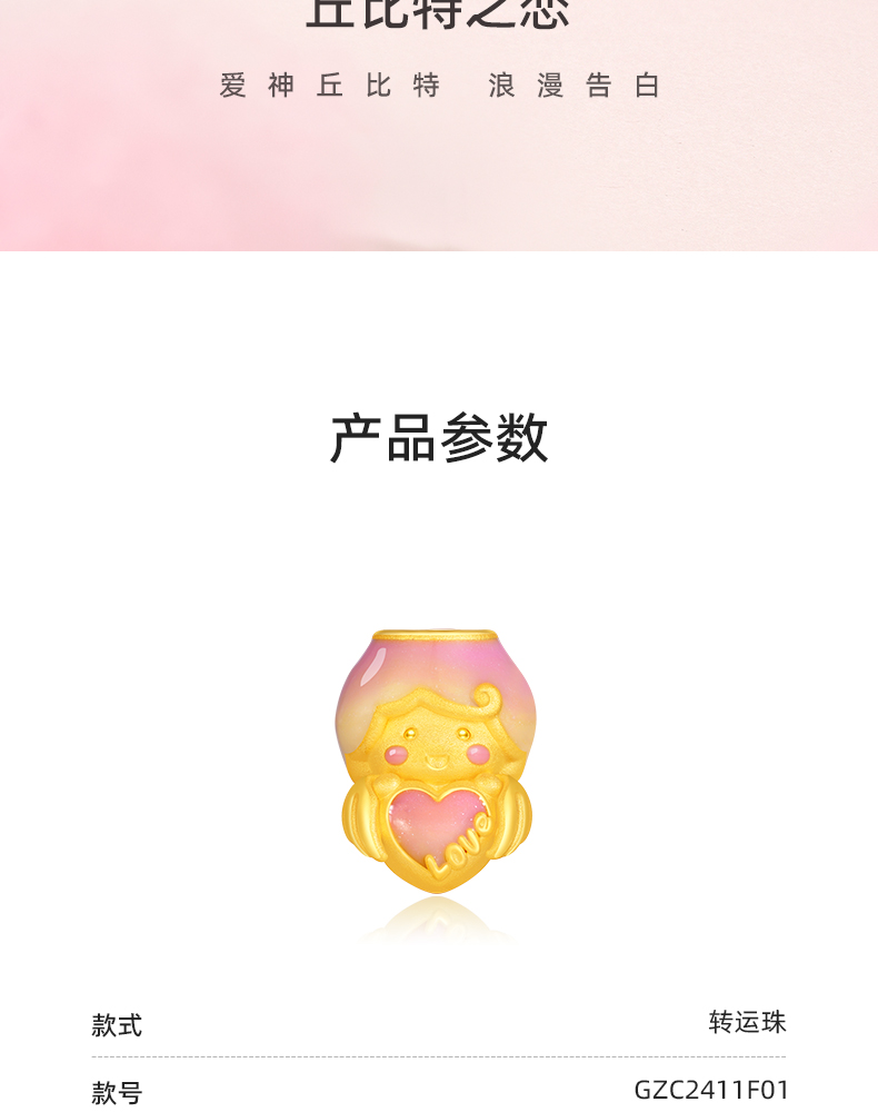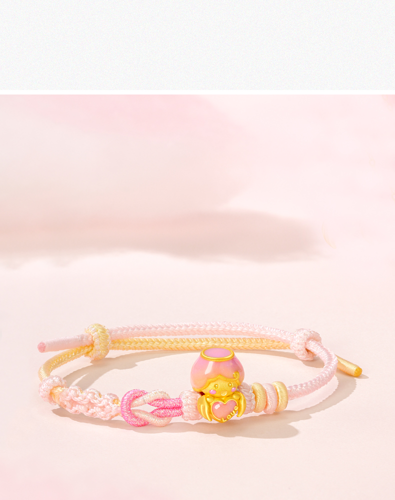 「LOVESTAR-爱的礼物」丘比特之恋黄金转运珠 3D硬金足金爱心手串【Y】