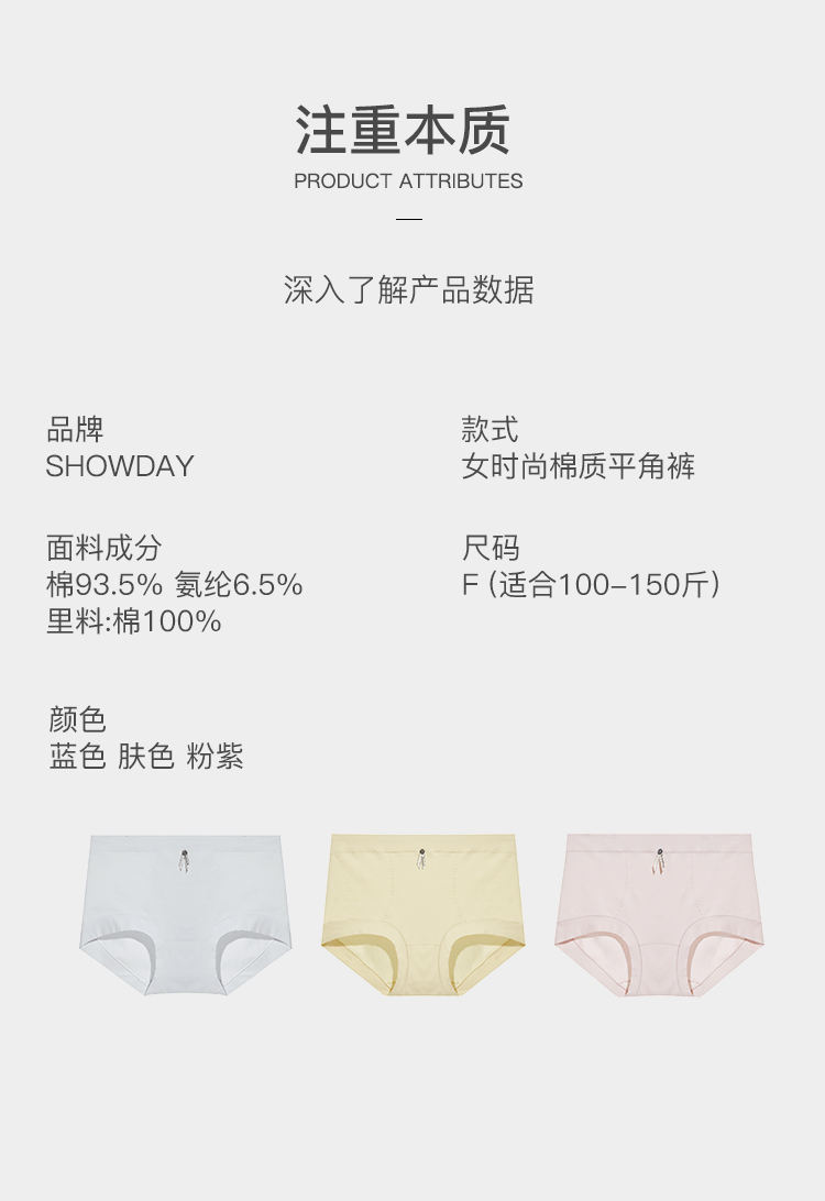 【满4条/7.5折】(大版)【秀黛】女时尚棉质平角裤女士内裤【1条】W5333031T【门店同款】【内裤非质量问题不退换,介意勿拍】