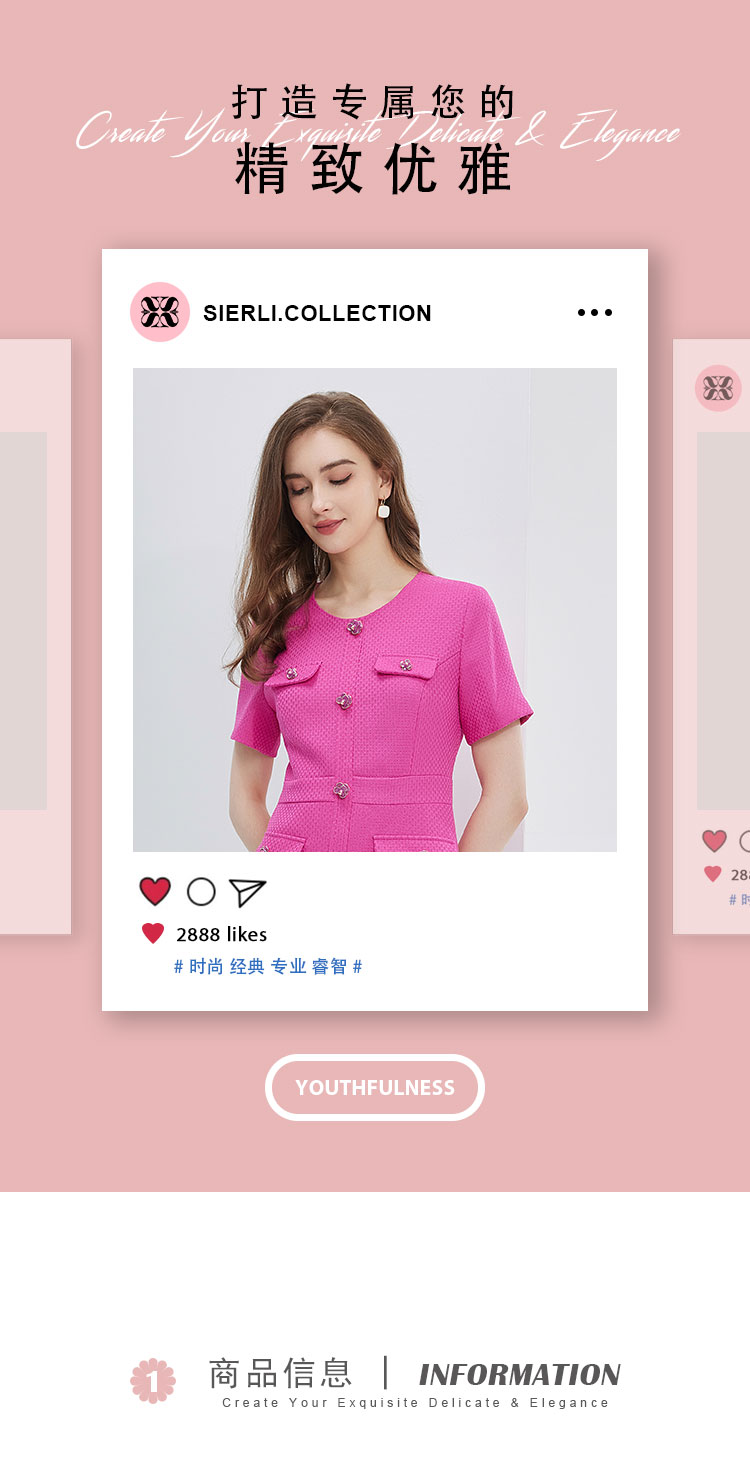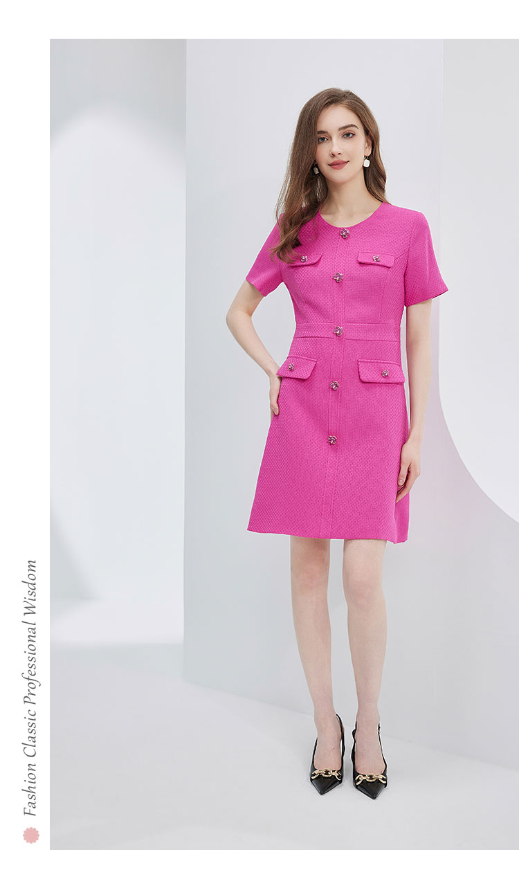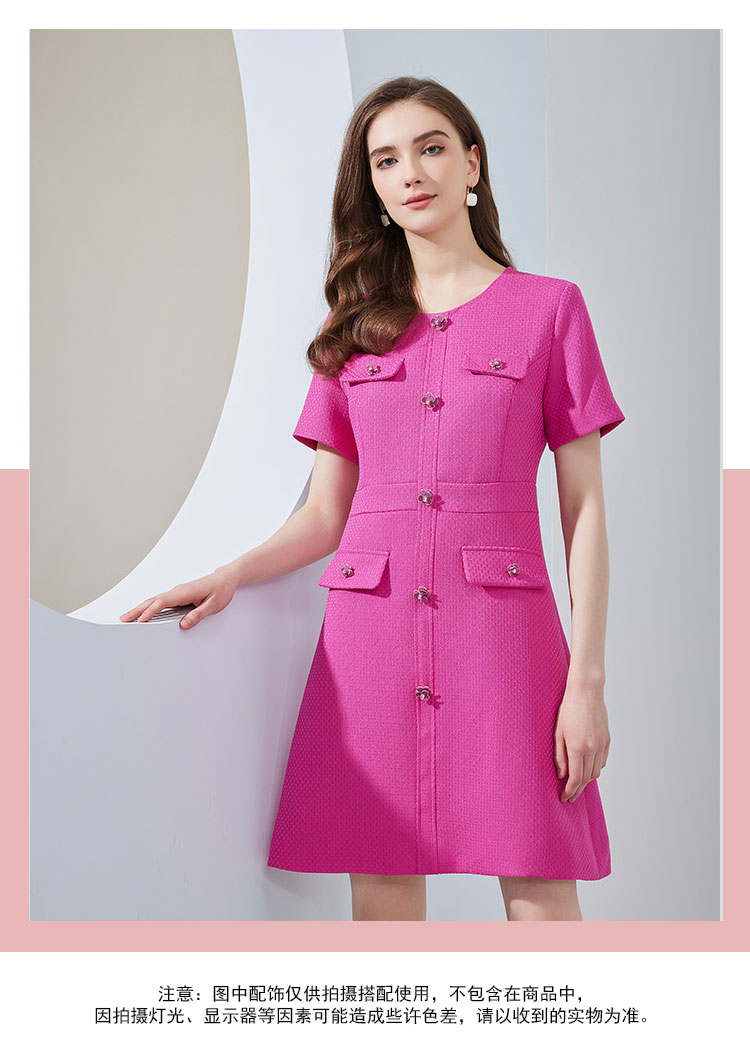 NF892斯尔丽瑟俪2023春夏新品小香风火龙果亮色活泼减龄OL气质连衣裙
