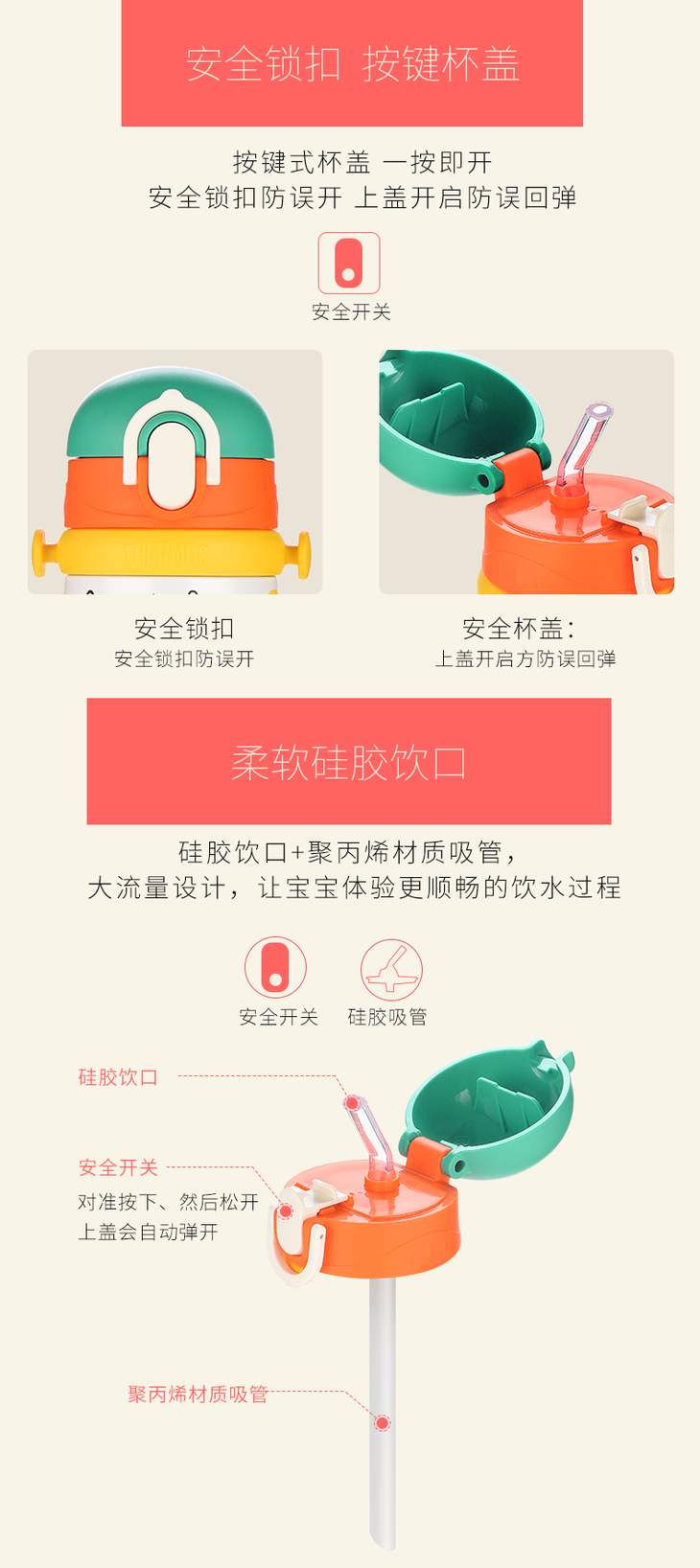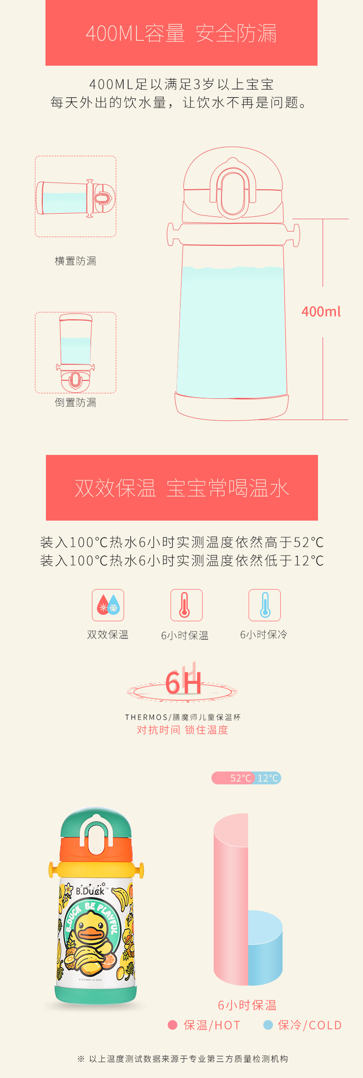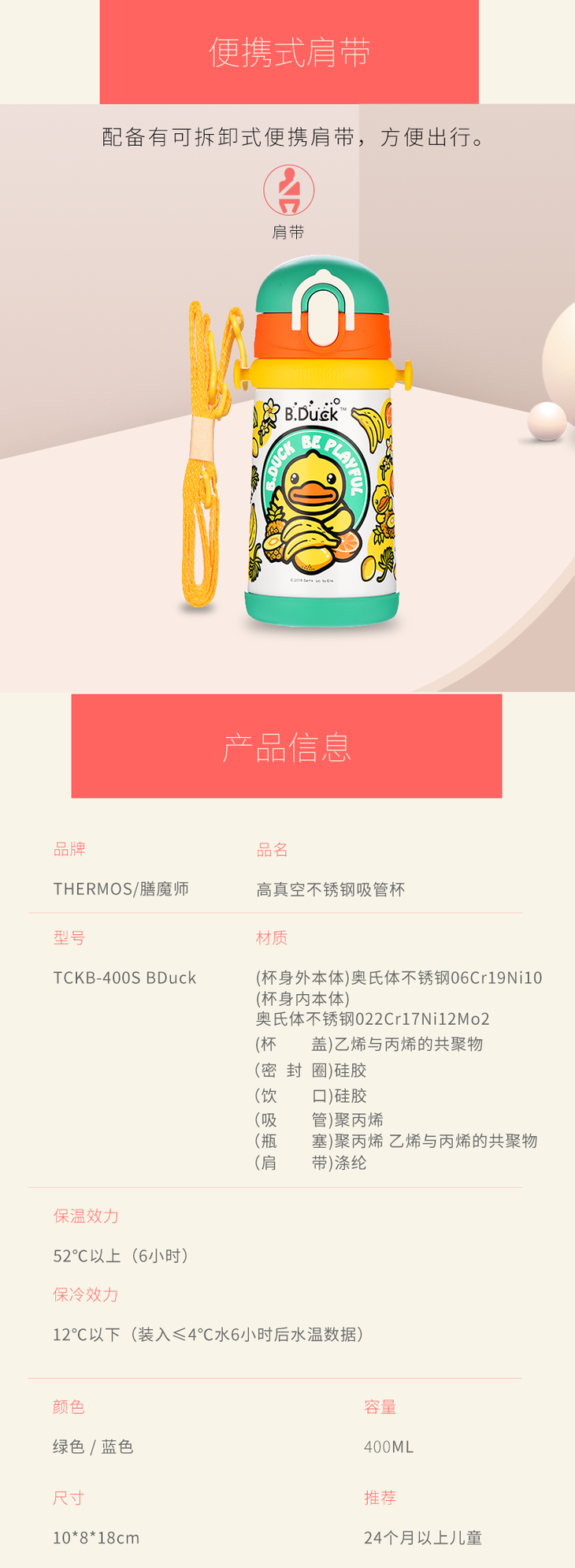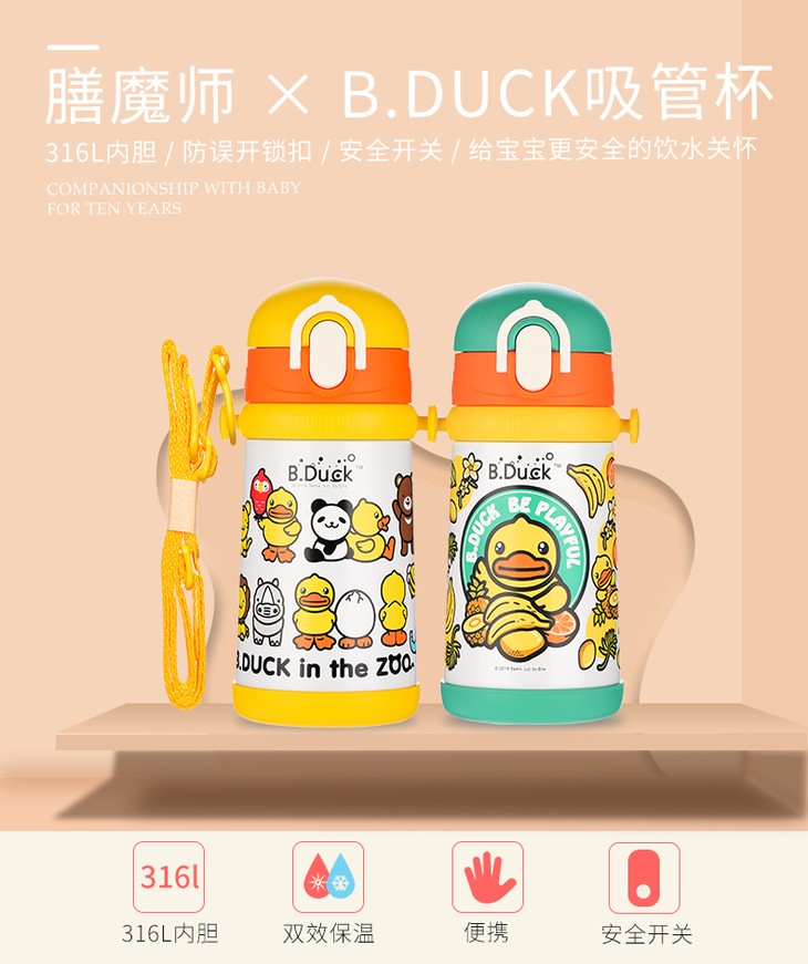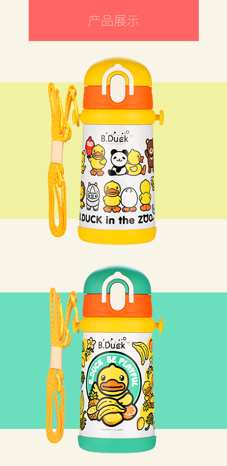 膳魔师小黄鸭高真空不锈钢背带吸管杯400ml