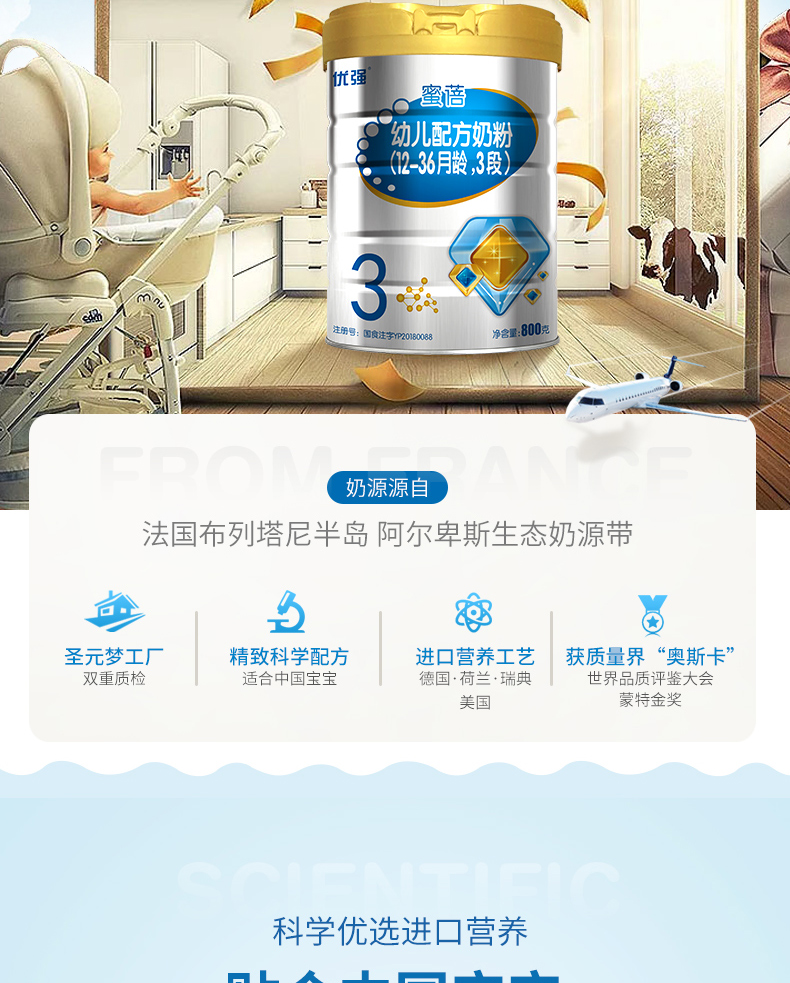 圣元优强婴儿新生儿3段配方牛奶粉国产奶粉800g1-3岁【圣元】