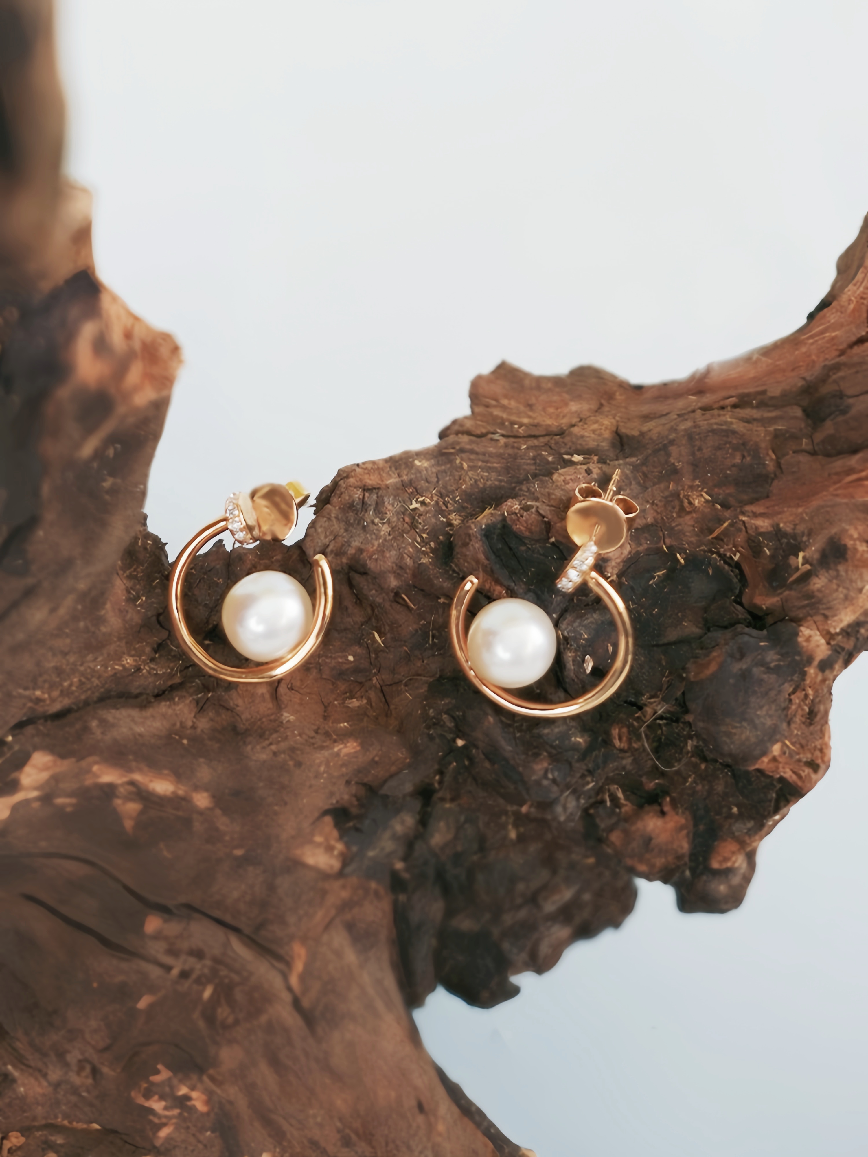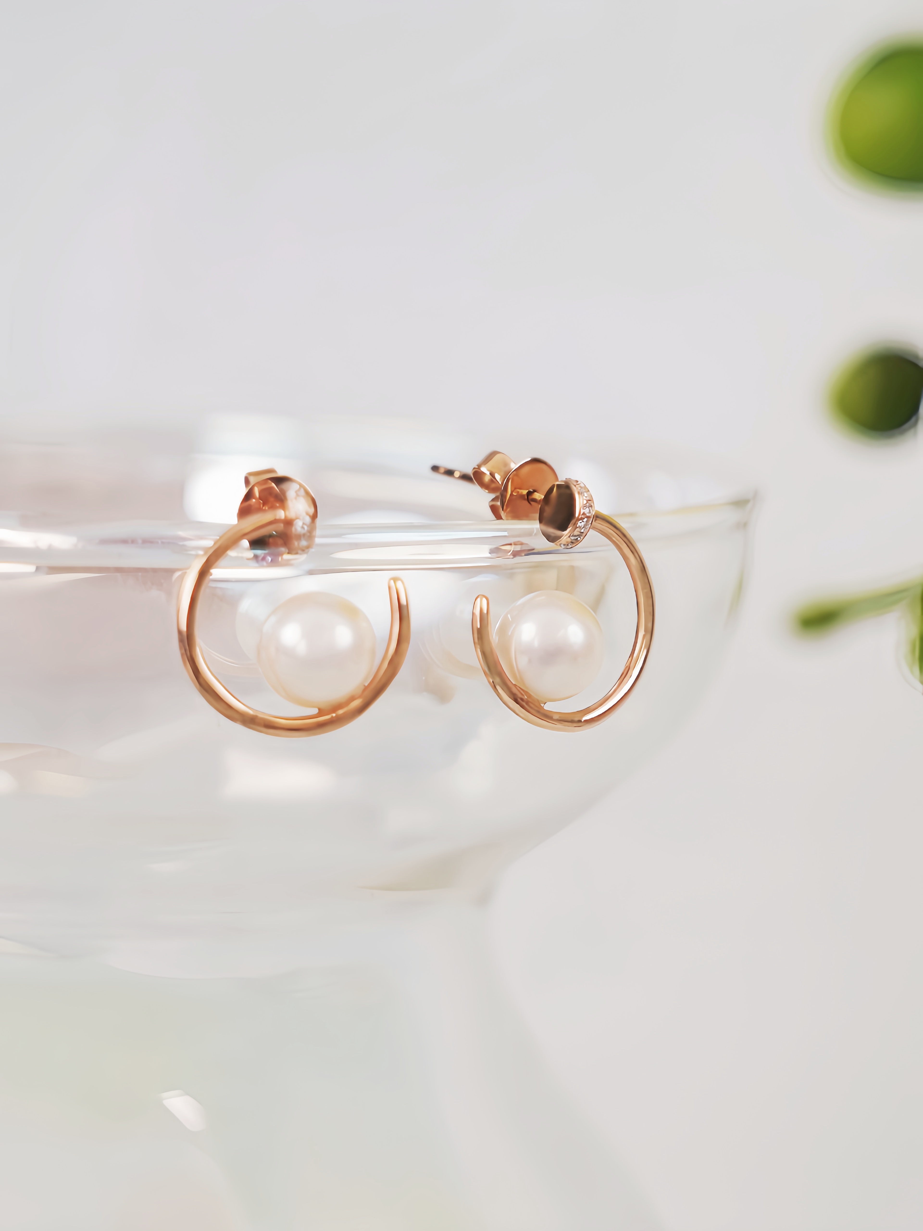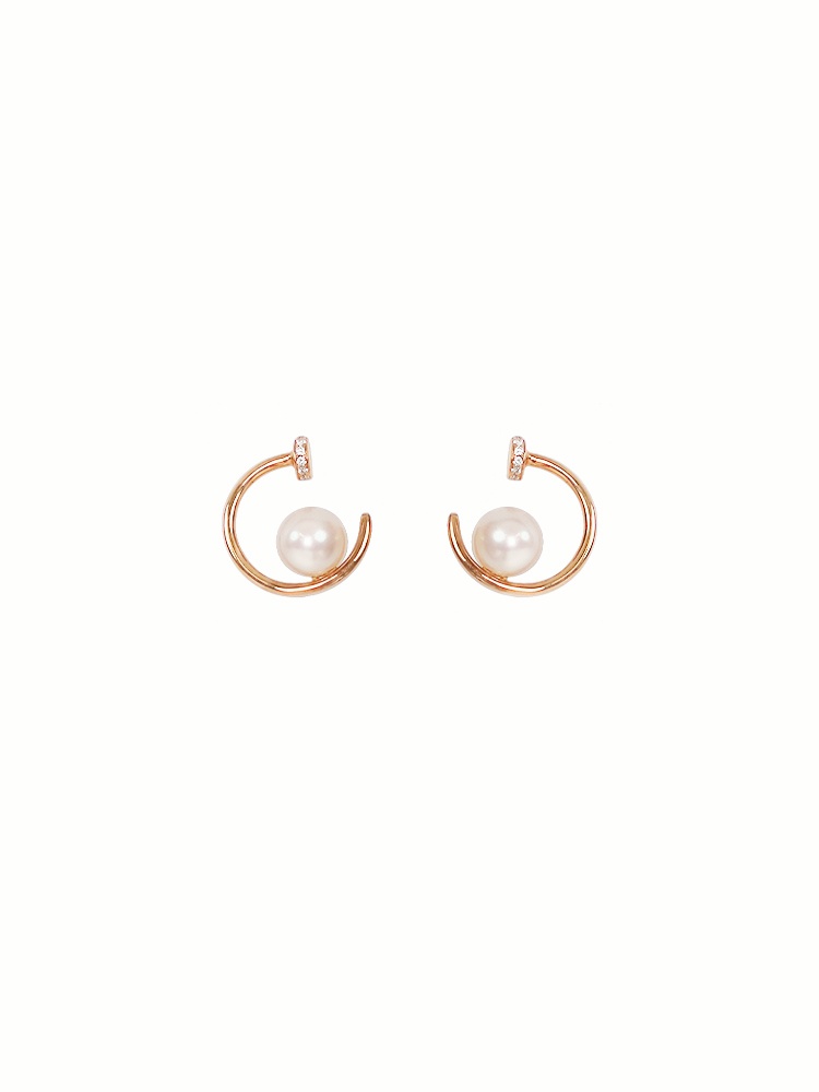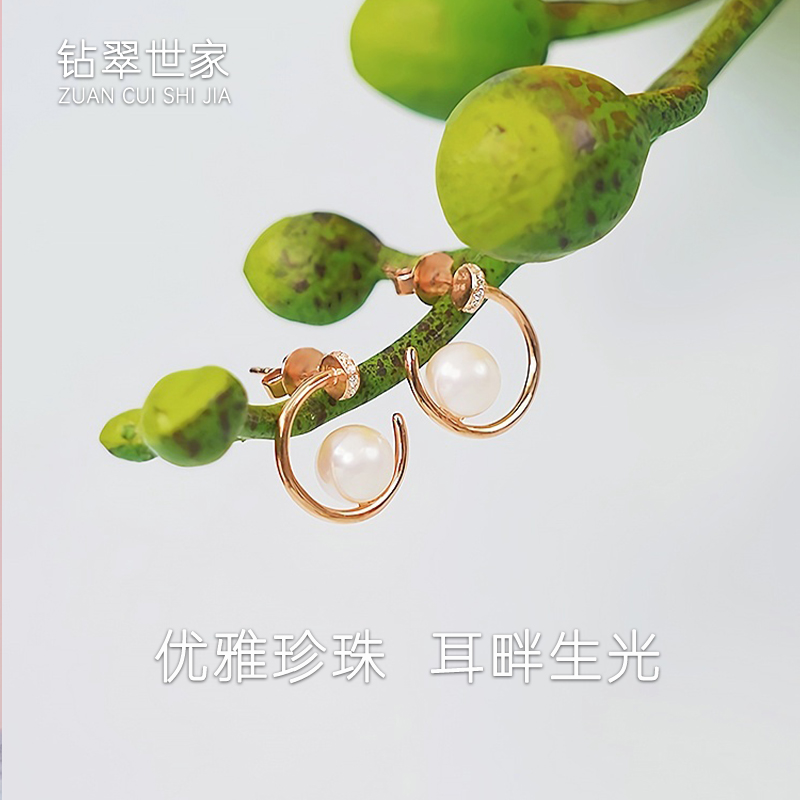【现货】18K金珍珠耳饰半圆镶钻几何珍珠耳饰【尺寸6.3mm】 【一物一证书】