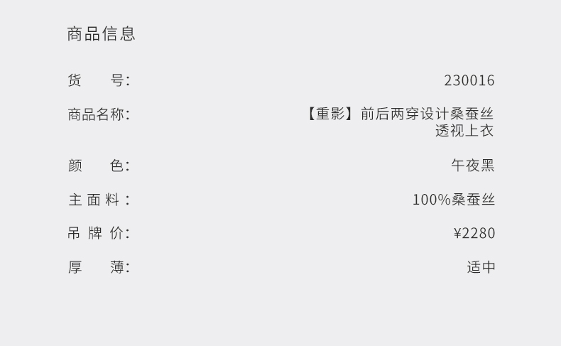 【重影】前后两穿设计桑蚕丝透视上衣/230016