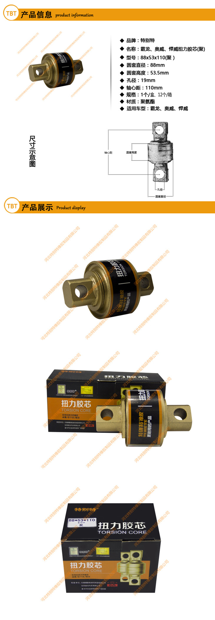 奥威扭力胶芯、悍威扭力胶芯88*53*110(聚)(单价=1个,12个=1箱)霸龙457桥扭力胶芯/奥威拉臂套、悍威拉臂套、霸龙457桥拉臂套/奥威拉力套、悍威拉力套、霸龙457桥拉力套8853110