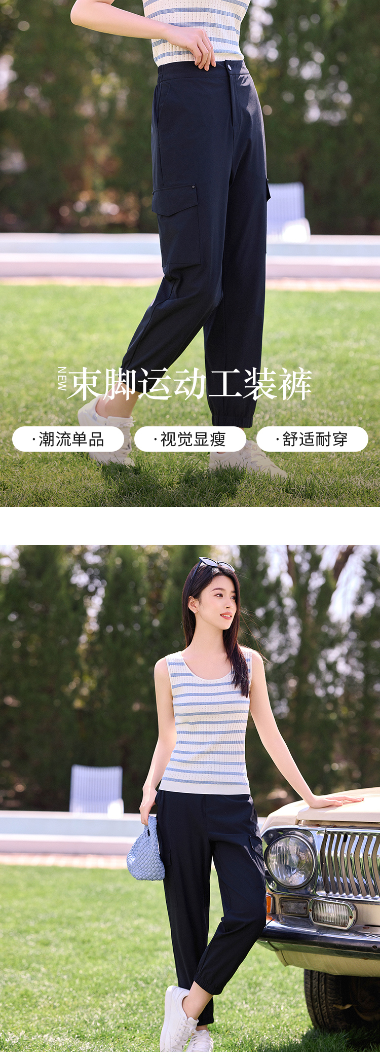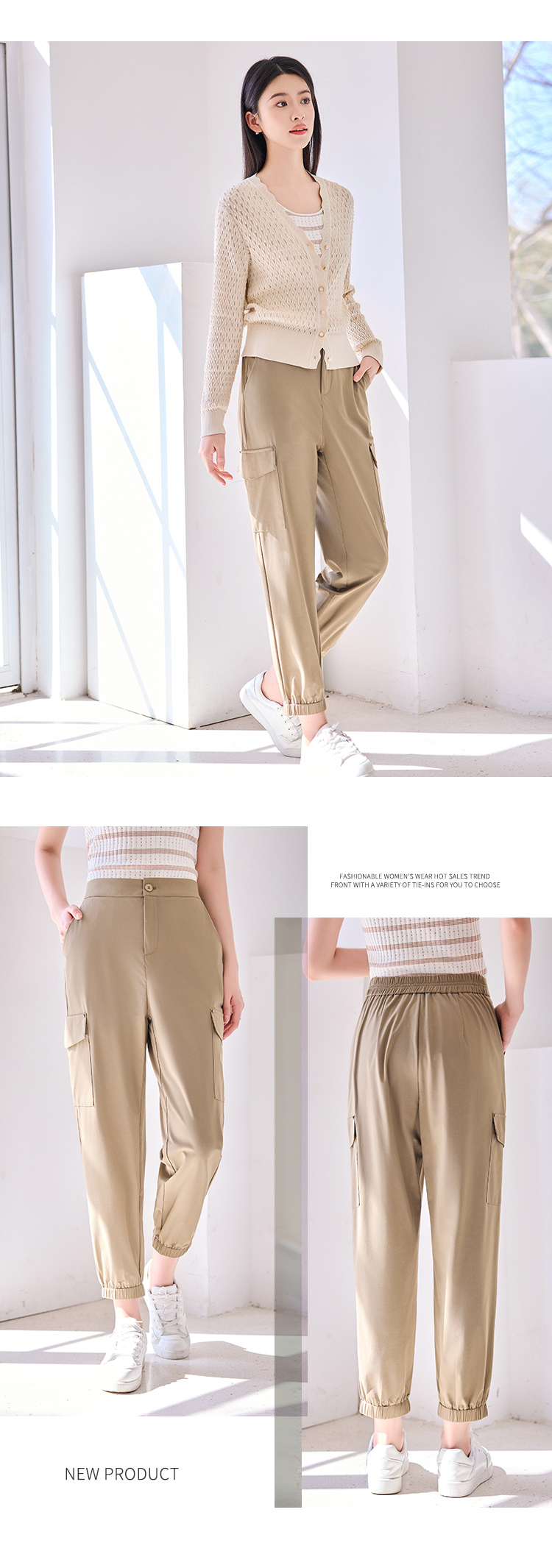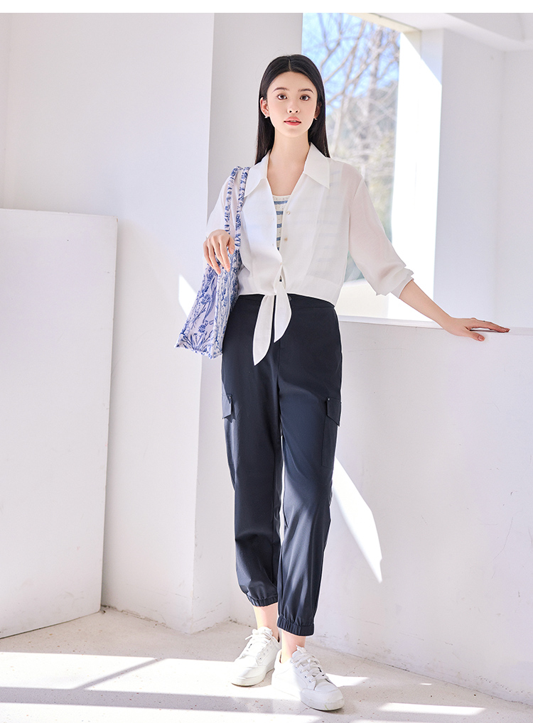 【商场同款】CNT4593 “ 速干工装裤 ” 藏蓝色和卡其色都是好搭配的色系 工装风扎口裤型 修饰腿型好穿减龄 锦氨混纺面料,凉爽透气