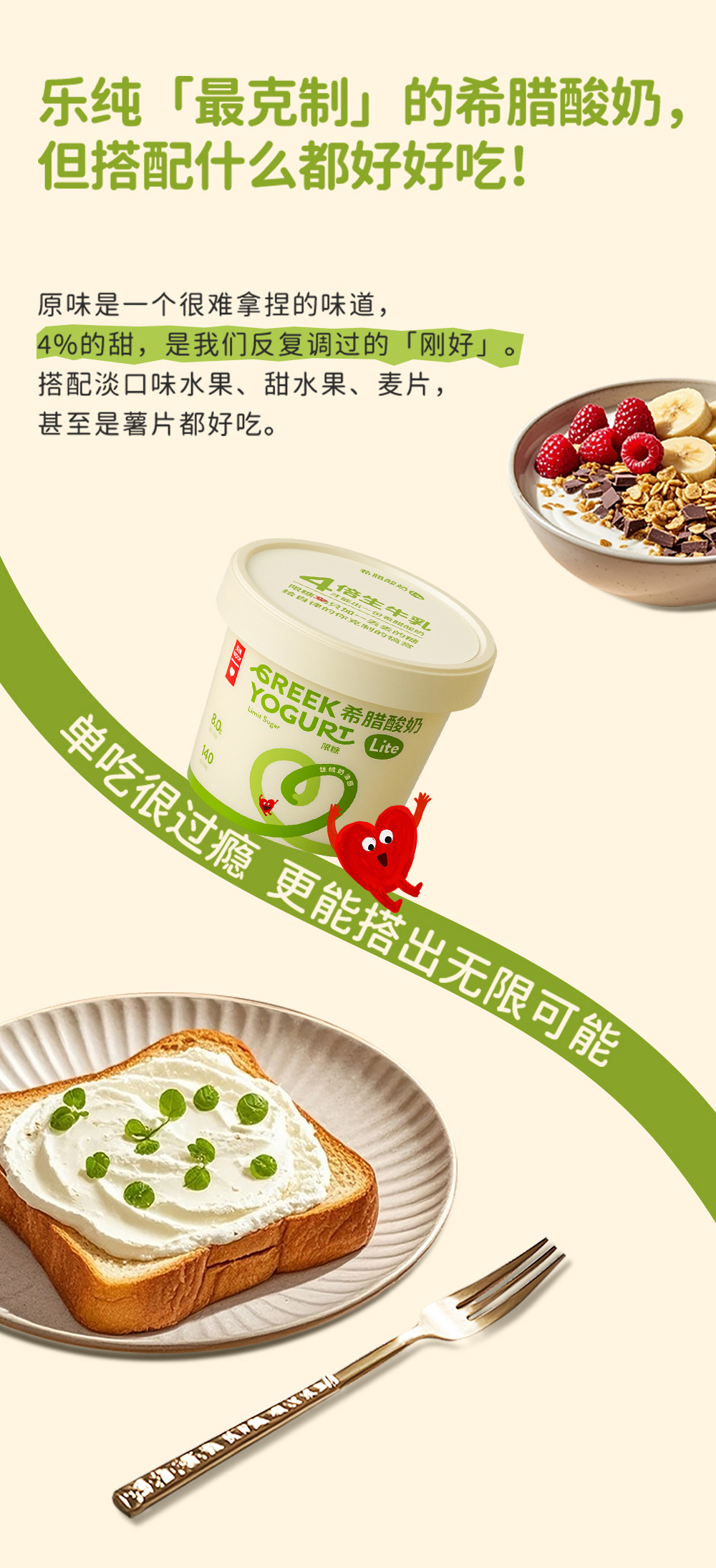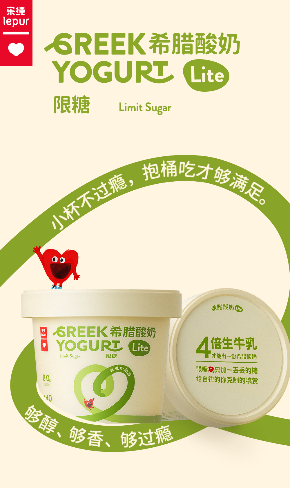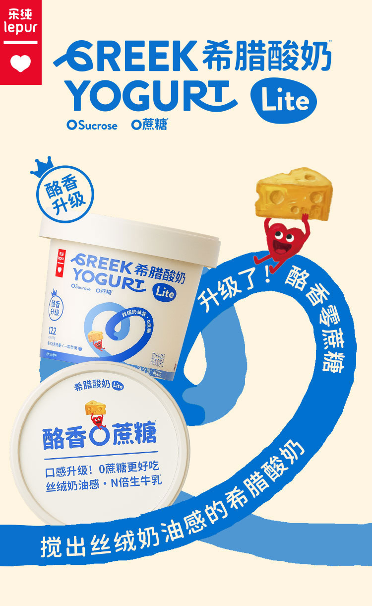 【顺丰包邮】乐纯 希腊酸奶桶装Lite(限糖原味/0蔗糖)400g/400g*2
