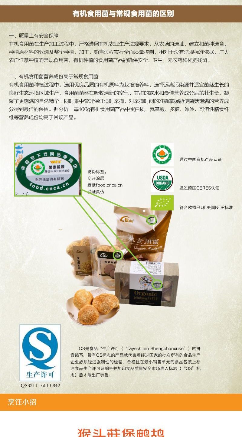 信洲有机猴头菇100g/袋
