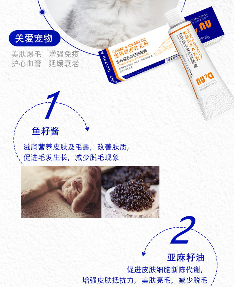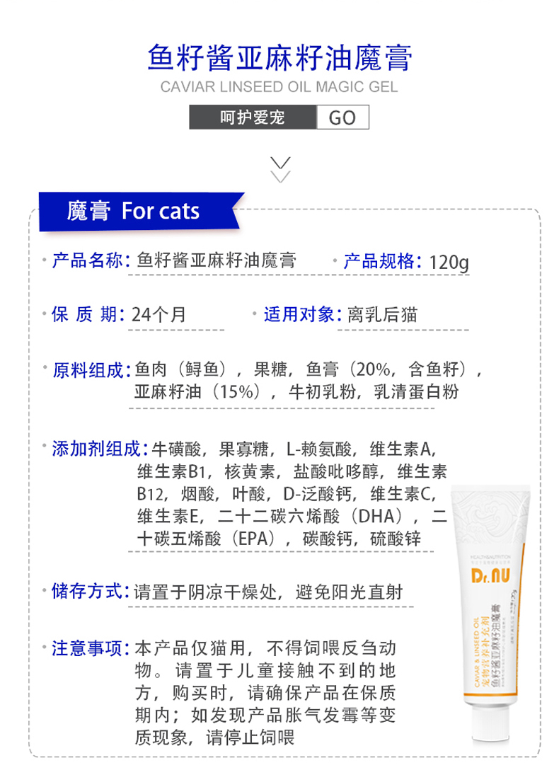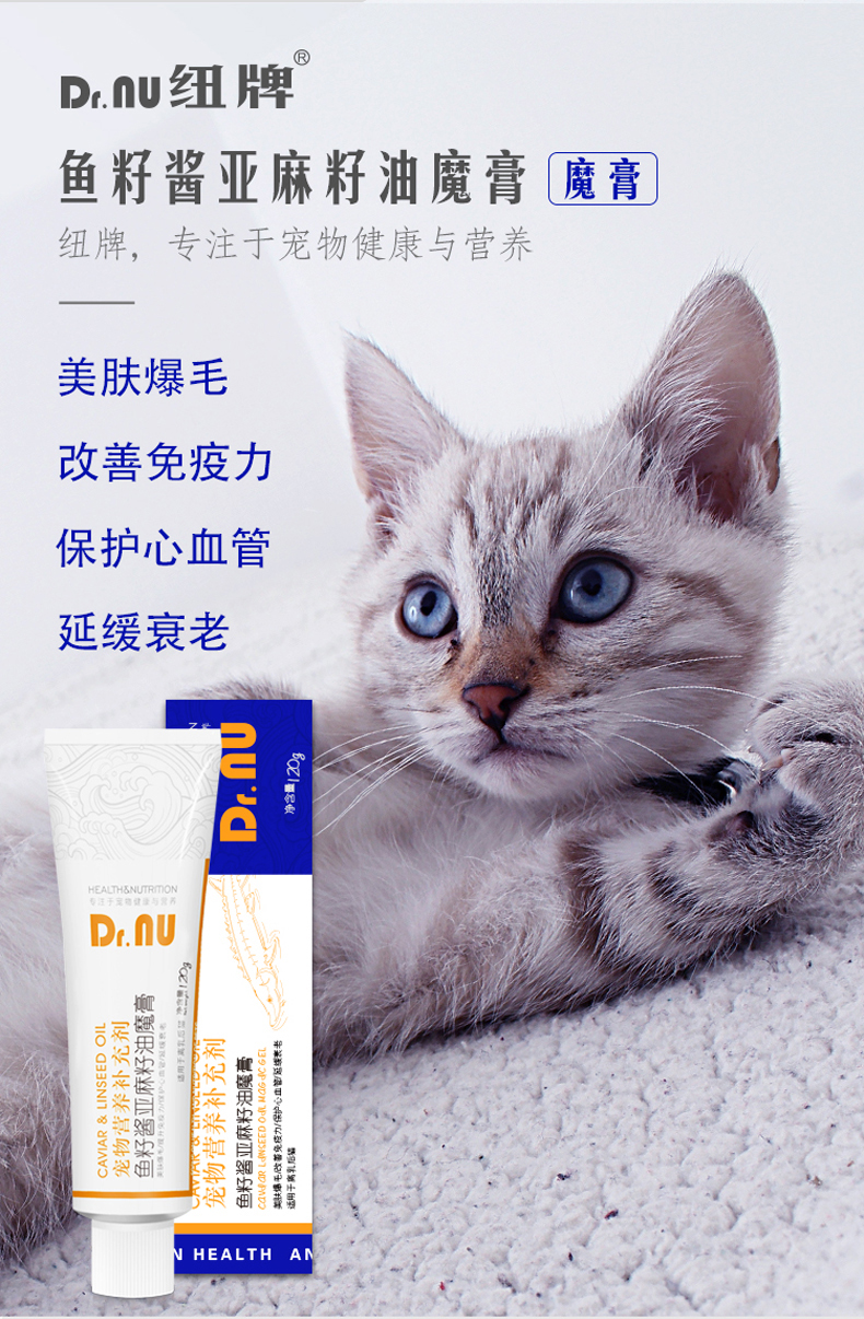 Dr.NU纽牌 魔膏鱼籽酱 亚麻籽油 宠物牛磺酸营养膏 美毛补充剂 120g
