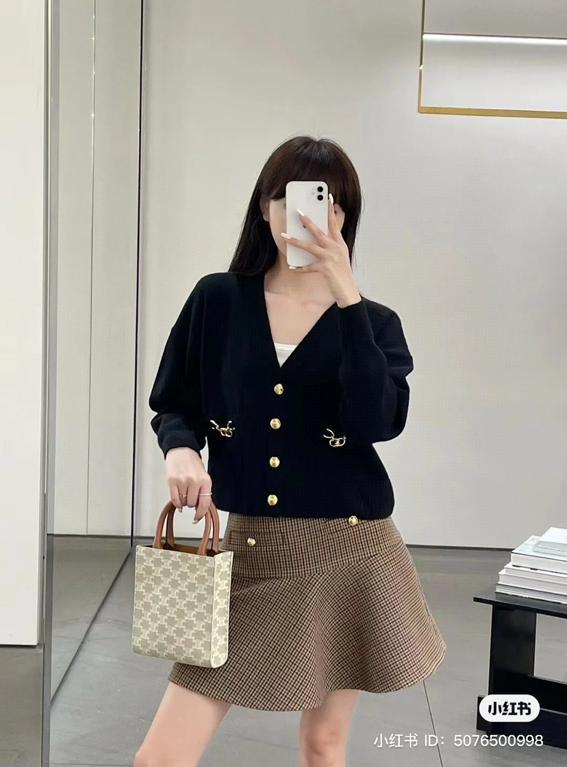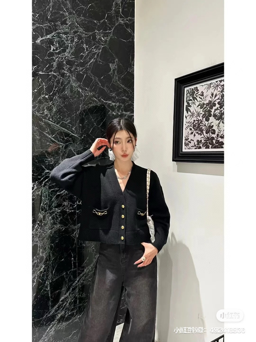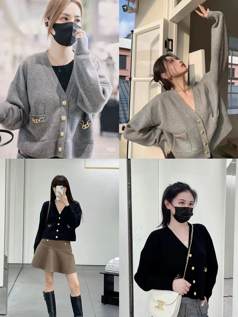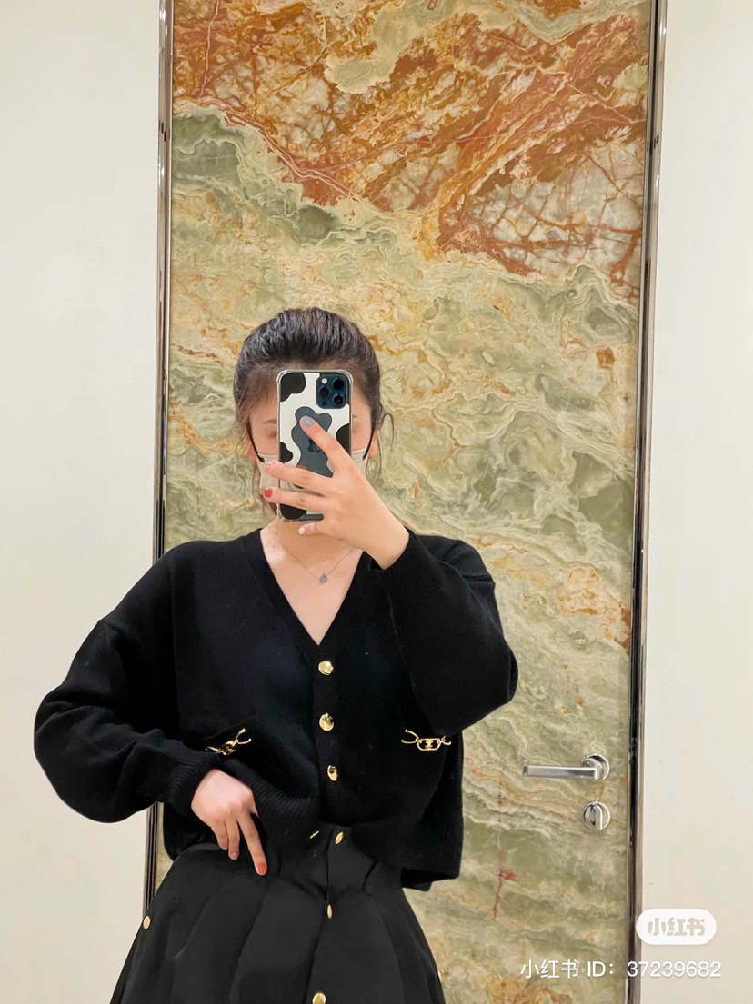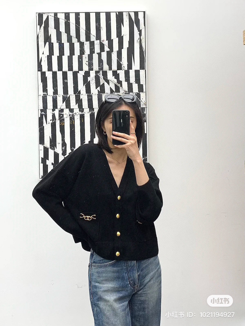 114-1独家圆正 阿娇同款 ce凯旋门金扣 客供山羊绒 重磅针织开衫