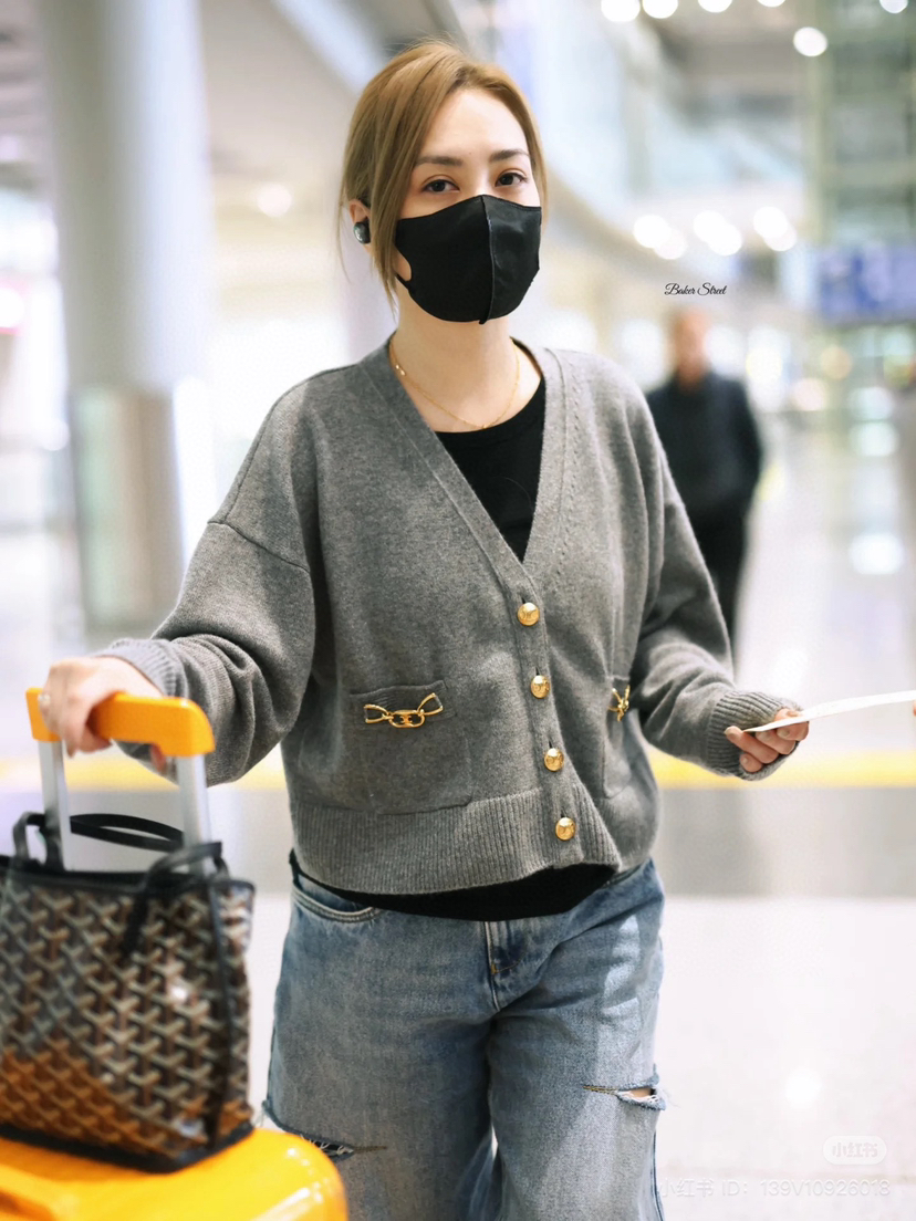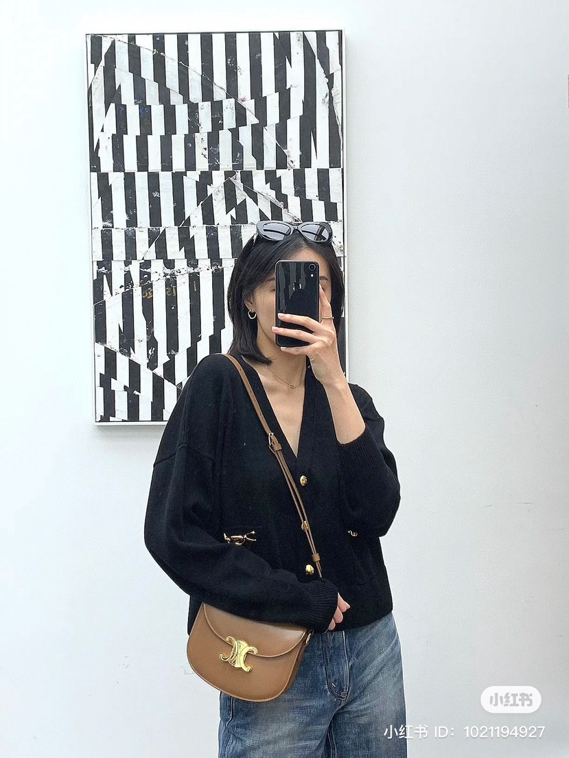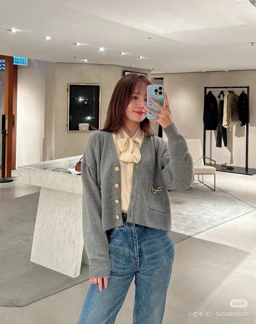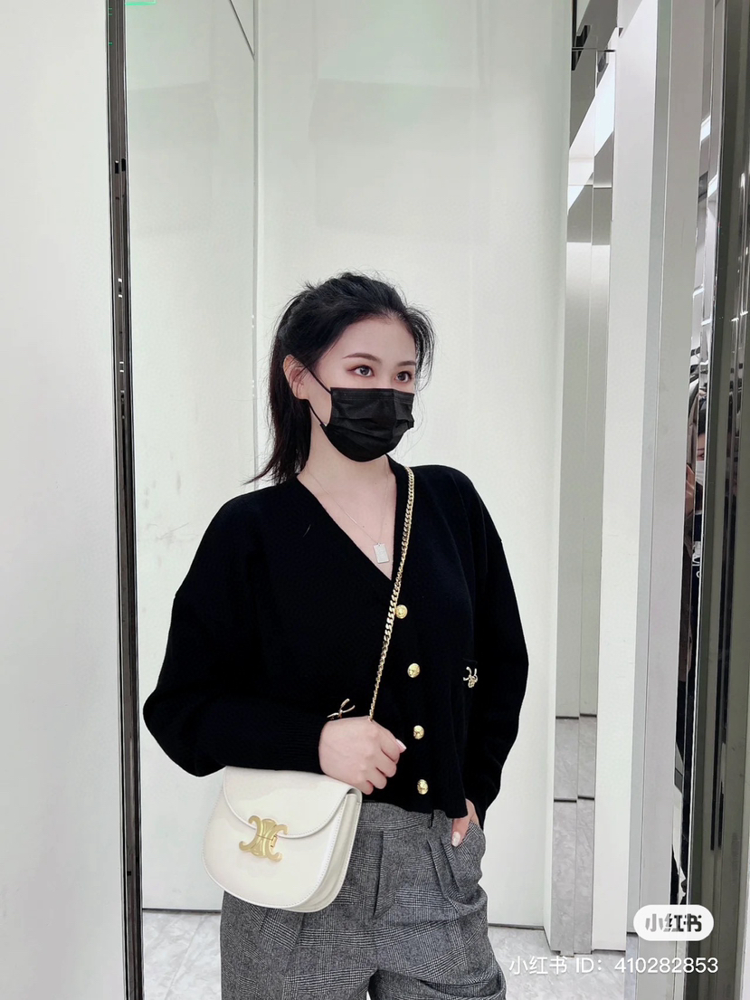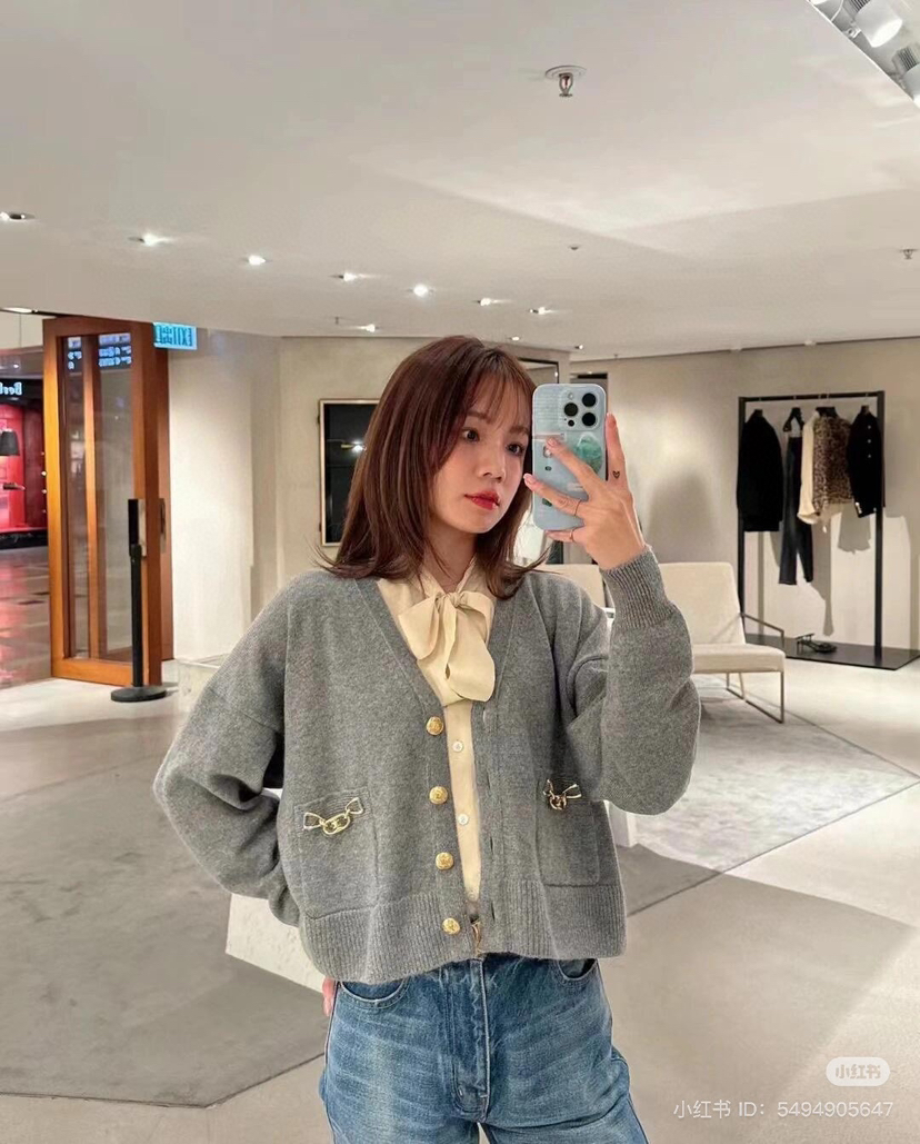 114-1独家圆正 阿娇同款 ce凯旋门金扣 客供山羊绒 重磅针织开衫