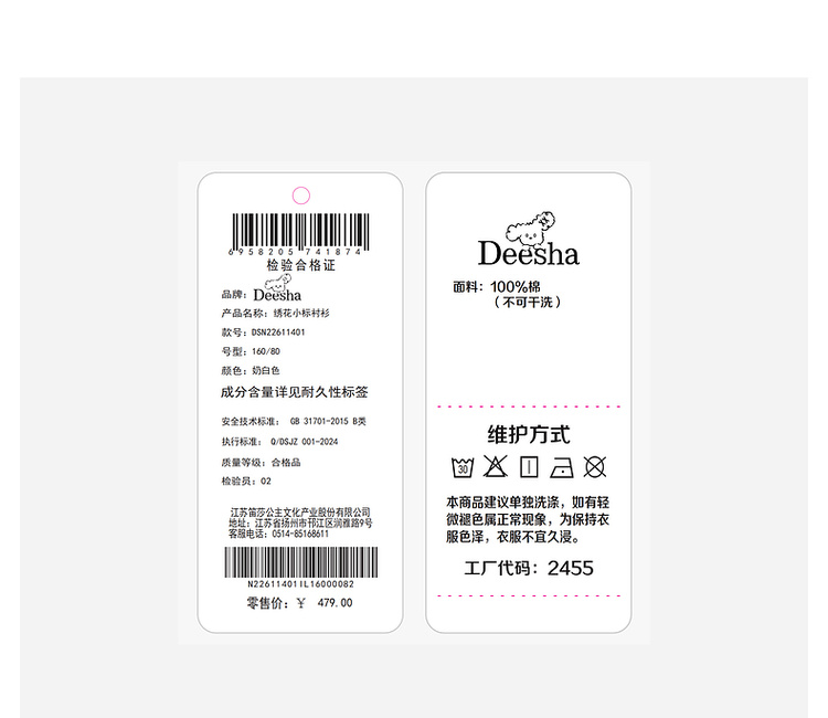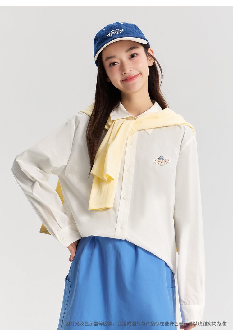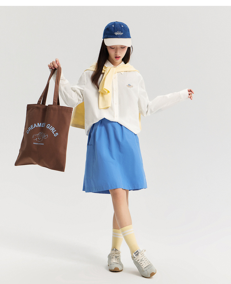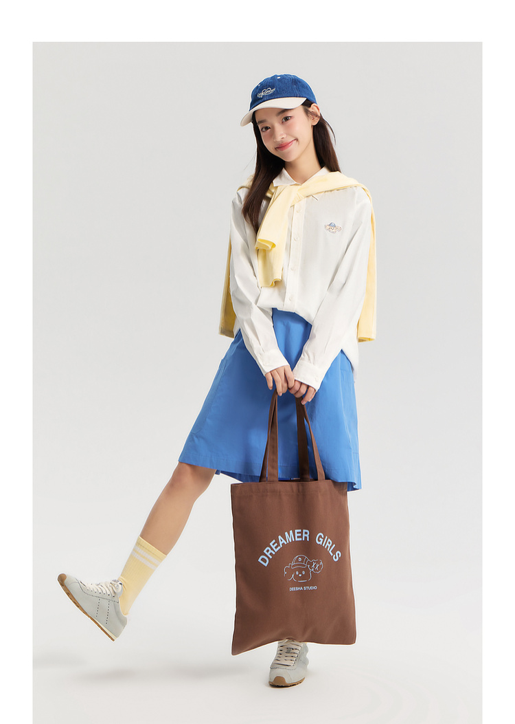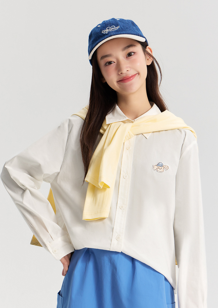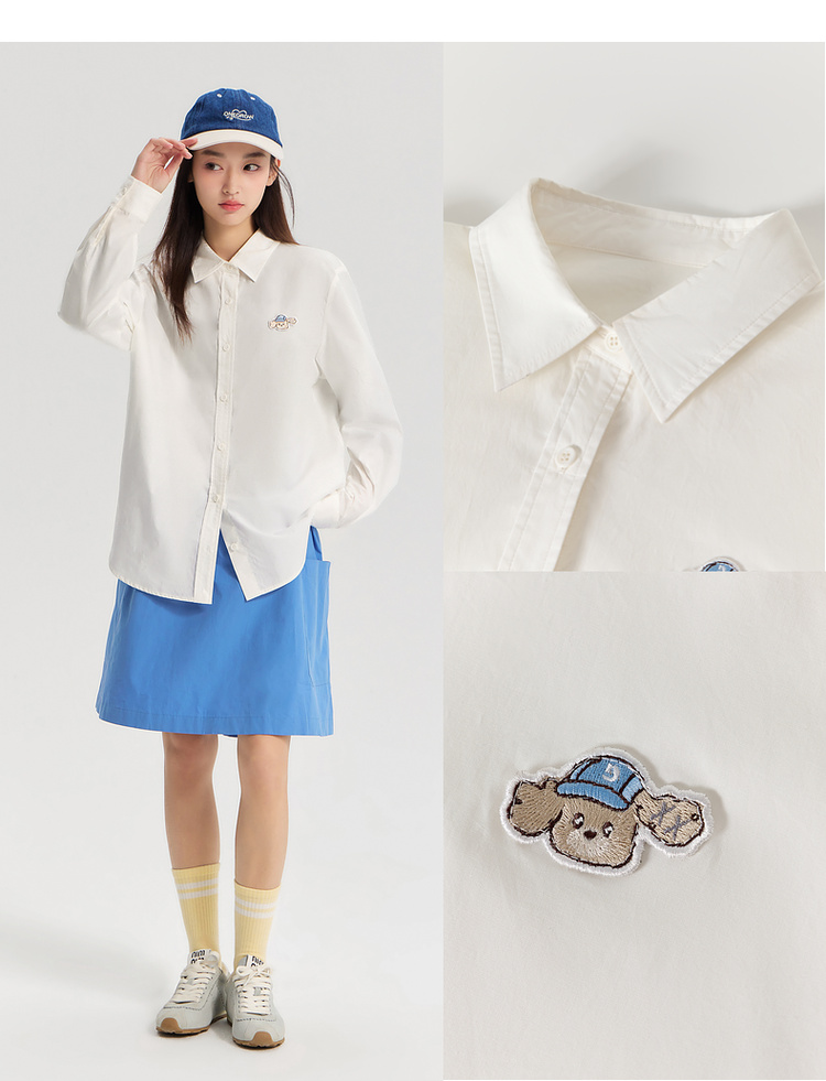 笛莎Deesha青少年女童衬衫2026春季女童百搭趣味小狗标棉布衬衫
