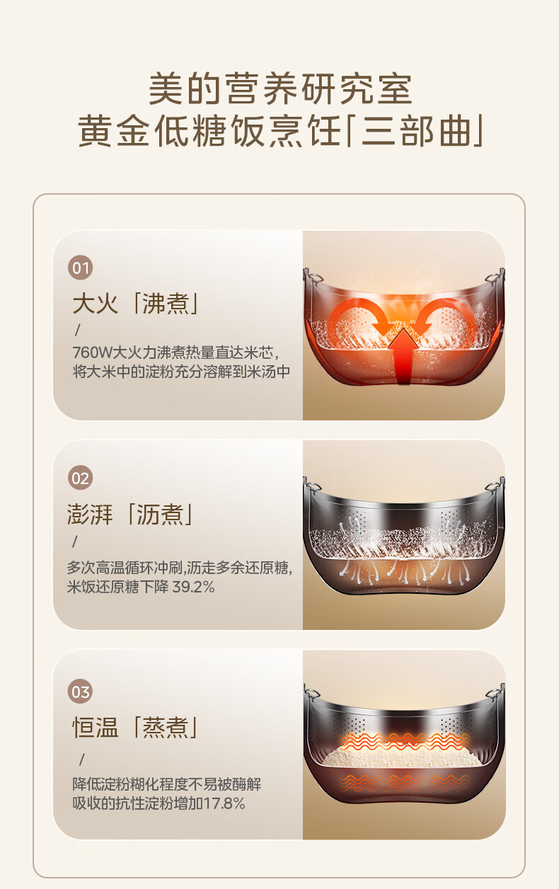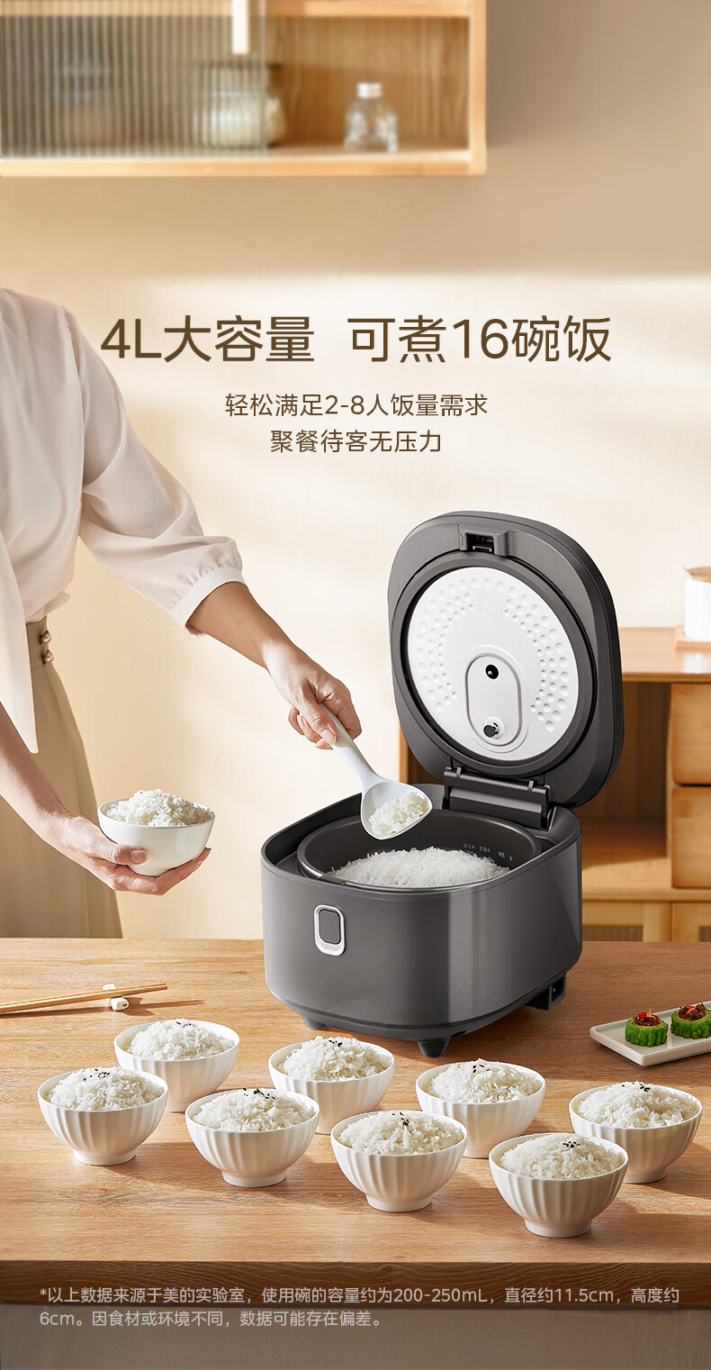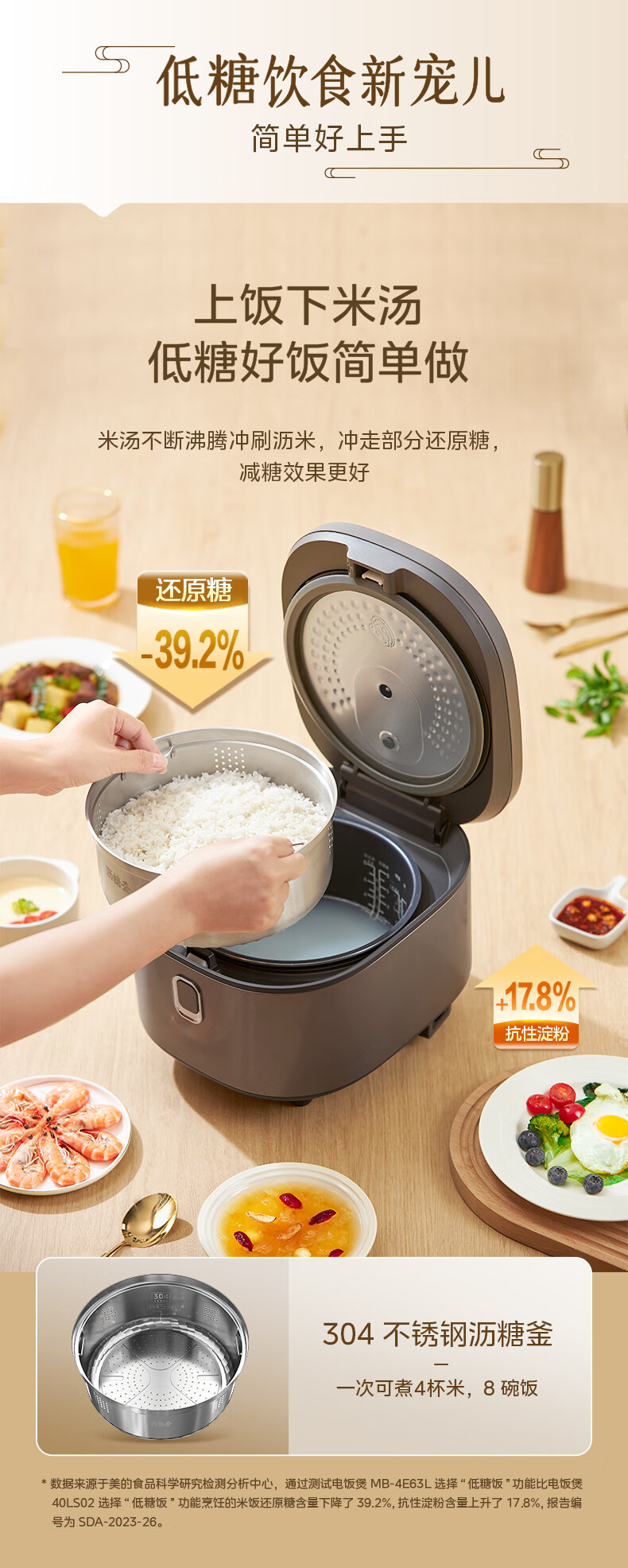 美的低糖电饭煲4L大容量 米汤分离电饭锅 沥米饭多功能降还原糖 健康养生蒸米饭锅家用3-4-5-8个人 【新款】降低还原糖约39.2% 4L