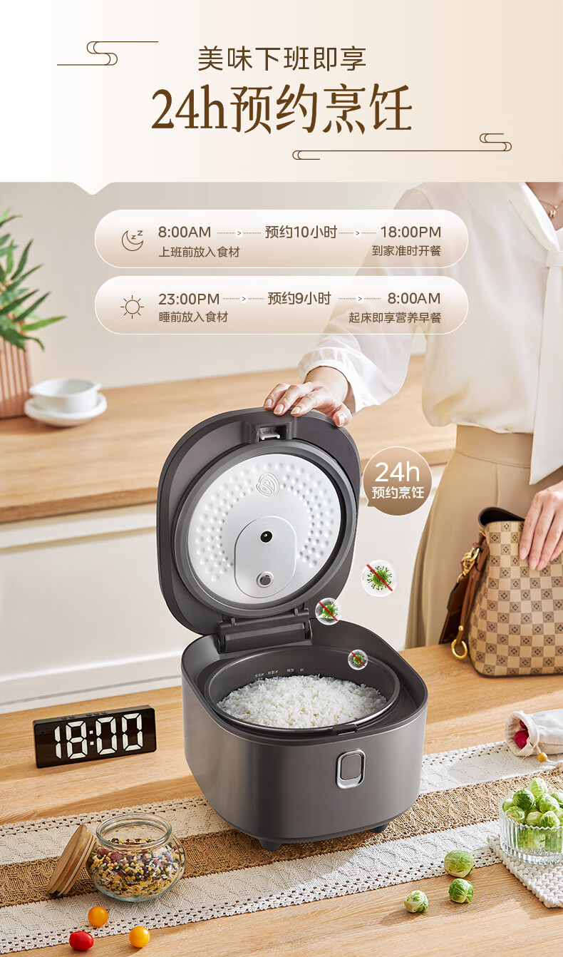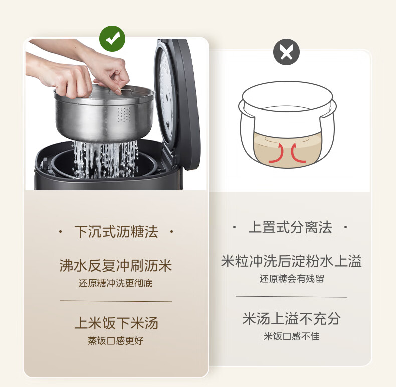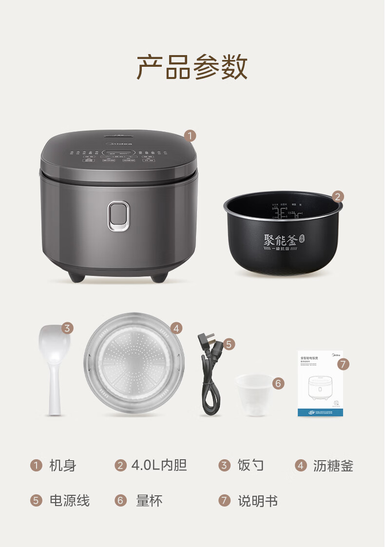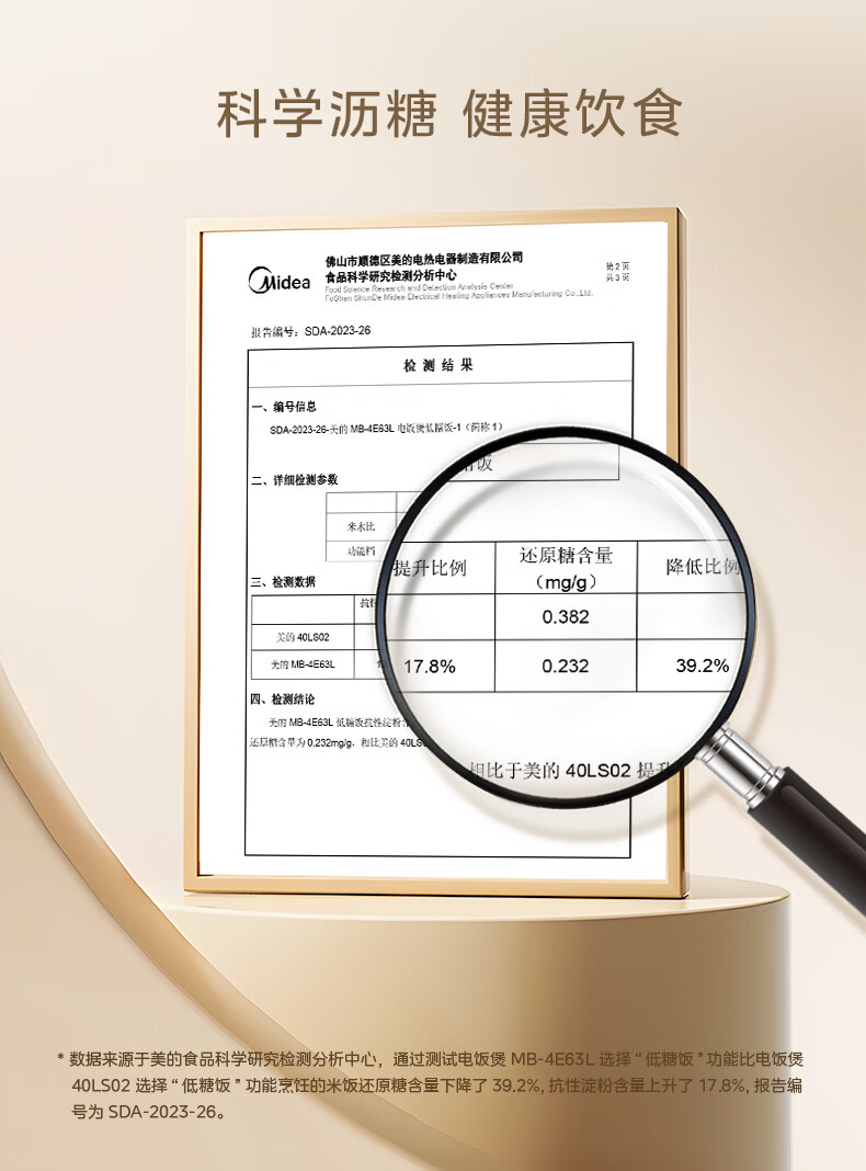 美的低糖电饭煲4L大容量 米汤分离电饭锅 沥米饭多功能降还原糖 健康养生蒸米饭锅家用3-4-5-8个人 【新款】降低还原糖约39.2% 4L