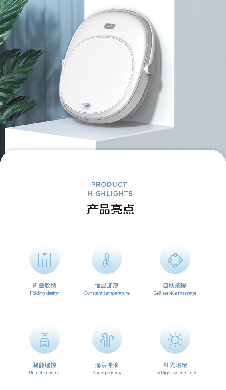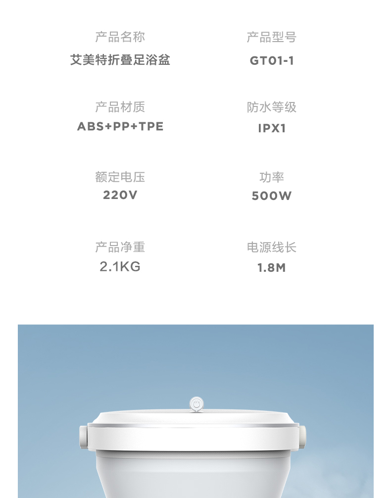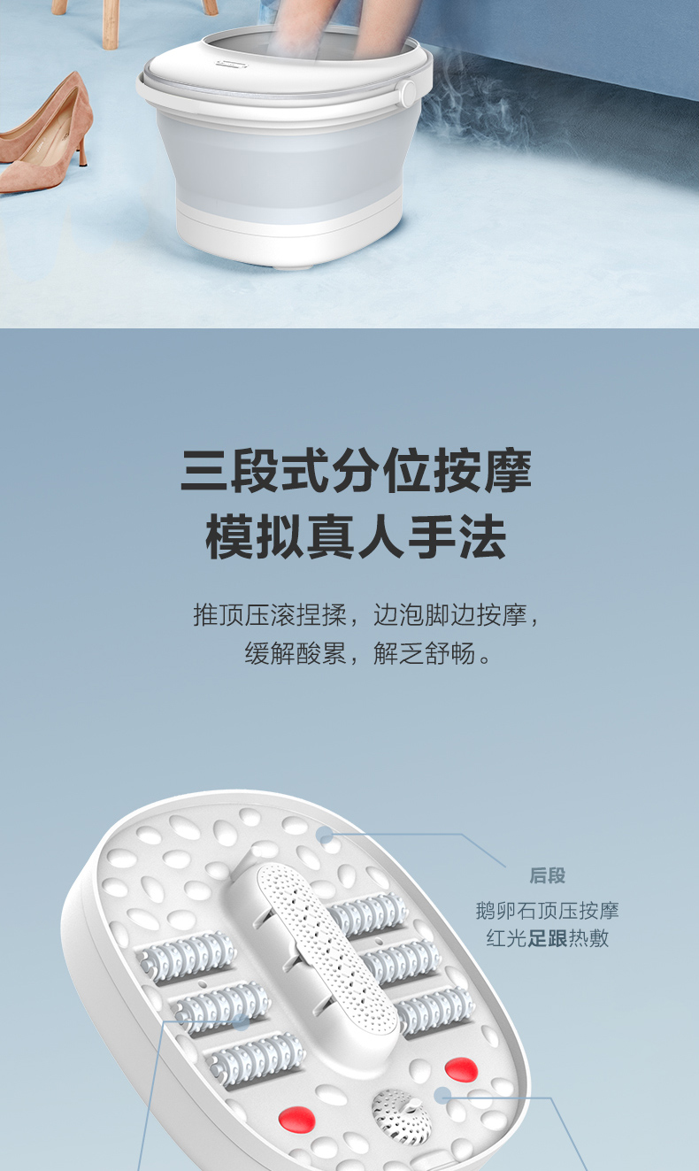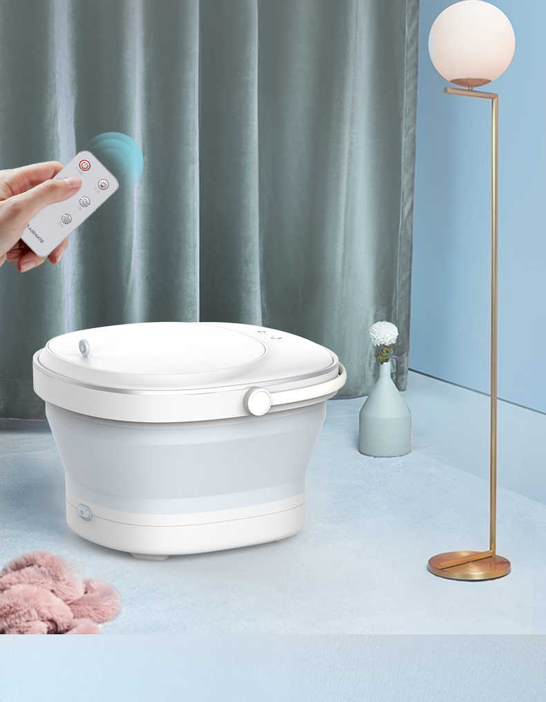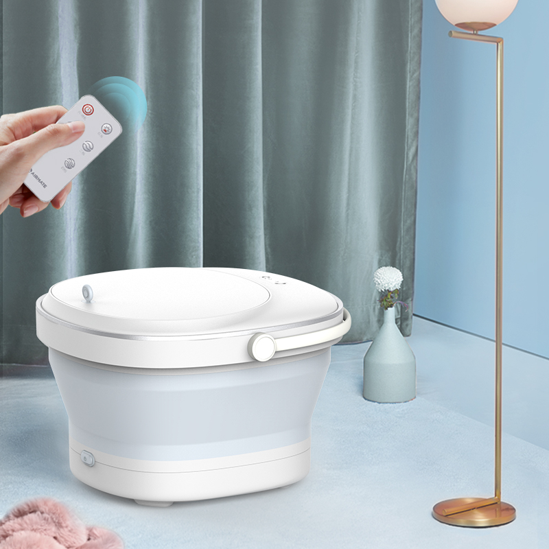 72小时发货【折叠足浴盆】艾美特品牌,泡走身体的小情绪~主打好收纳,自带红光暖足和涌泉冲浪感,红光也利于足浴包发挥效果!净重2.1kg,电源线长1.8m,配遥控器,折叠后厚度16厘米