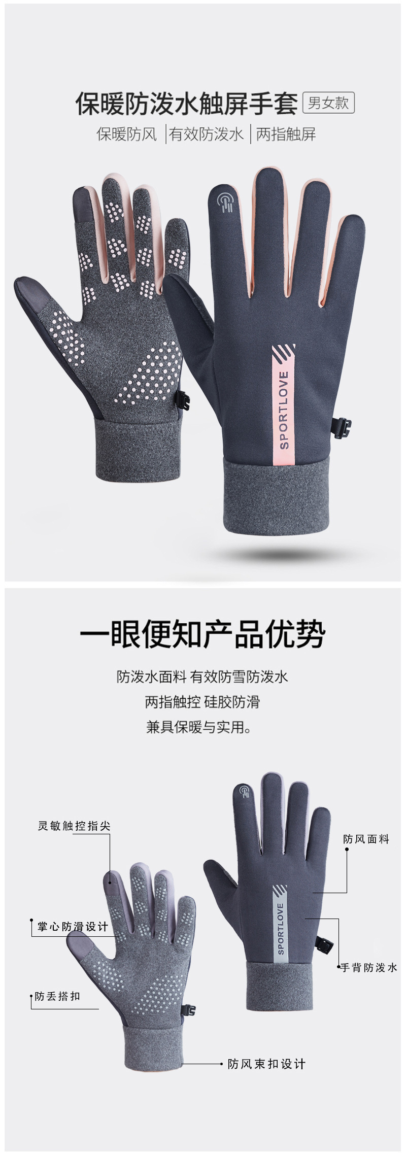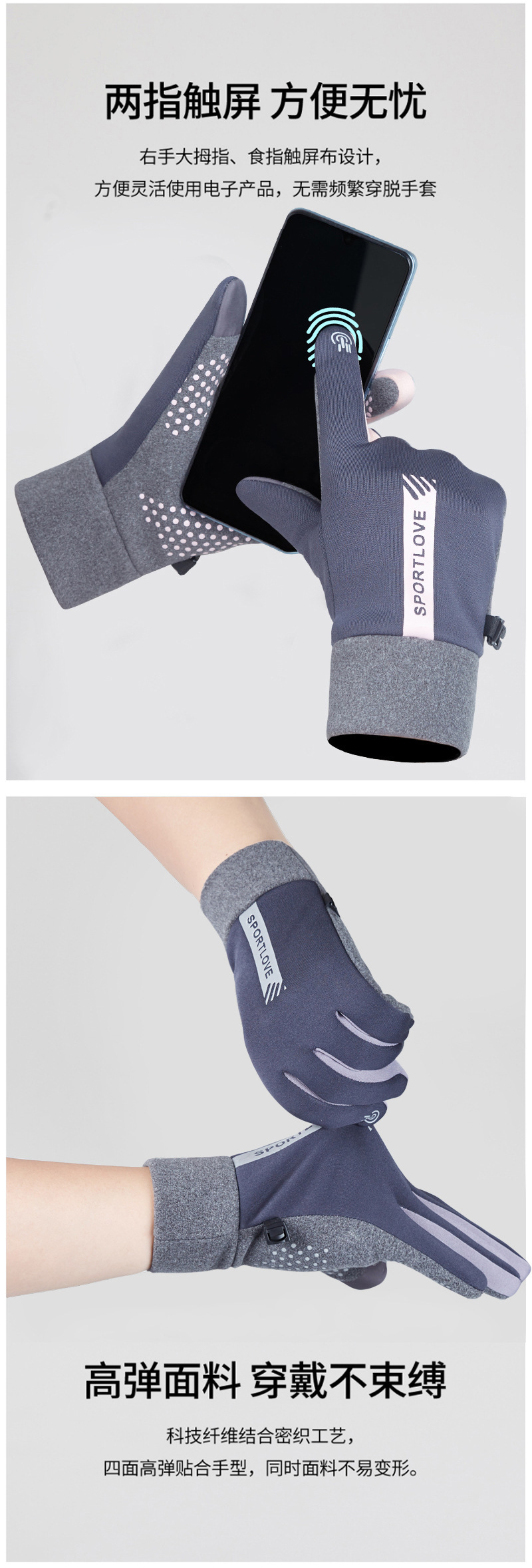 戴佳韵/男女冬季加绒加厚防风可触屏手套