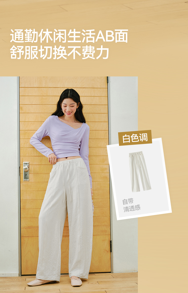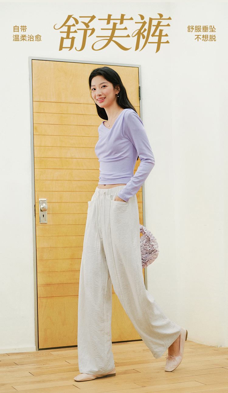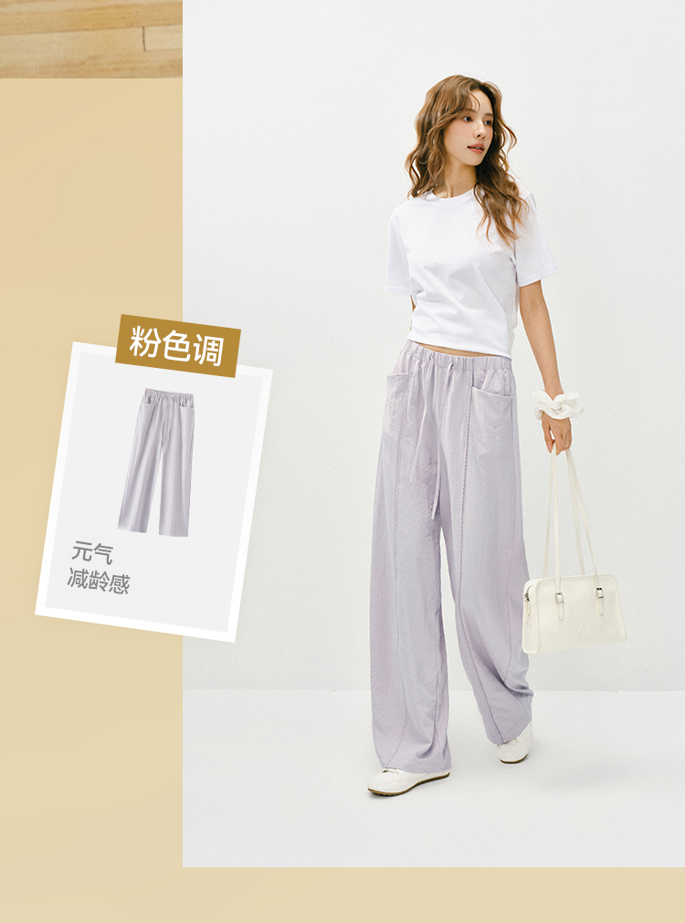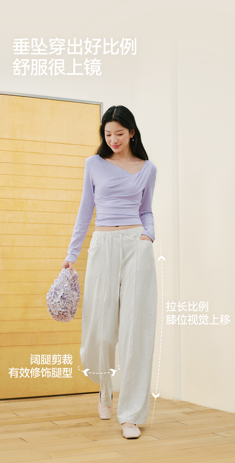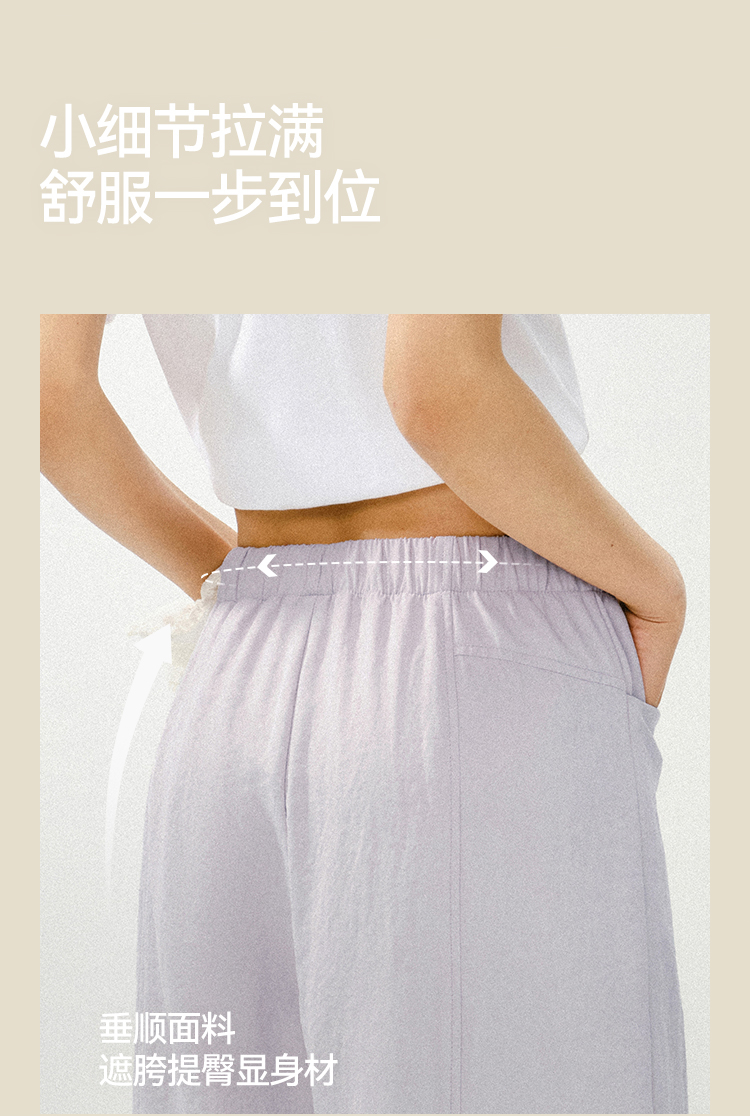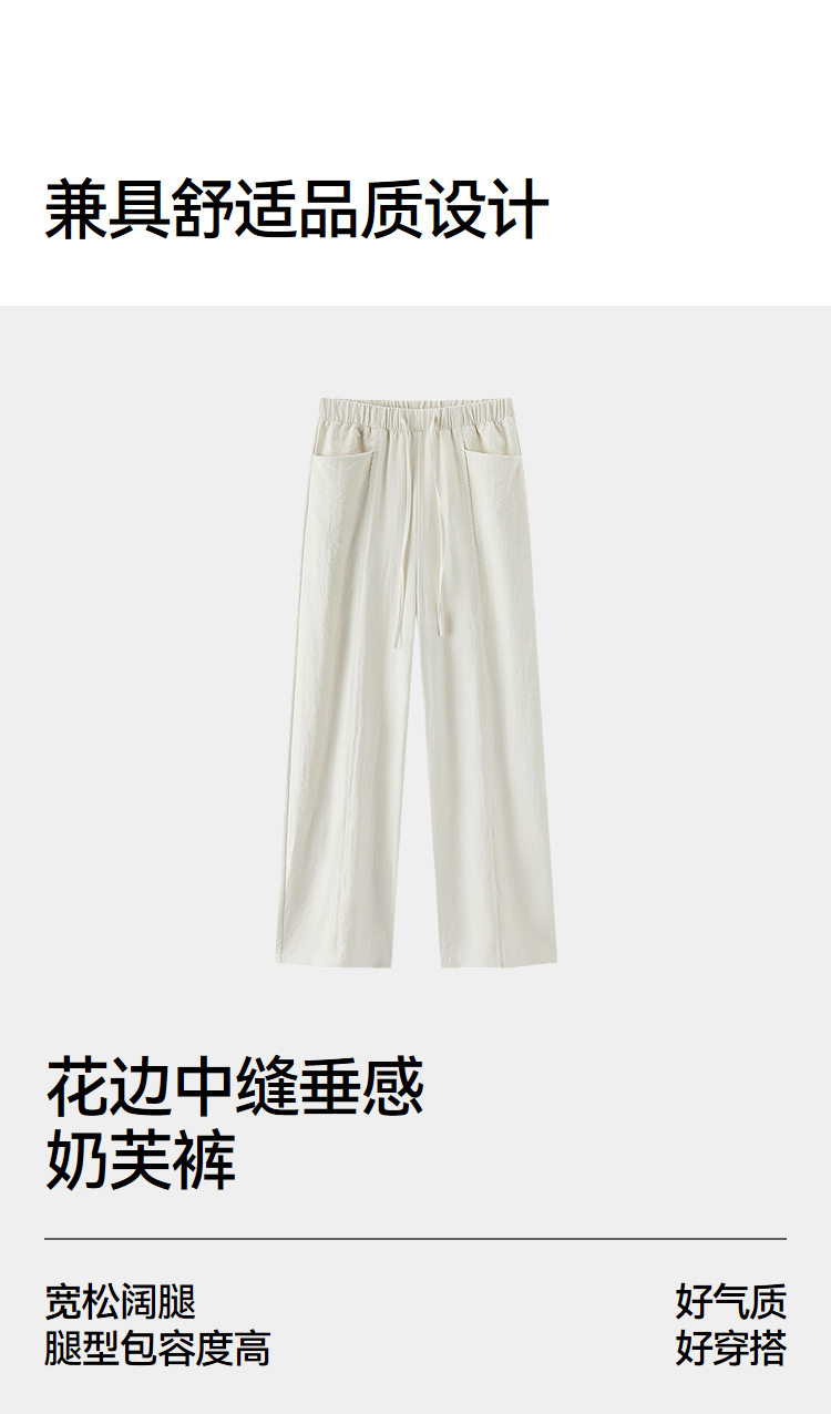 森马休闲裤女春季花边中缝肌理垂感宽松阔腿裤2026新款气质奶芙裤