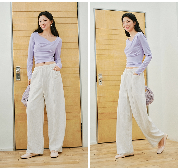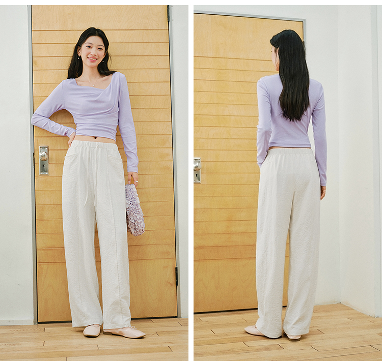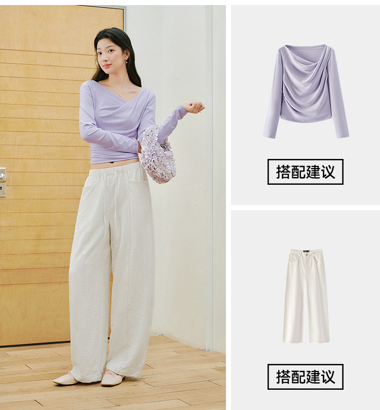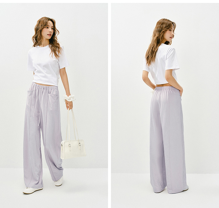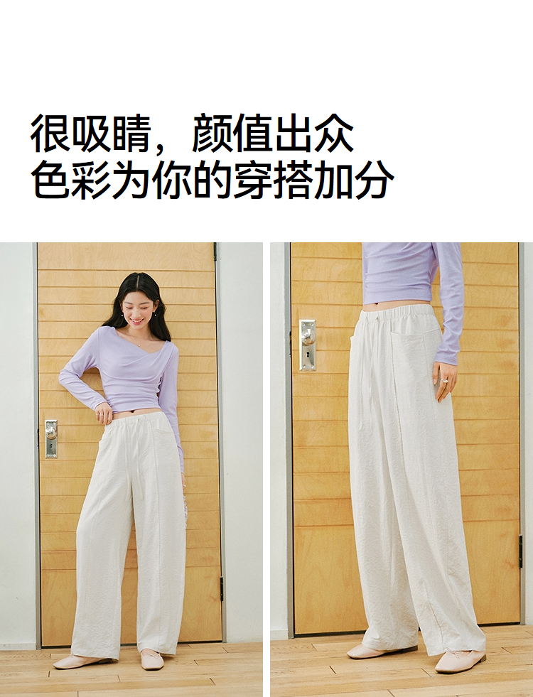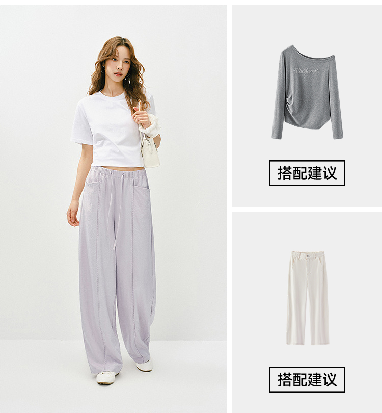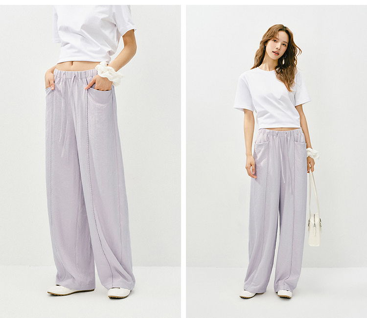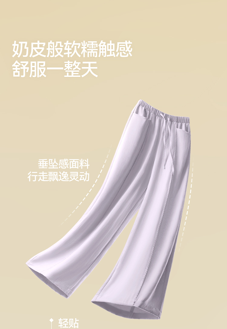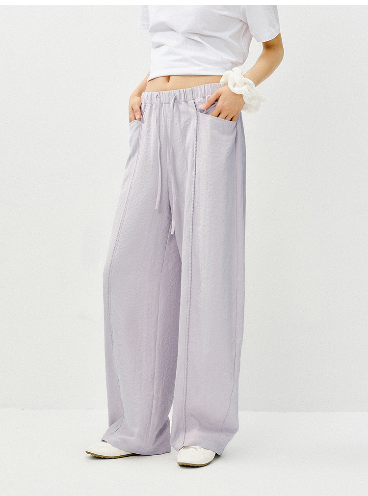 森马休闲裤女春季花边中缝肌理垂感宽松阔腿裤2026新款气质奶芙裤