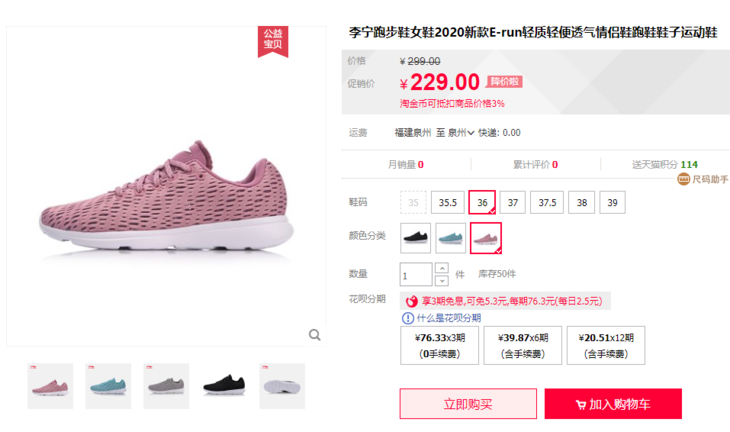 【商品名称】李宁网眼鞋面透气跑鞋