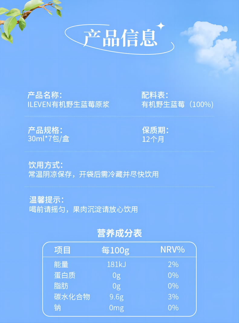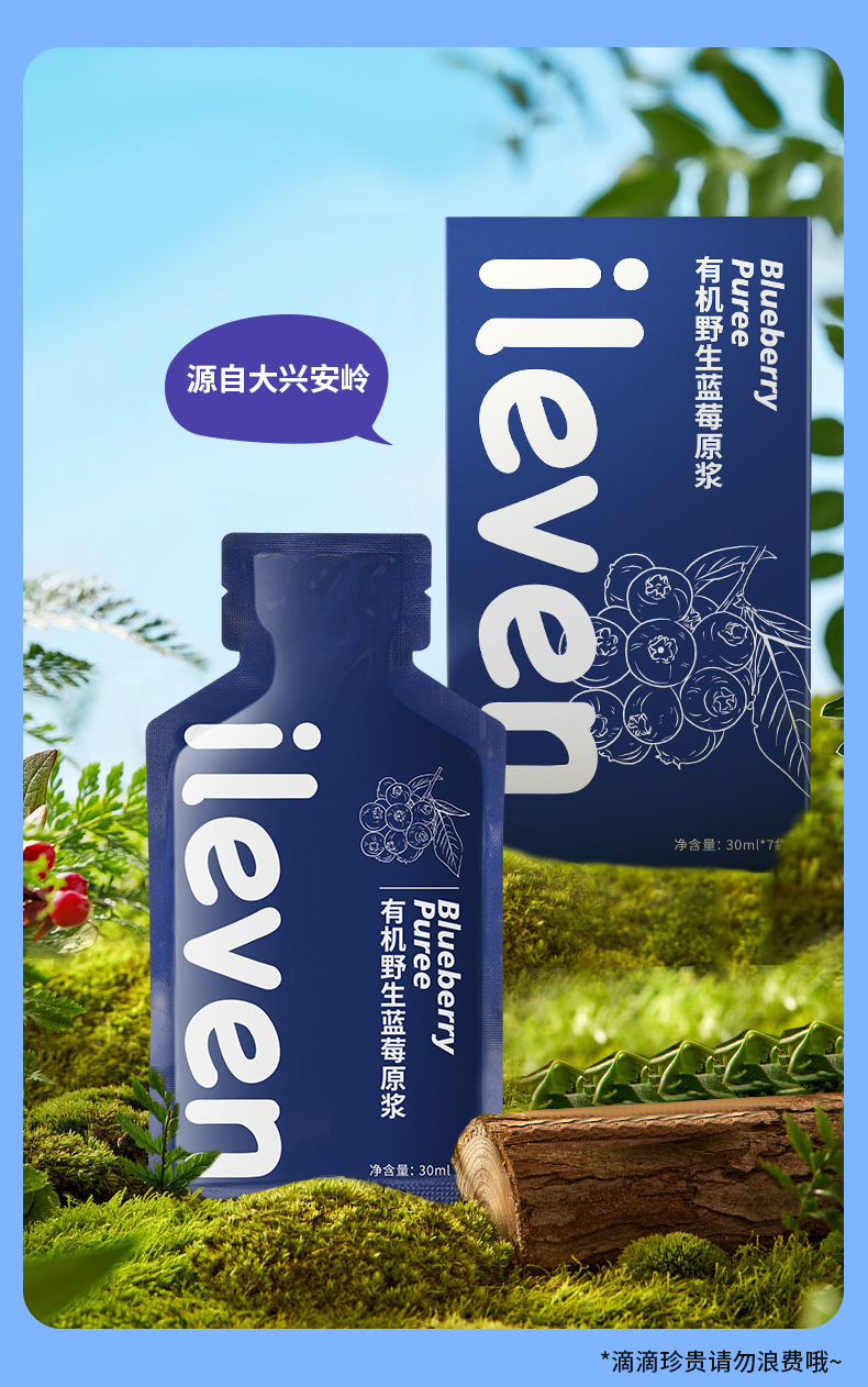 ⁴【大兴安岭野生蓝莓(越橘)原浆】1袋≈60粒新鲜野生蓝莓 30ml*7袋/盒 YC04-CRMM-YKSC