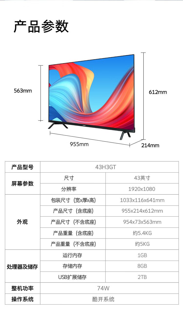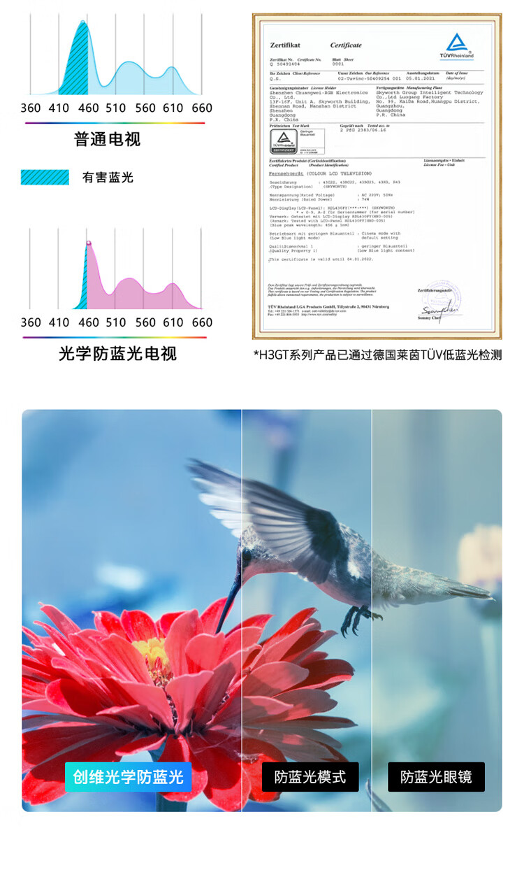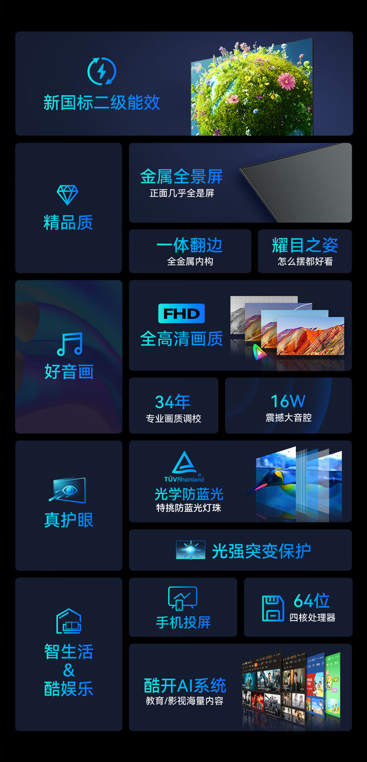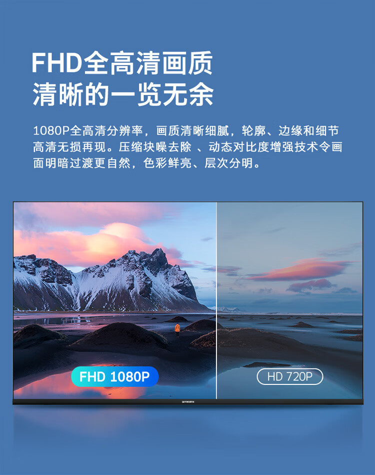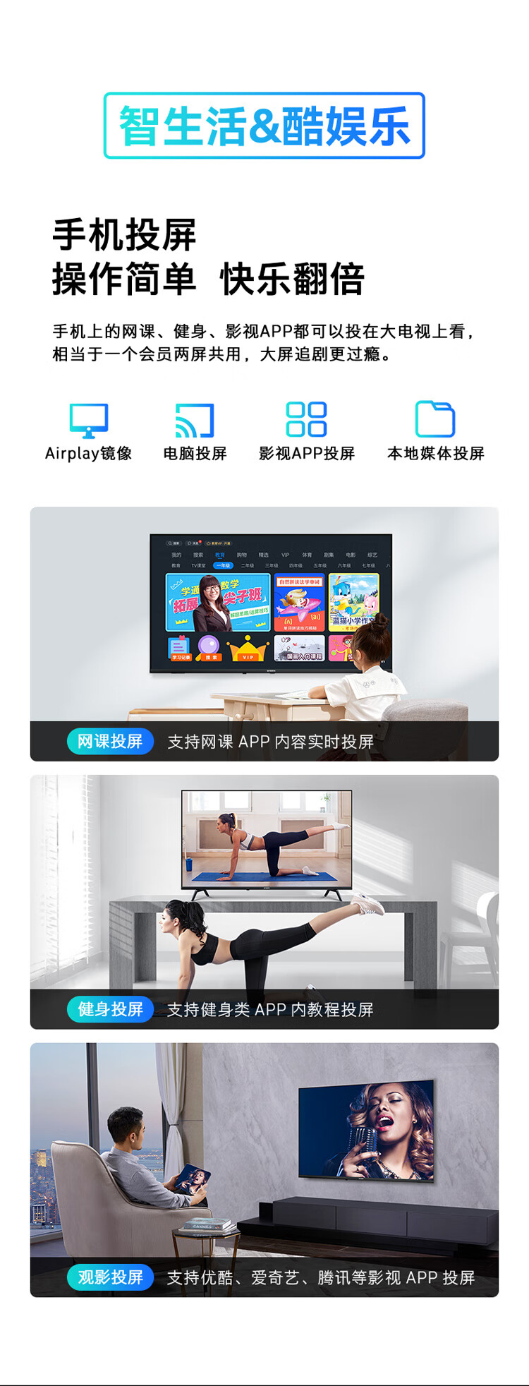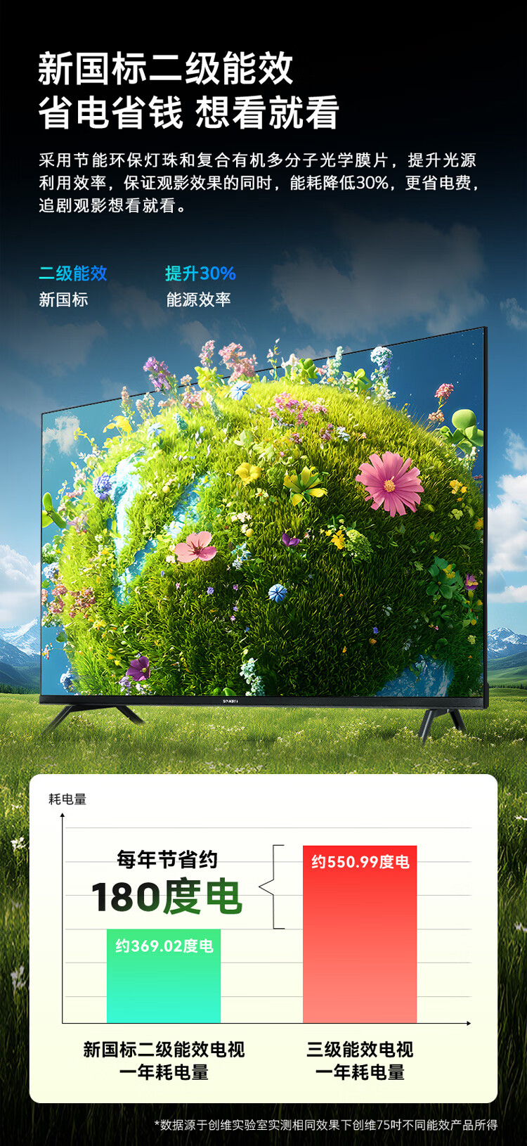 创维 43寸 新国标二级 金属全景屏 光学防蓝光 手机投屏 43H3GT