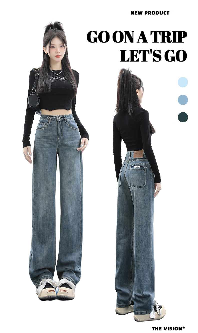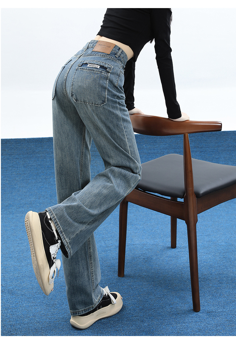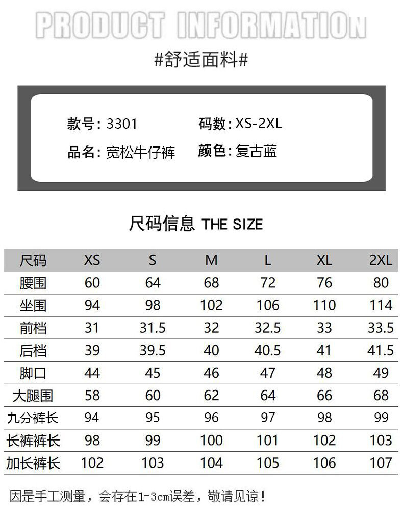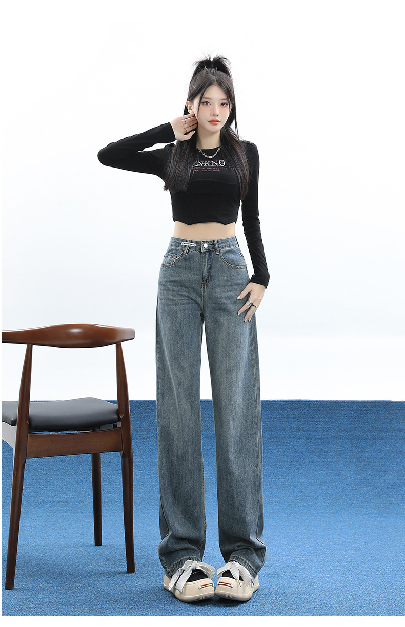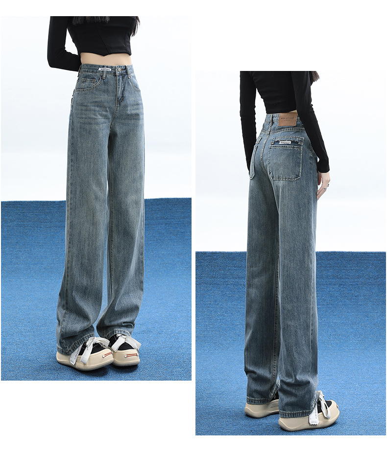 【2023秋冬窄版宽松高街阔腿直筒裤】加绒蓝色阔腿牛仔裤 三种长度 满足不同身高