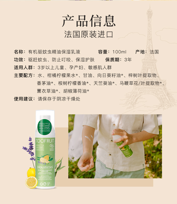 ³【法国多果肤可以驱蚊的儿童保湿乳液100ml】有机物理植萃 可用于面部 XN03-CRMM-BA