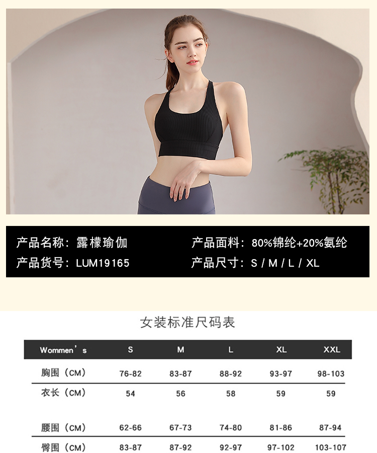 LUM19165露檬新款瑜伽背心运动BRA(含胸垫)