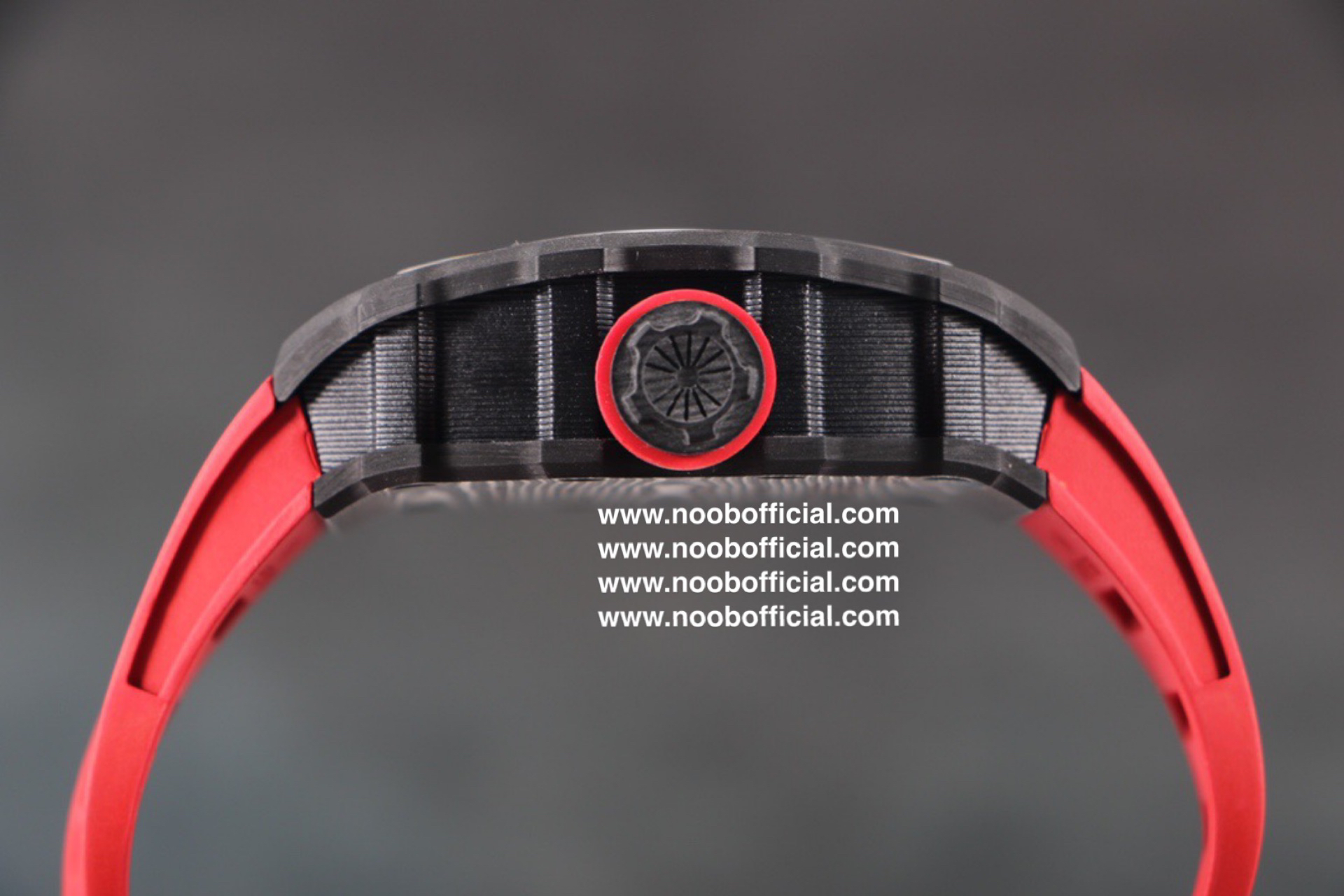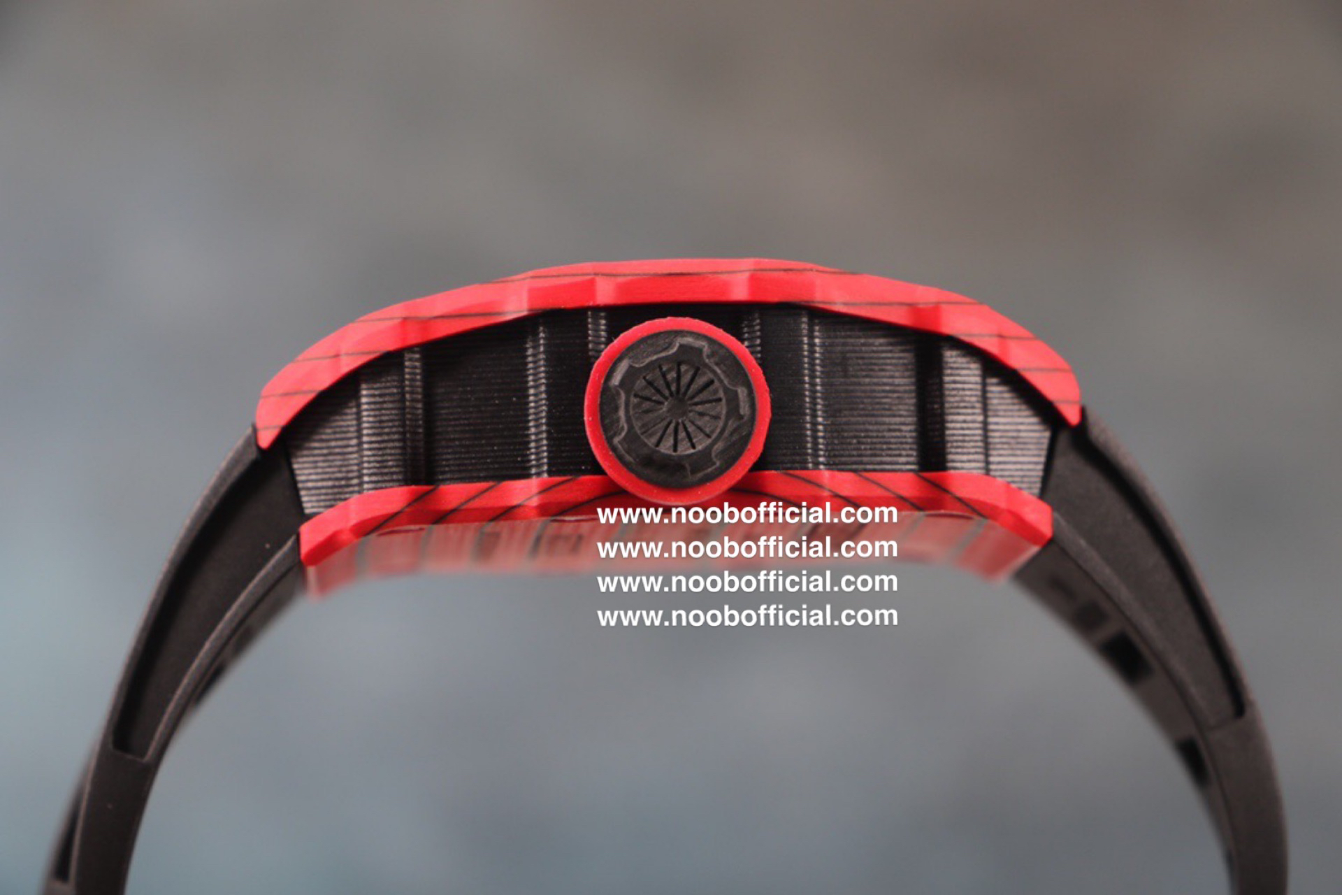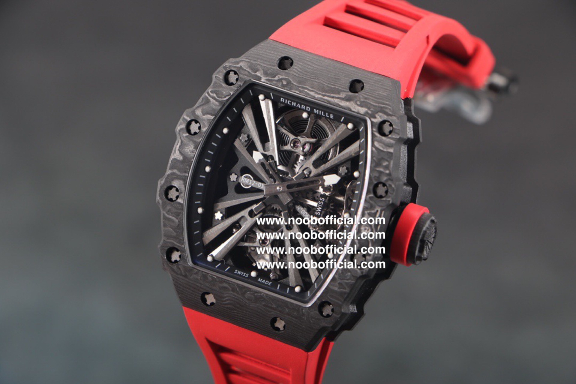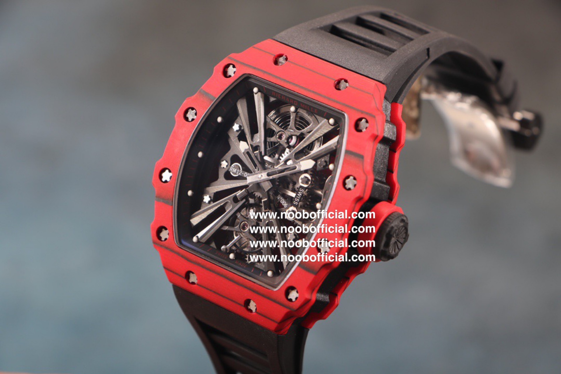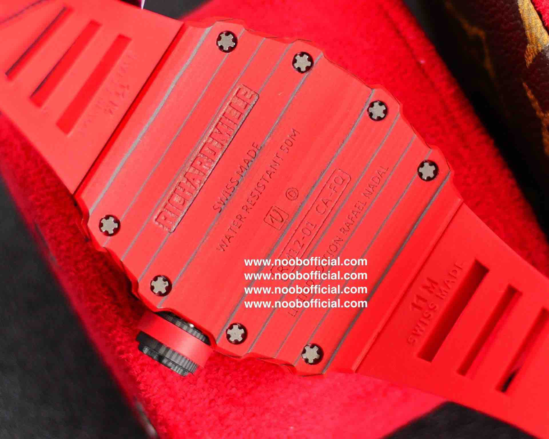 【RICHARD MILLE】理查德 RM12-01NTPT真陀飞轮 非凡运动镂空流线型手表,机芯手动上链机芯,机芯桥板融入赛车底盘的灵感元素,镂空基板以4枚钛合金桥板固定,直接呈现机芯的运动,两支指针搭配与表壳相近的颜色,陀飞轮位于6点。表壳有多种不同的配色版本,有纯黑碳纤维、红色石英纤维、白色石英纤维。表带可挑选搭配橡胶表带与凡布面料表带。