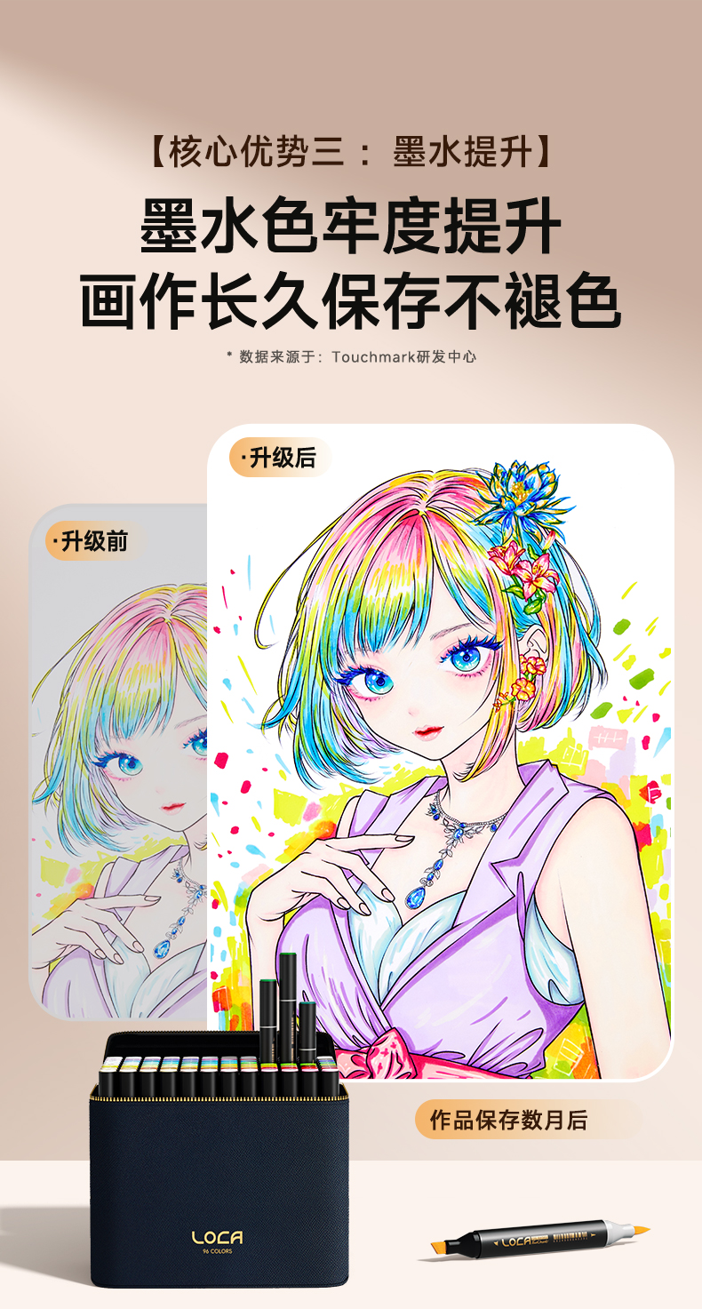 Touchmark-loca软头油性马克笔专业级配色大软头双头油性院校级马克笔