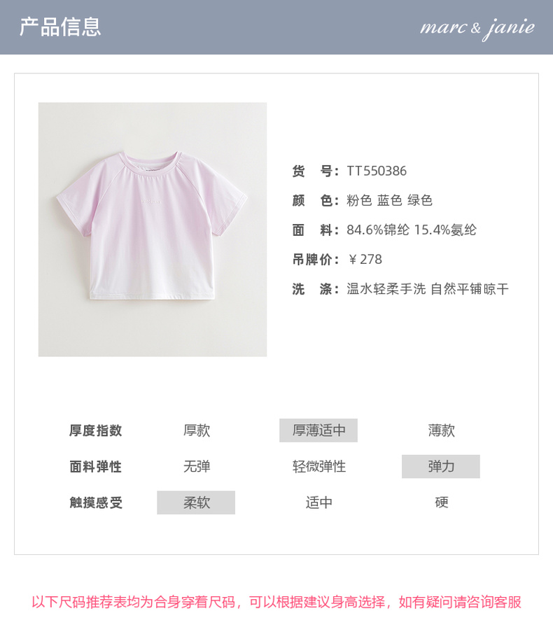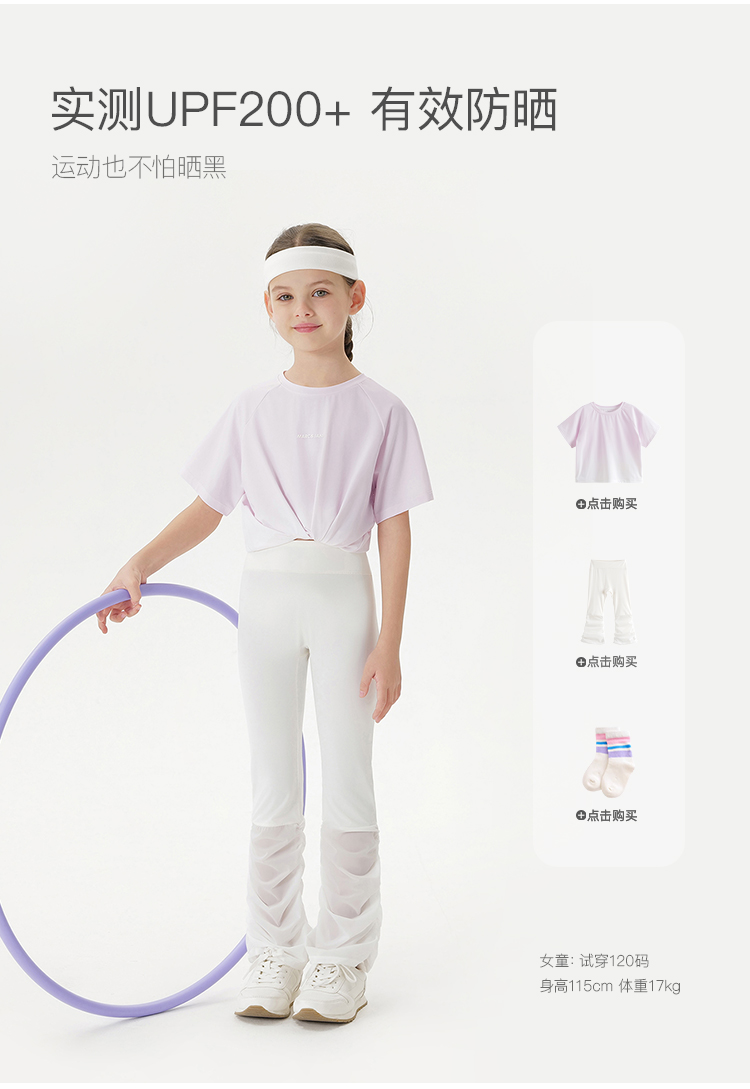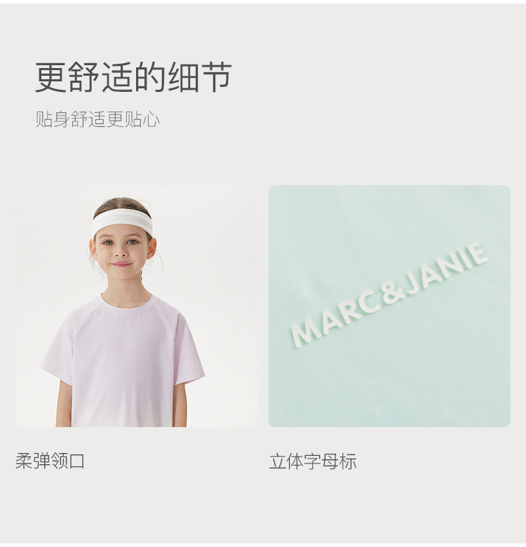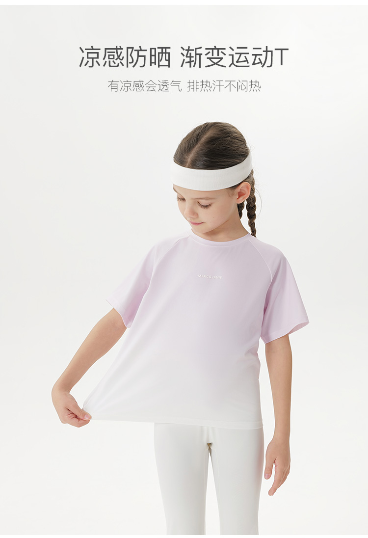 【凉感防晒】马克珍妮男女童渐变运动短袖T恤 儿童夏装新款550386