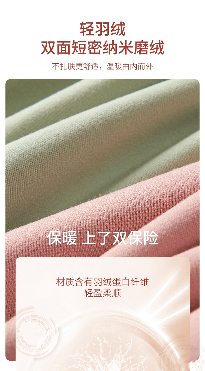 预售七天 【柠可芯-羽绒蛋白情侣保暖套装】轻盈柔顺 抗静电 减少皮脂屑,男士裆部采用360全景天窗透气舱,女士采用圆弧型人体科学舒适裆部&