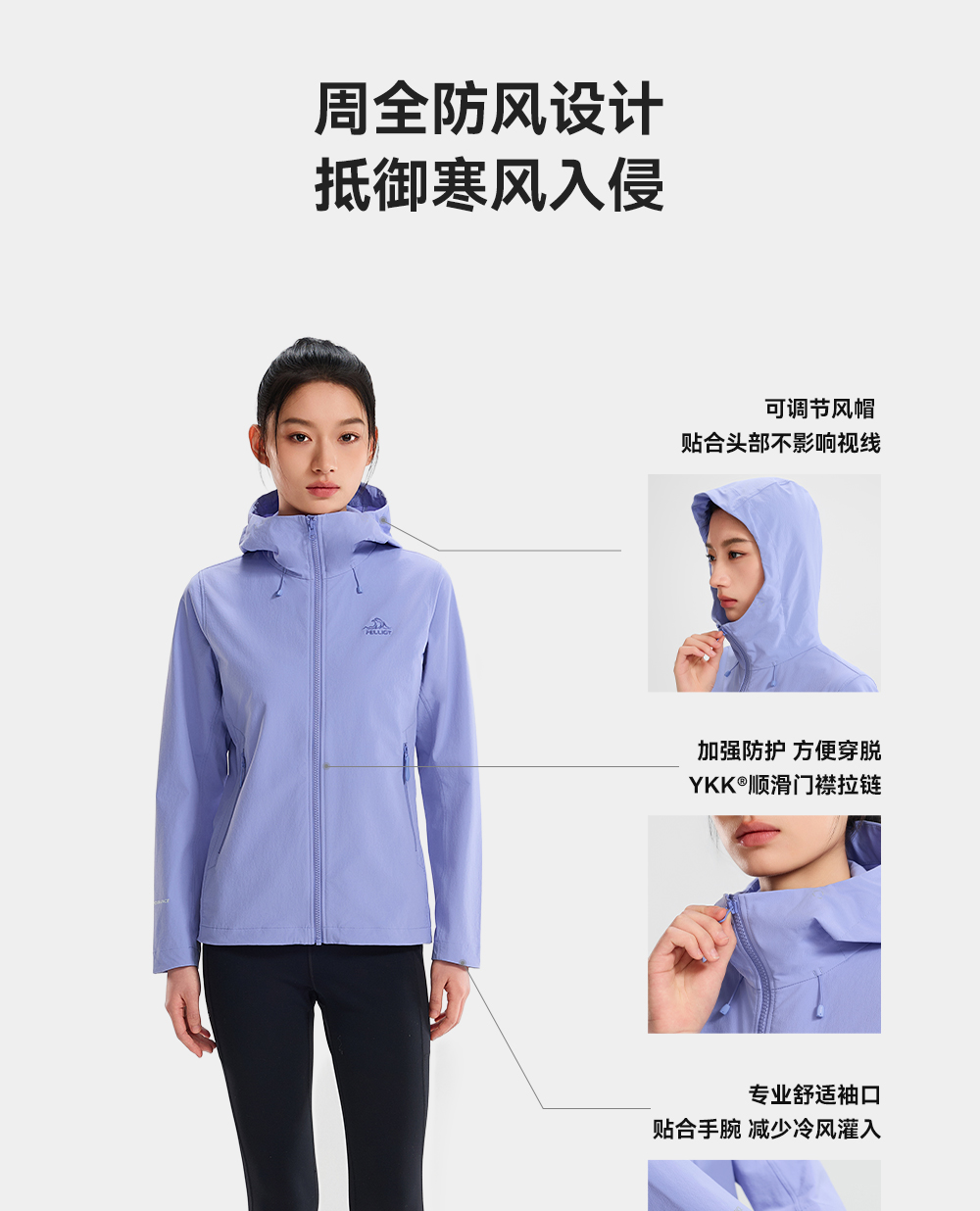 【风盾P26】伯希和户外软壳衣女新款CORDURA轻量耐磨防风徒步冲锋衣