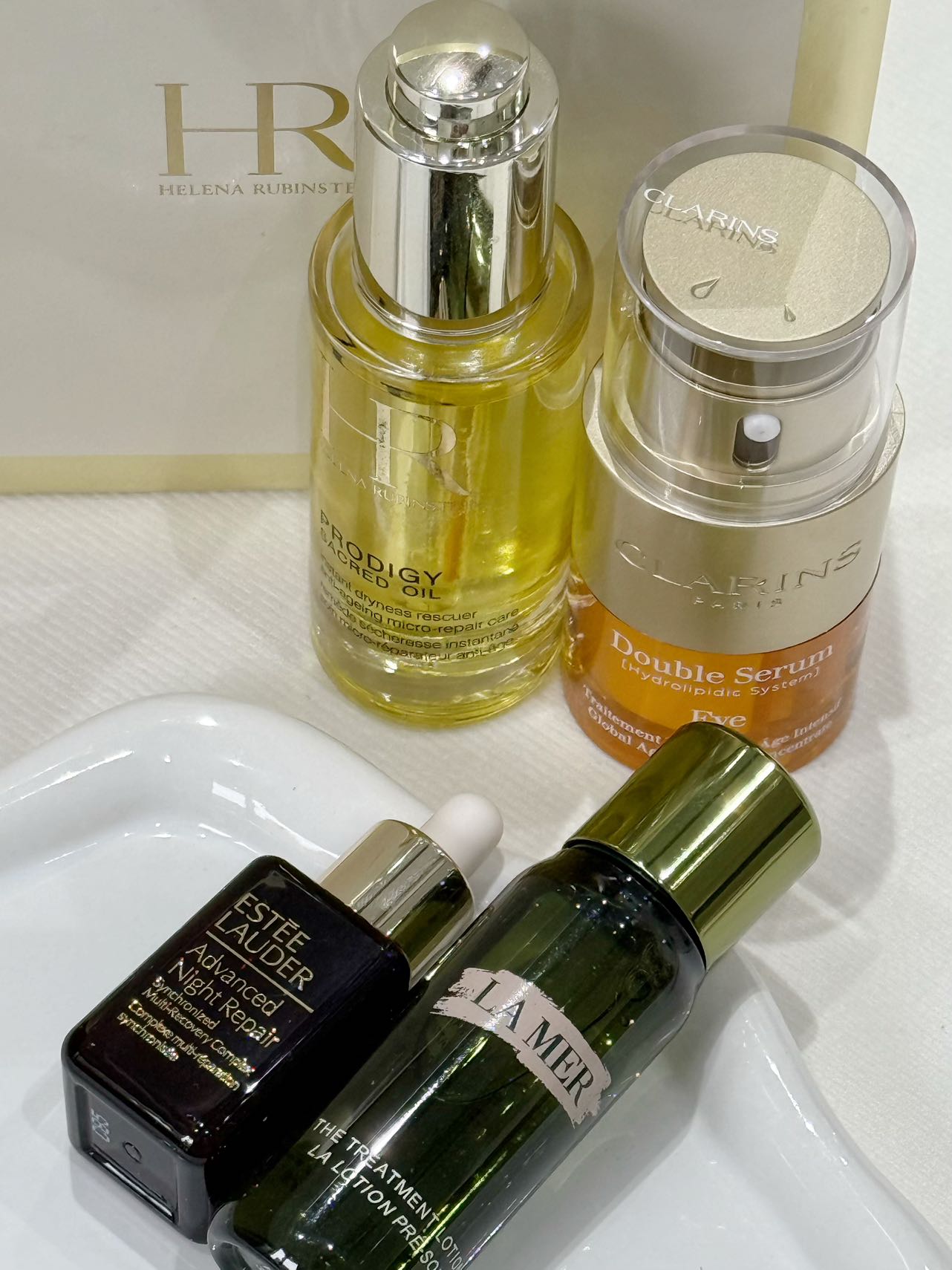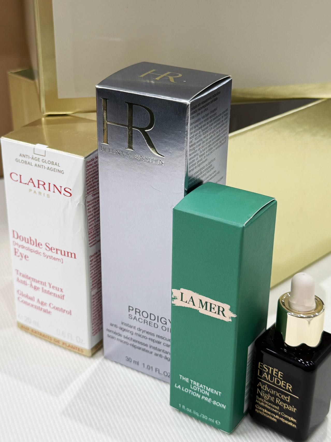 【香港仓】礼盒 赫莲娜金萃油30ml+海蓝之谜精粹水30ml+娇韵诗双萃眼部精华20ml+雅诗兰黛滴管小棕瓶15ml(效期到:2027年9月后)