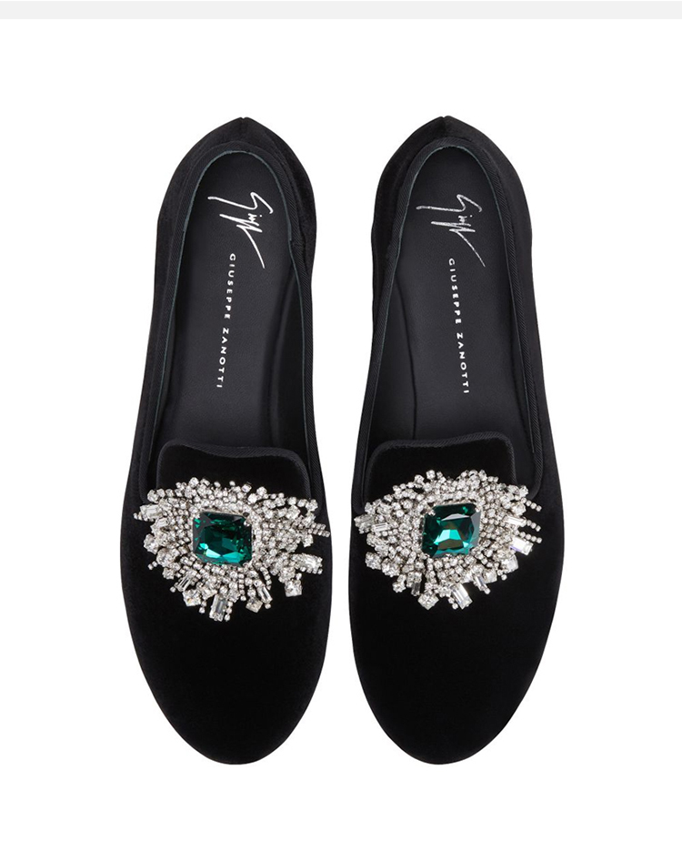 Giuseppe Zanotti 女士签名徽标镶钻乐福鞋 黑色 E460019001