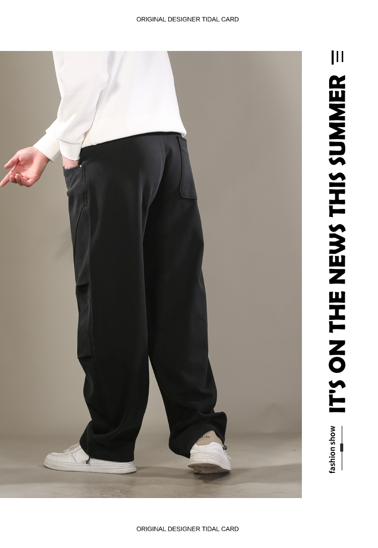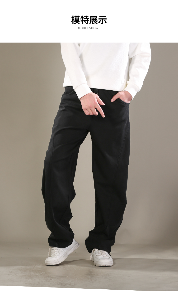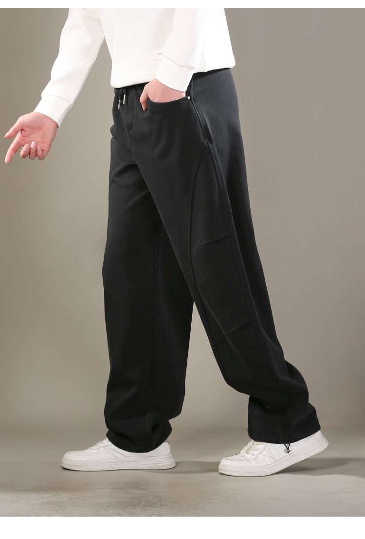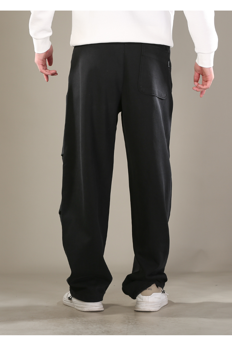 DRONKOO 2026 抽绳松紧腰前结构口袋同色钉扣喷色做旧中厚卫裤长裤
