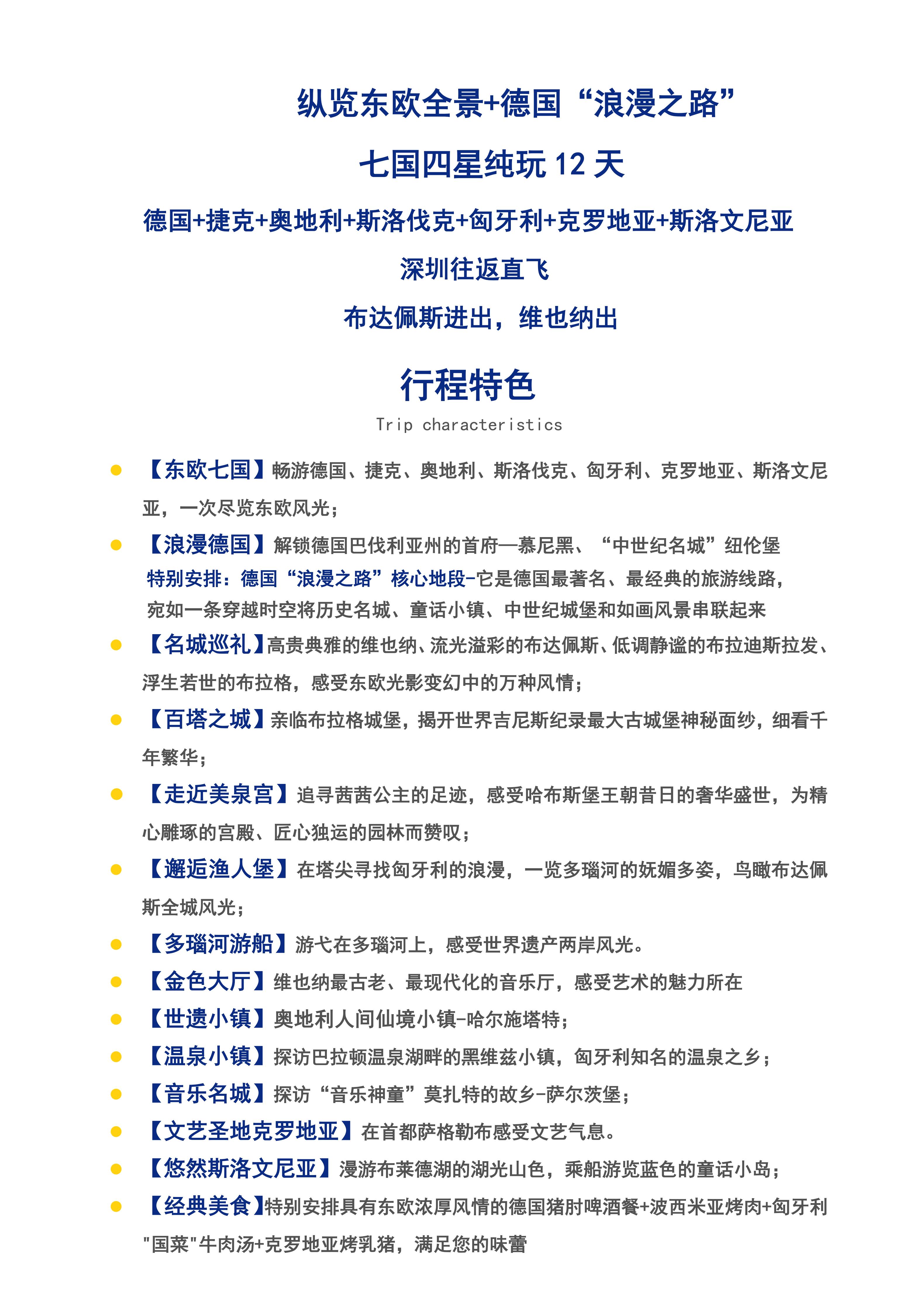 【春节、寒假】<东欧·德国+捷克+奥地利+斯洛伐克+匈牙利+克罗地亚+斯洛文尼亚七国纯玩12天>深圳往返直飞 布达佩斯进出,维也纳出