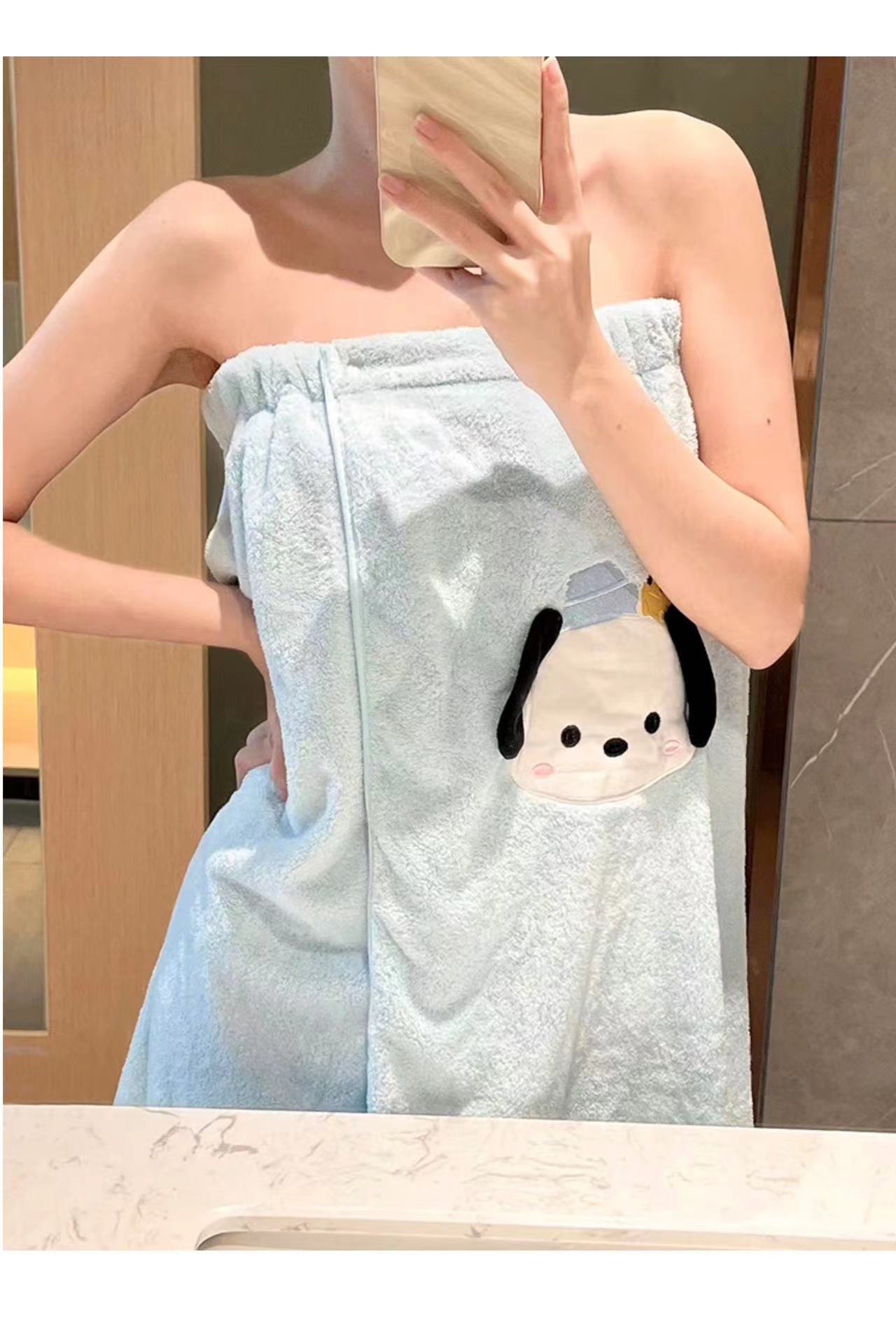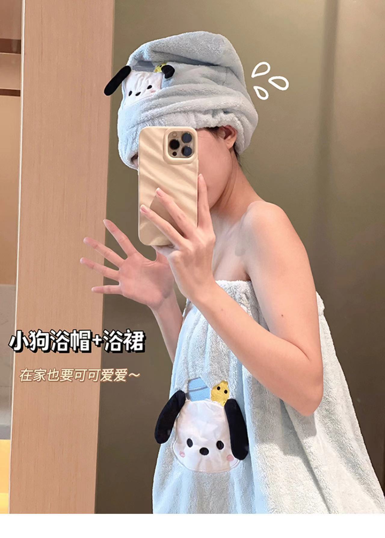 「ins风!珊瑚绒材质」优佳雅可爱帕恰狗浴裙 吸水浴巾女可穿可裹夏天游泳浴袍家居家布艺