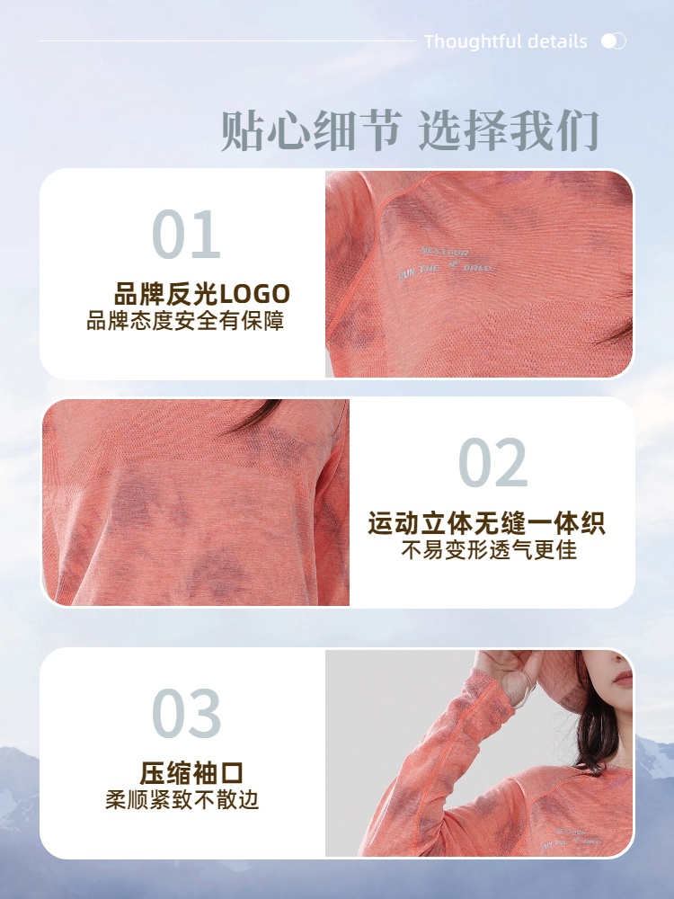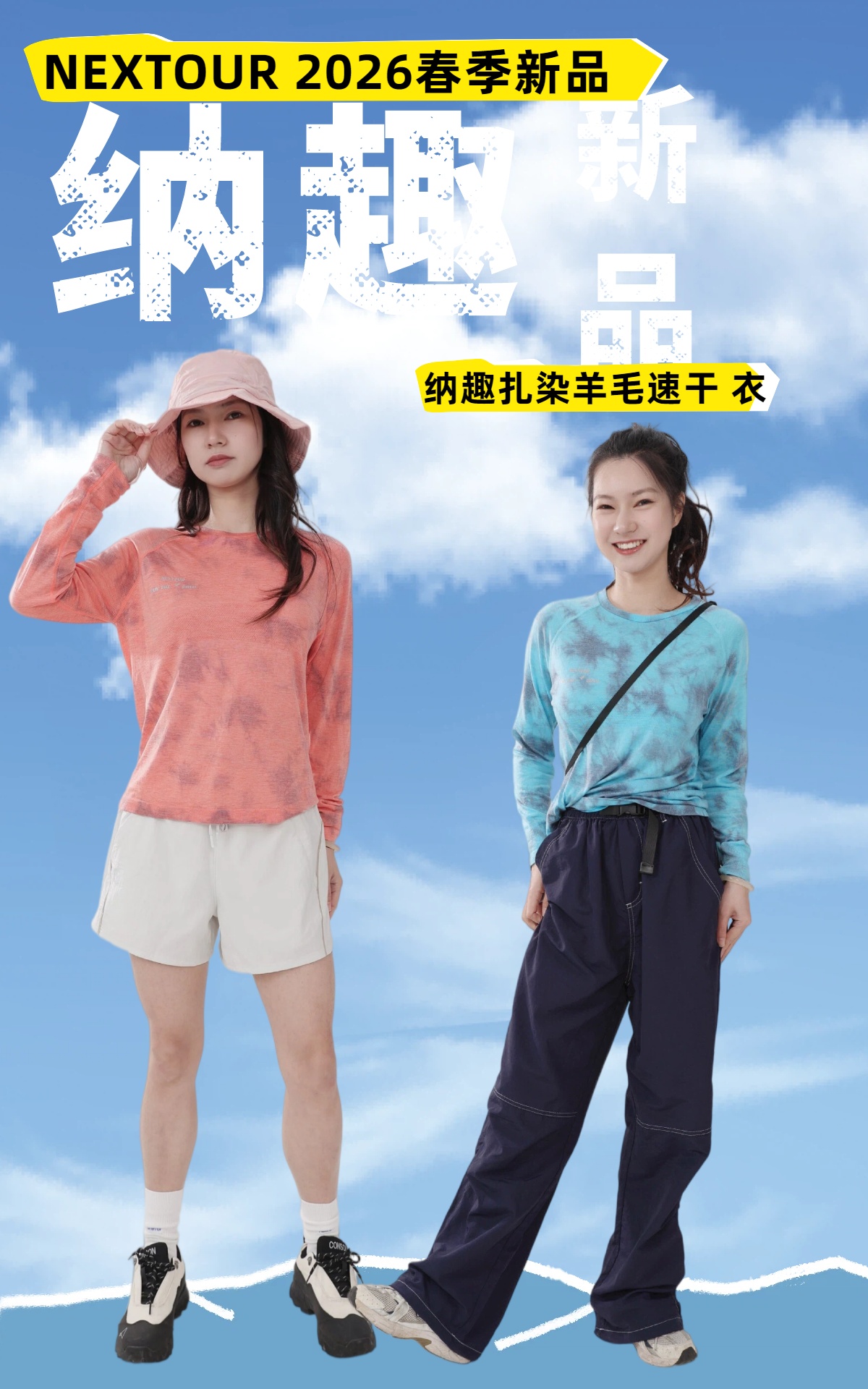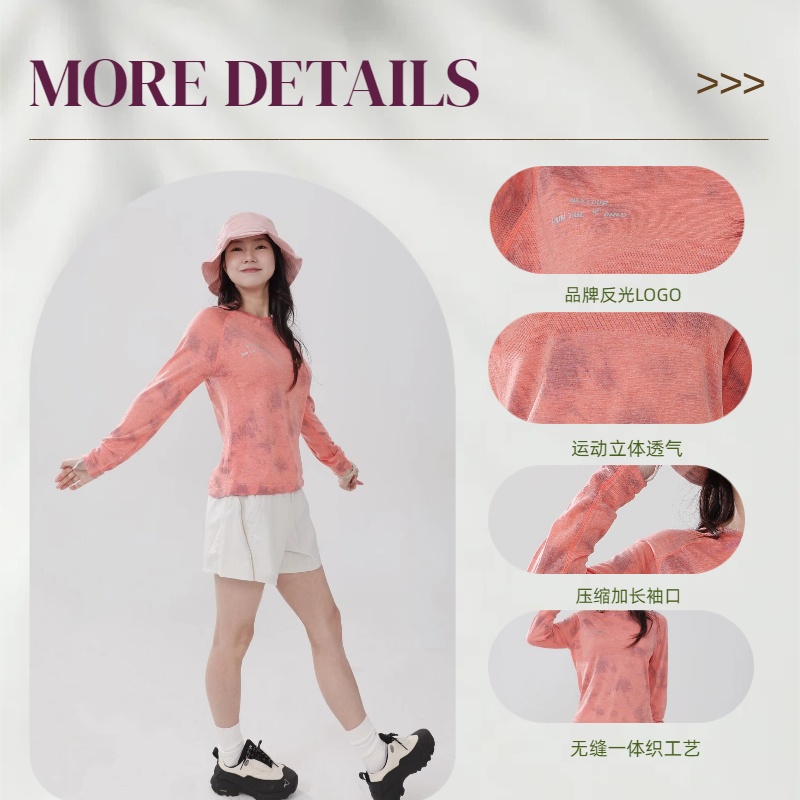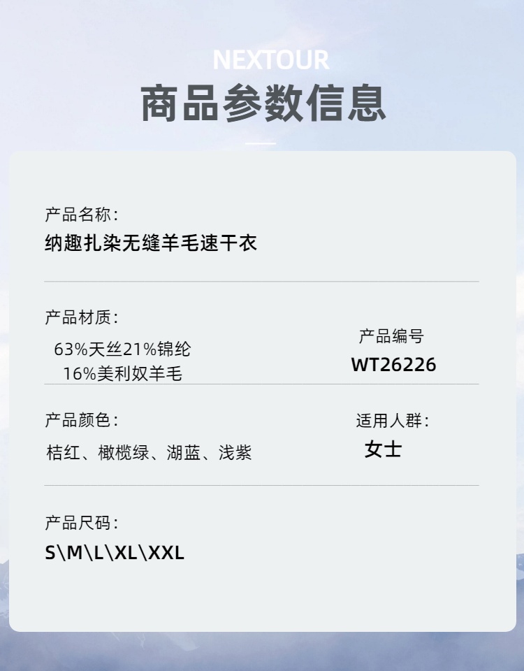 纳趣无缝针织美丽奴羊毛速干衣扎染莱赛尔天丝运动长袖T恤