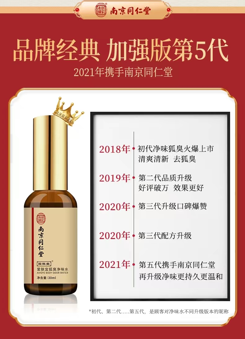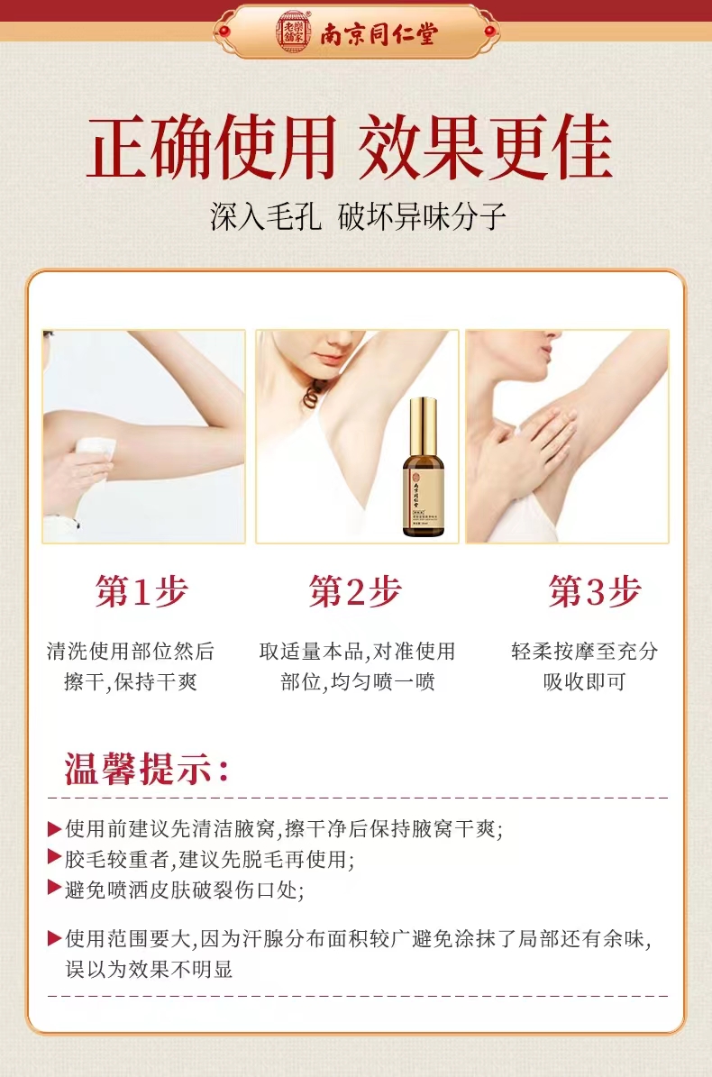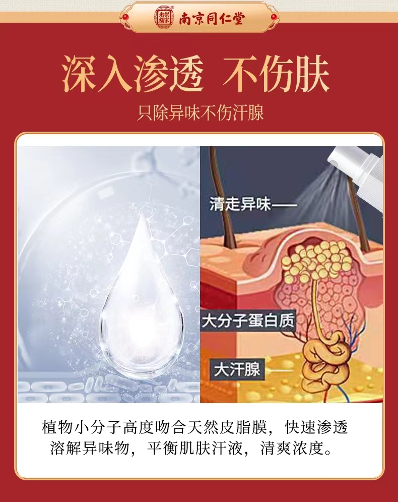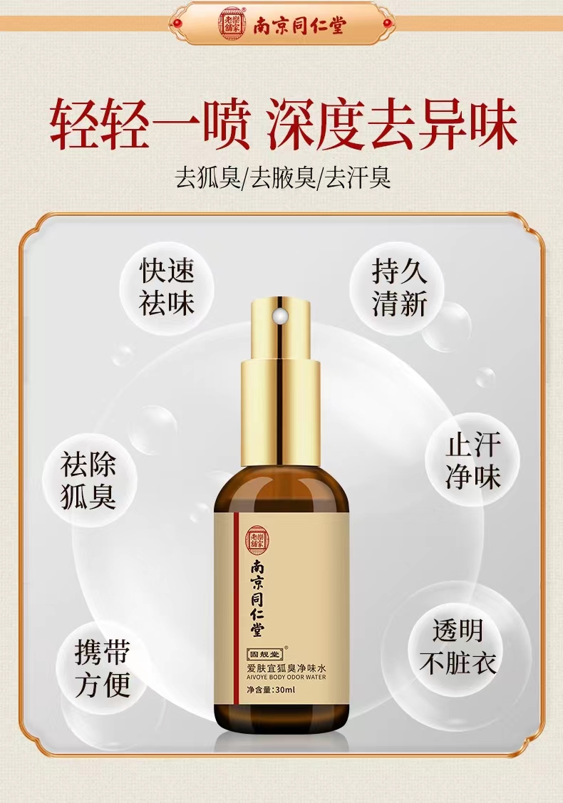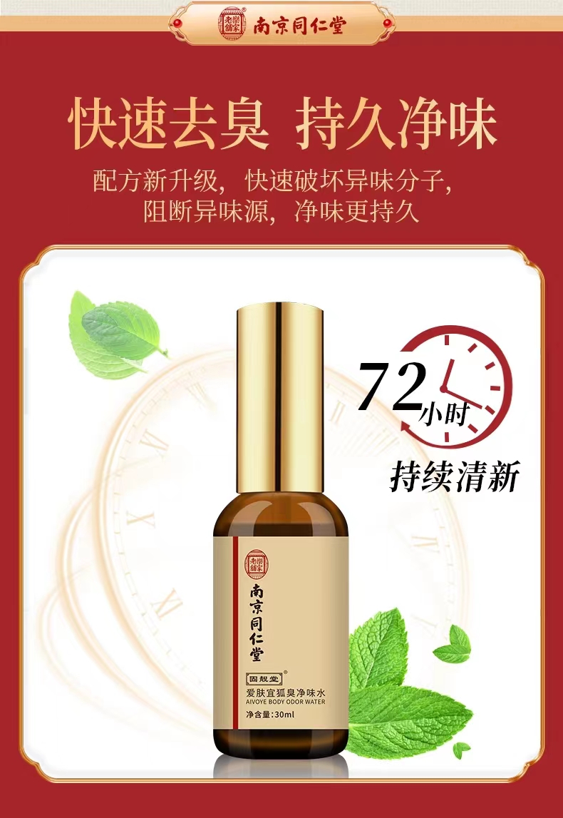 【深入祛臭 快速方便】南京同仁堂狐臭净味喷剂 拒绝有狐臭享干净肌肤 一喷深层渗入持久留香 腋下瘙痒多汗出汗 喷剂狐臭出汗净味水 30ml/盒