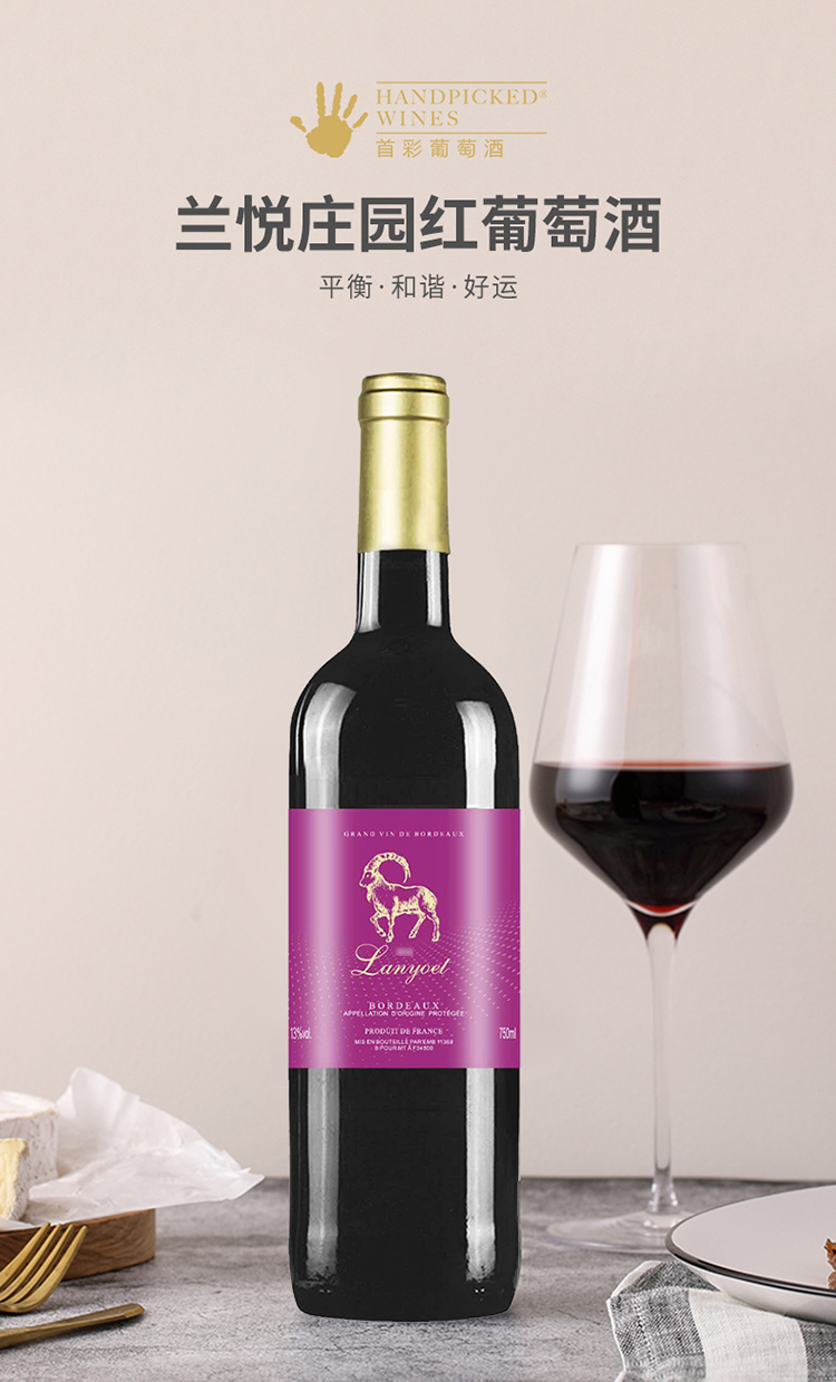 【整箱特惠】首彩 兰悦庄园红葡萄酒 750ml*6 法国波尔多 购满1111元送醒酒器1个