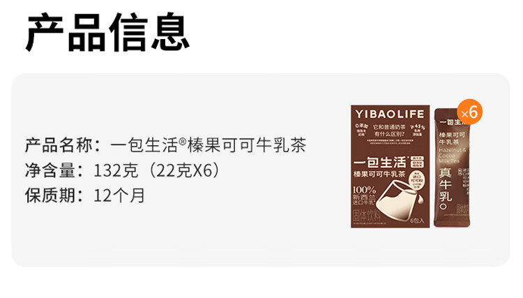 【分仓直发】一包生活牛乳茶6包/盒(臻果可可口味)